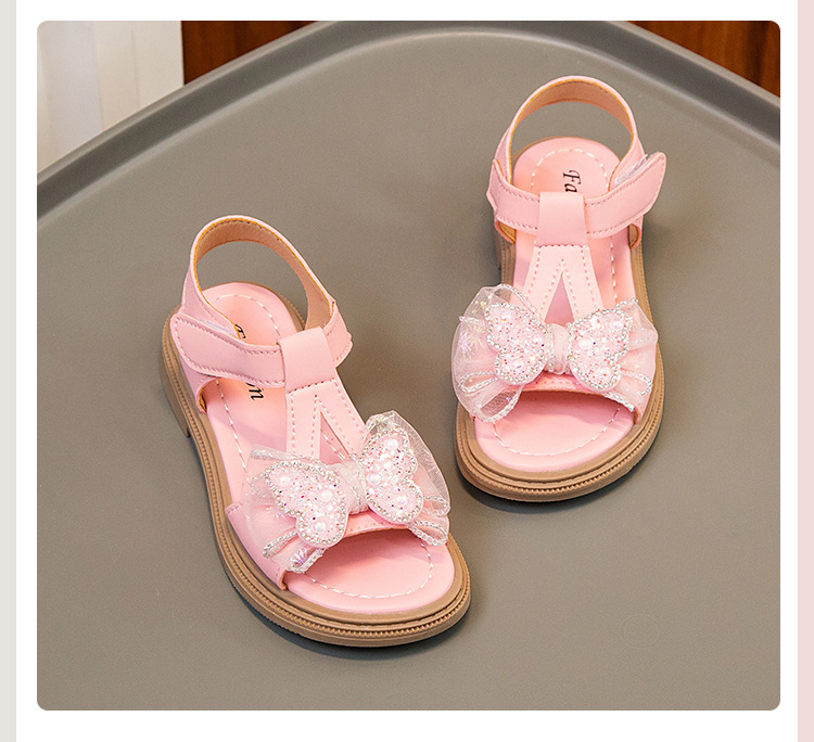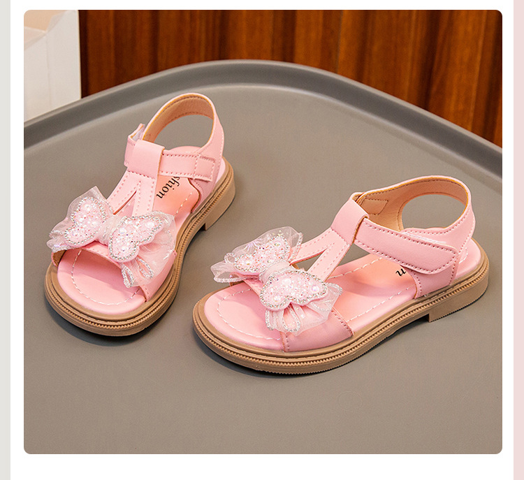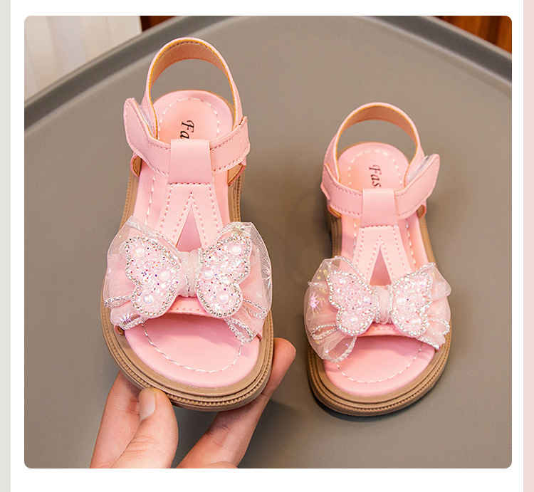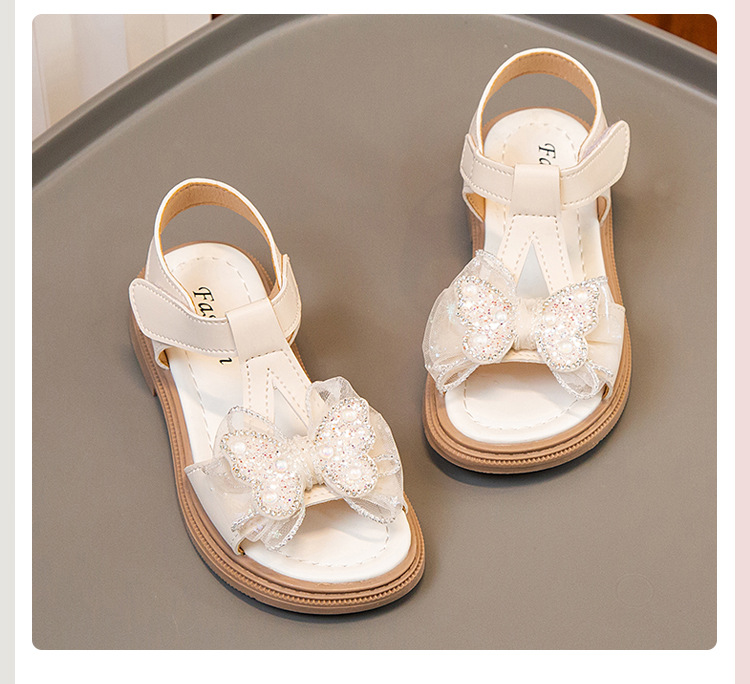 2025년 신상 여아 샌들, 부드러운 밑창, 여름용, 리본 장식, 요정풍, 세련된 진주, 어린 소녀 공주 신발스토어 가기