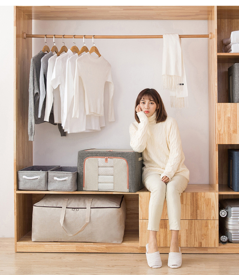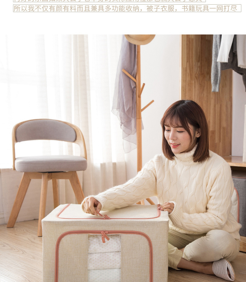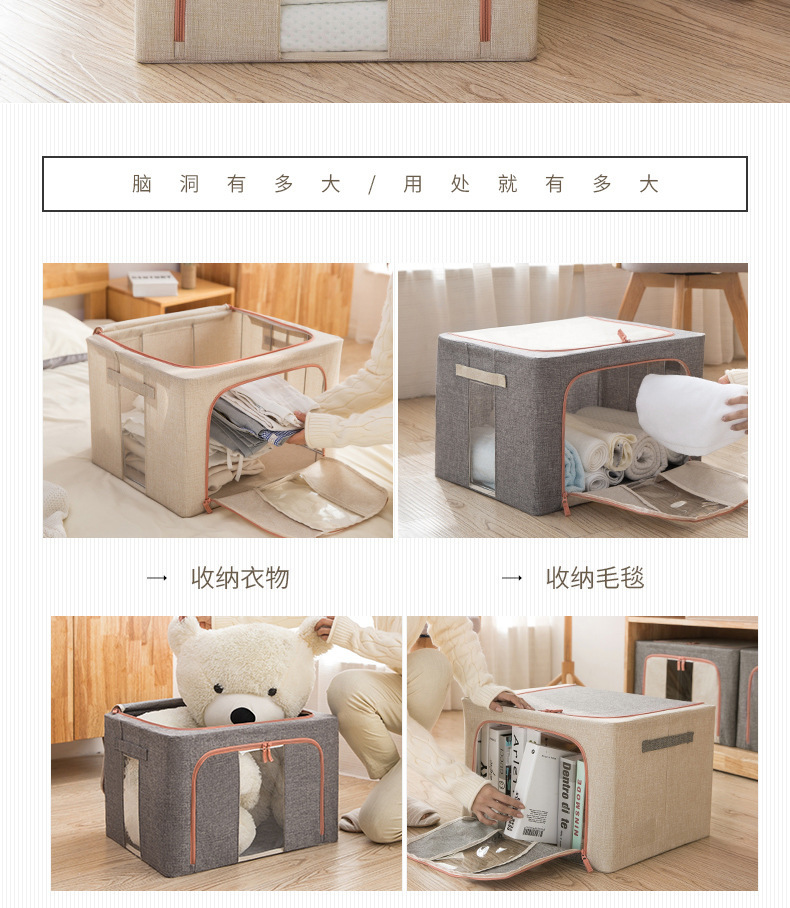면과 린넨 소재의 접이식 스틸 프레임 수납함, 옷 정리함, 투명 겨울용 수납함, 어린이 장난감 수납함