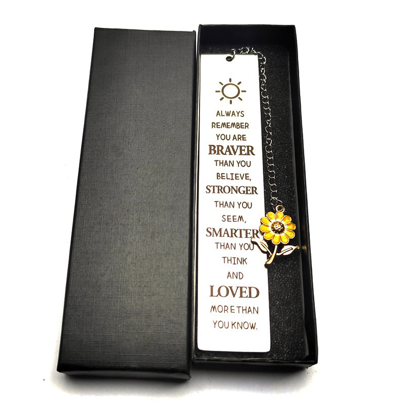 유럽과 미국 크로스 보더 스테인레스 스틸 레터링 책갈피 해바라기 펜던트 편지 해바라기 패턴 장식 영감을주는 선물스토어 가기