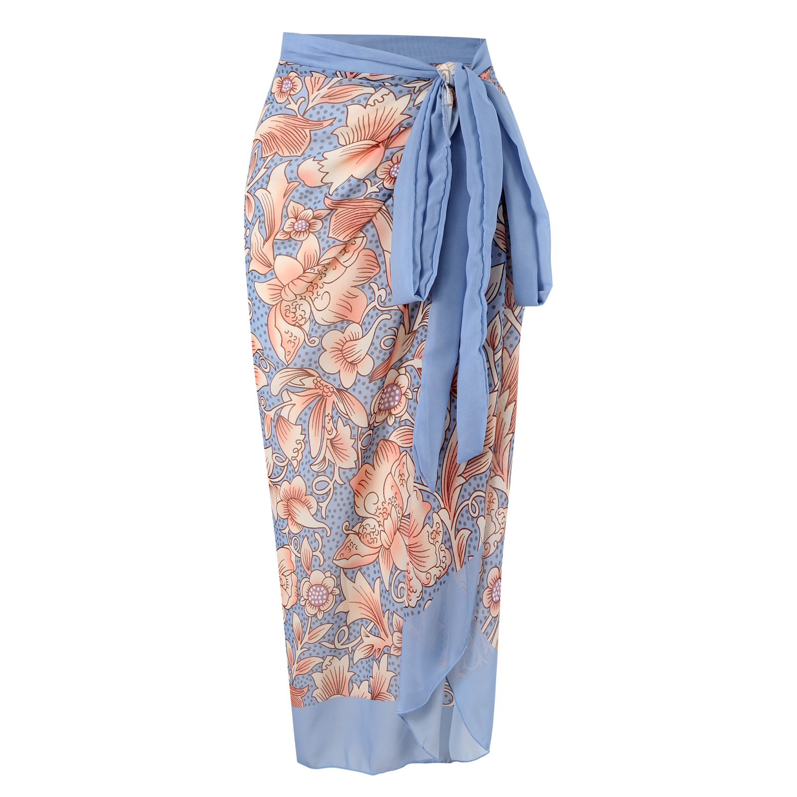 俏佳媛2025欧美新款分体泳衣女士尚性感挂脖系带雪纺裹裙三件套装