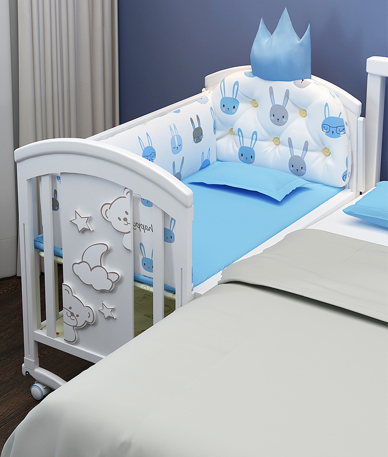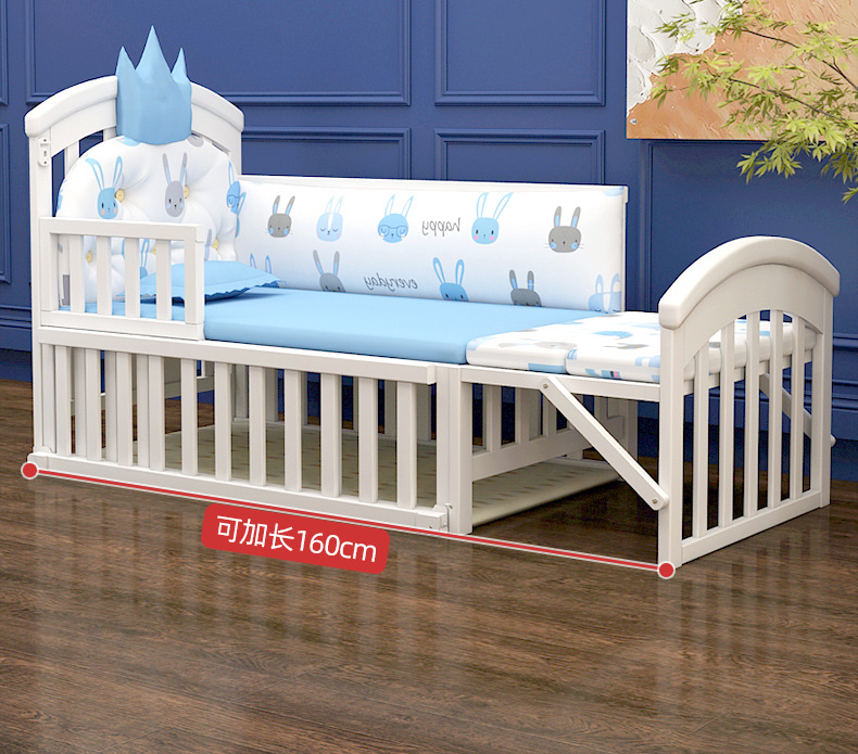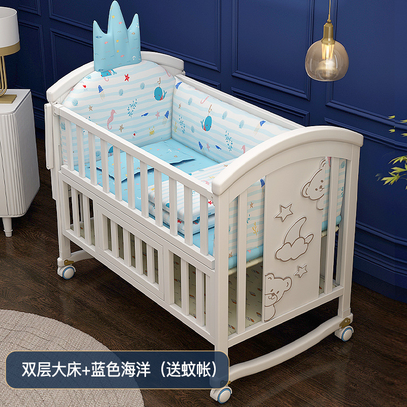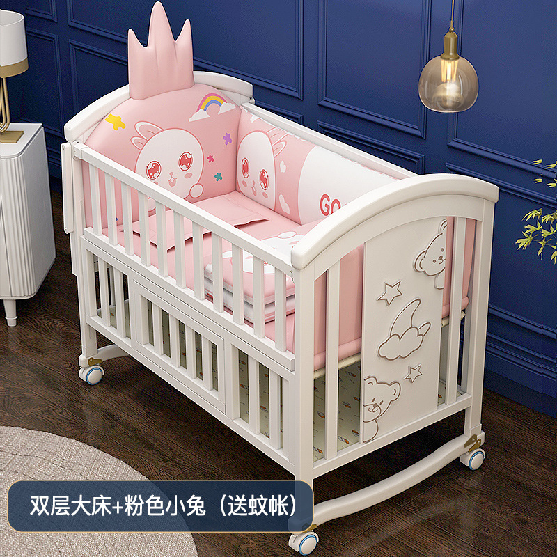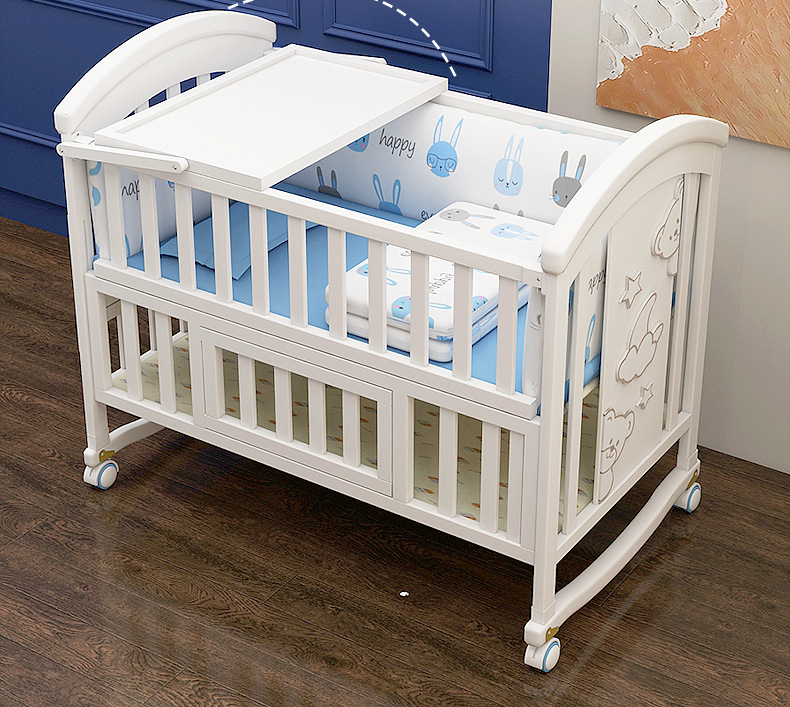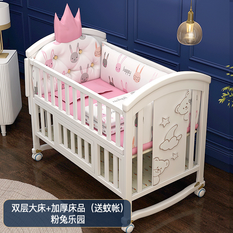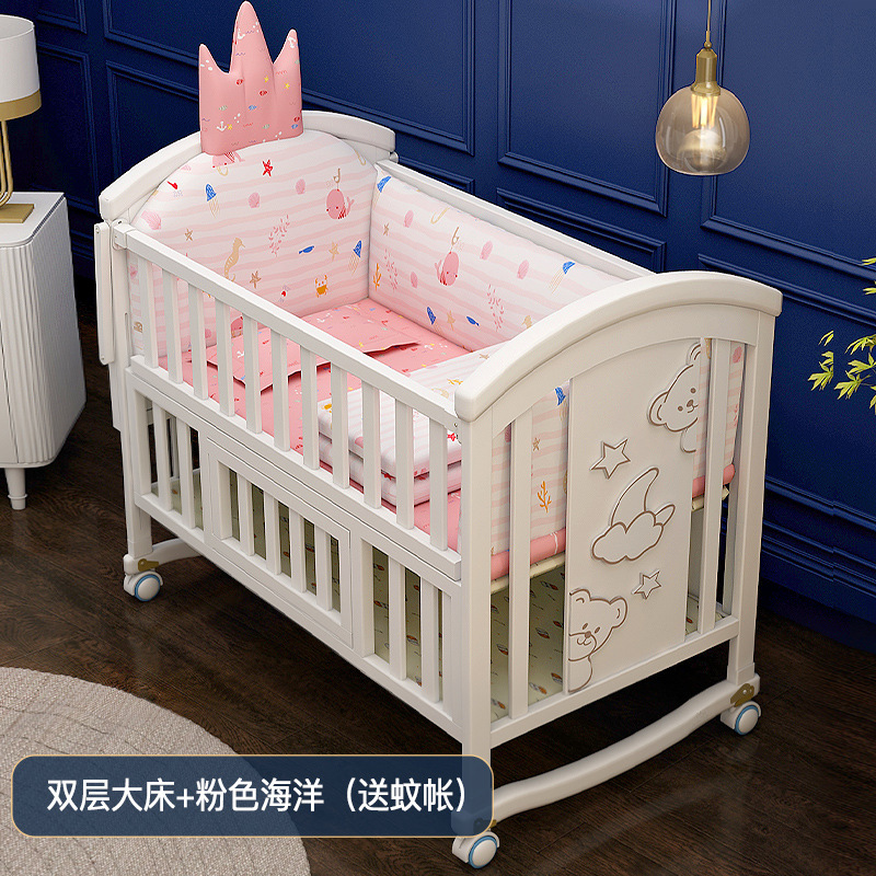 유아용 침대 단단한 나무 유럽식 흰색 이동식 아기 비비탄 신생아 다기능 요람 어린이 접합 큰 침대