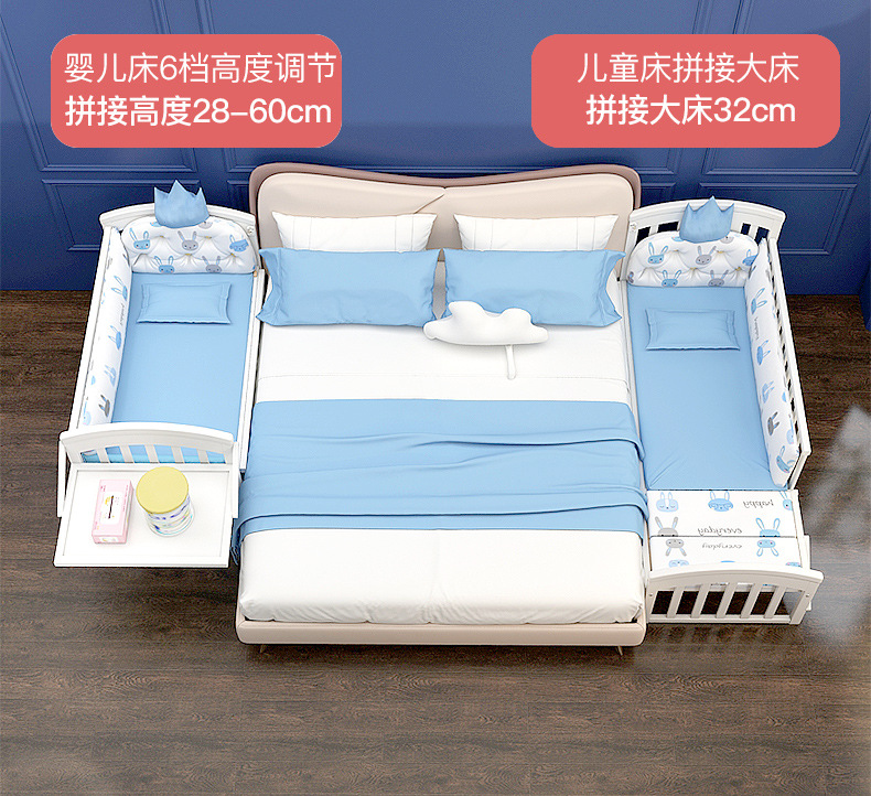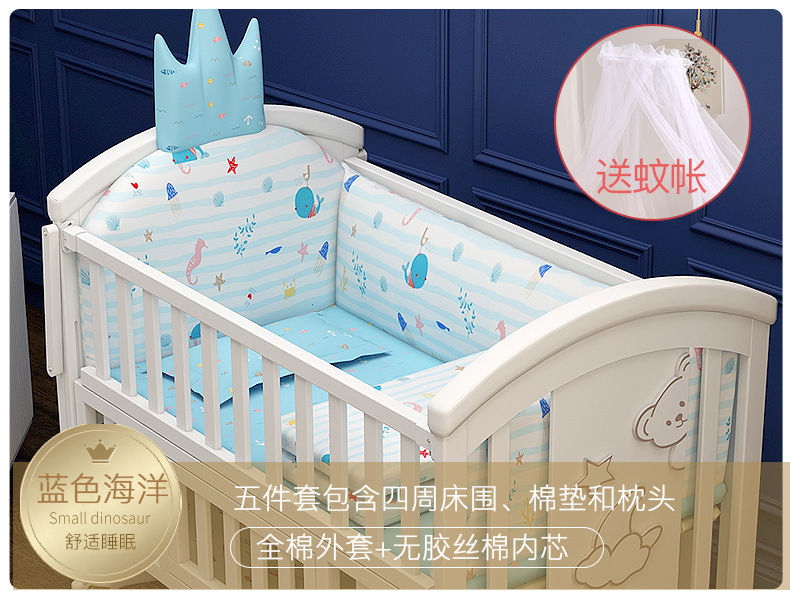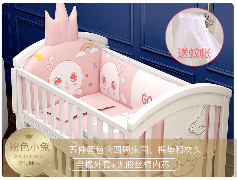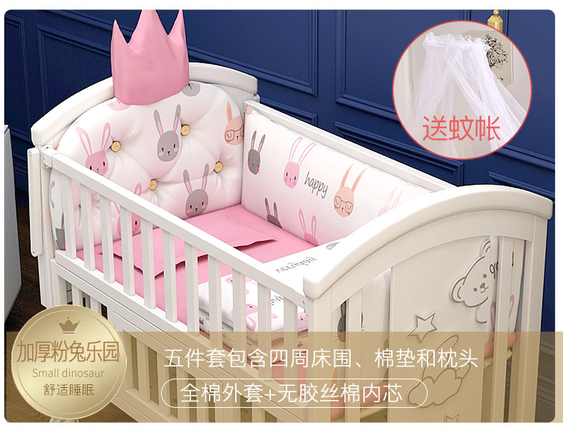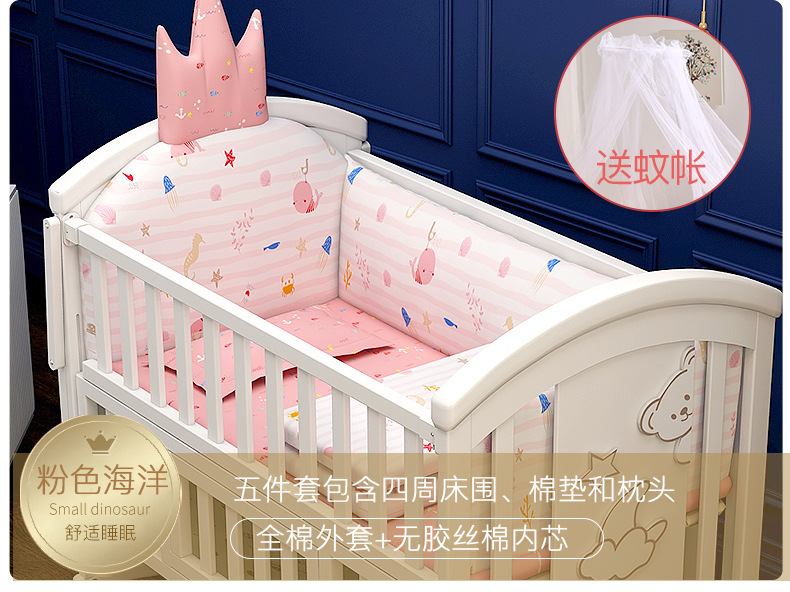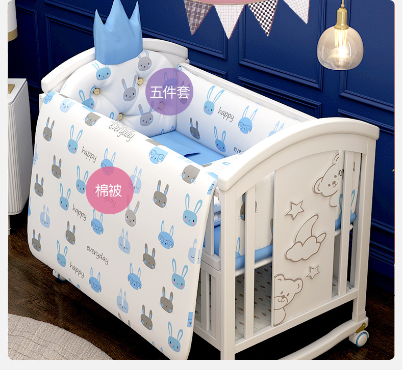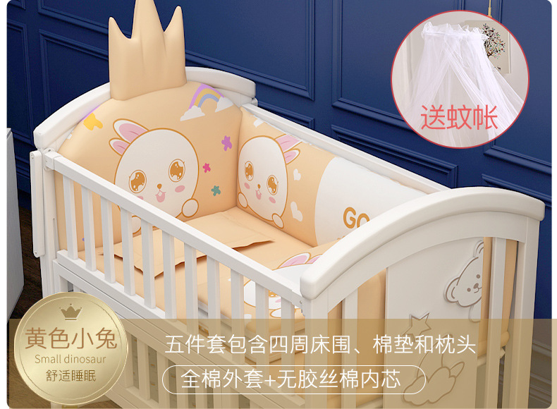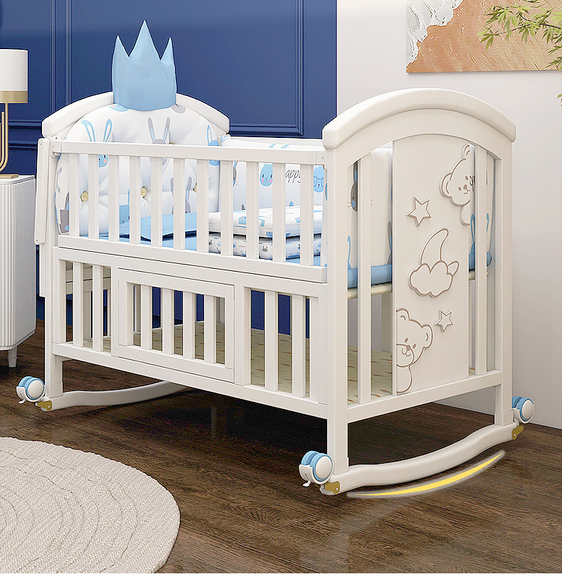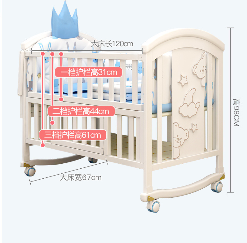 유아용 침대 단단한 나무 유럽식 흰색 이동식 아기 비비탄 신생아 다기능 요람 어린이 접합 큰 침대