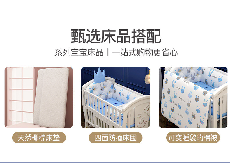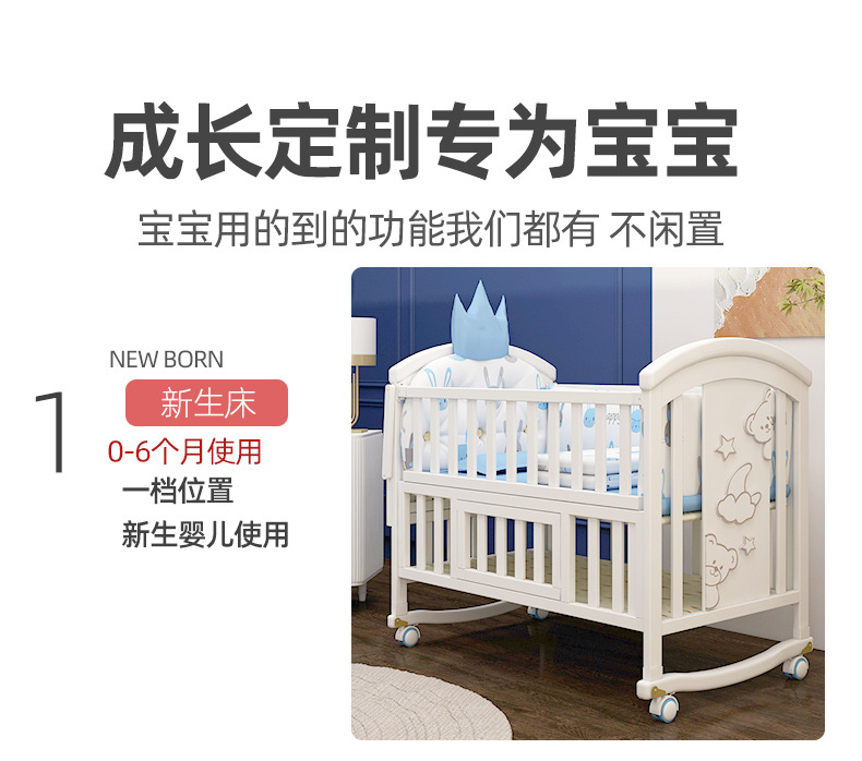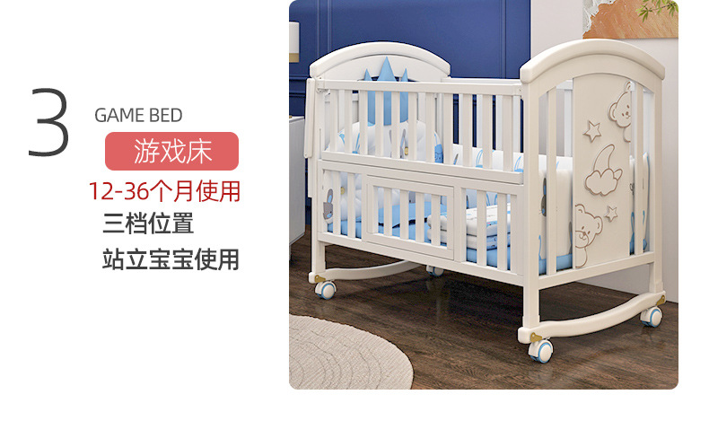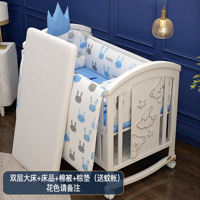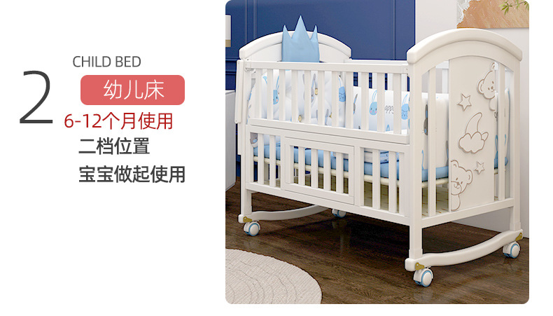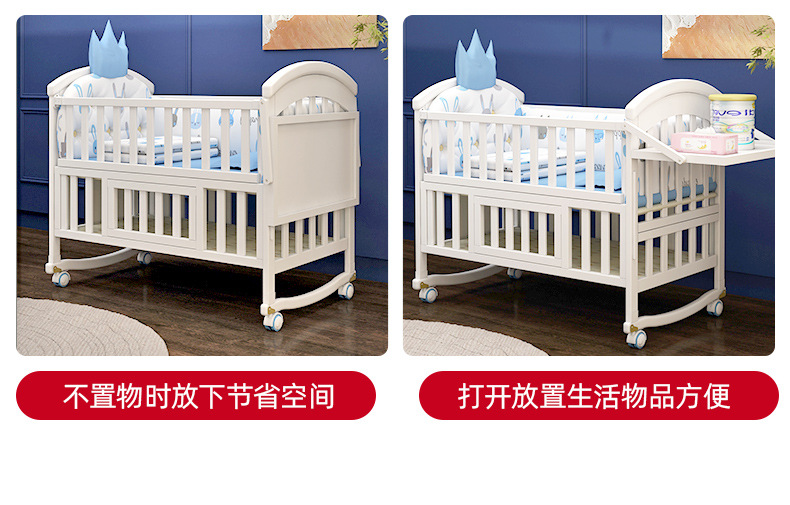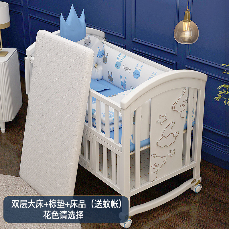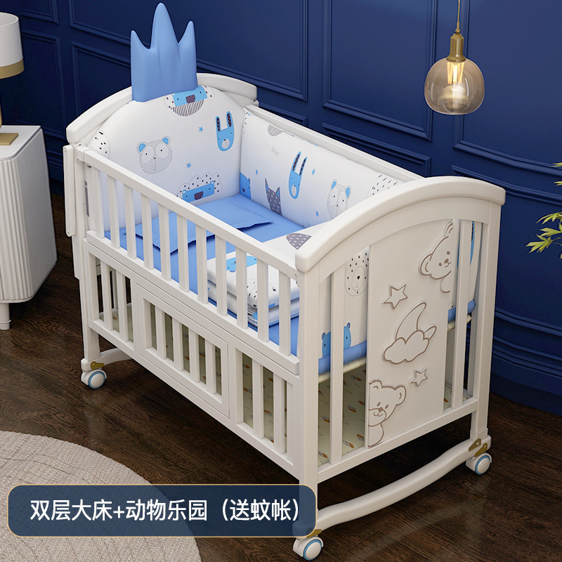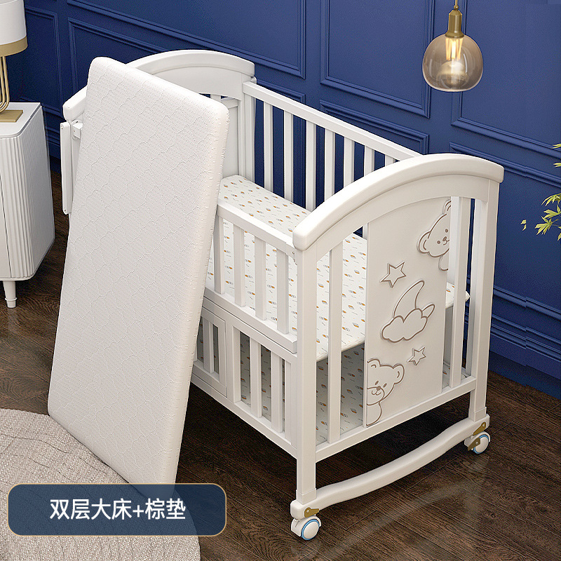 유아용 침대 단단한 나무 유럽식 흰색 이동식 아기 비비탄 신생아 다기능 요람 어린이 접합 큰 침대스토어 가기