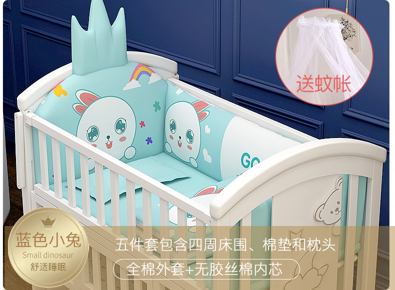 • 흰색 큰 침대 + 두꺼운 크라운 블루 래빗 파라다이스 (158cm 까지 모기장 가변 어린이 침대 보내기)