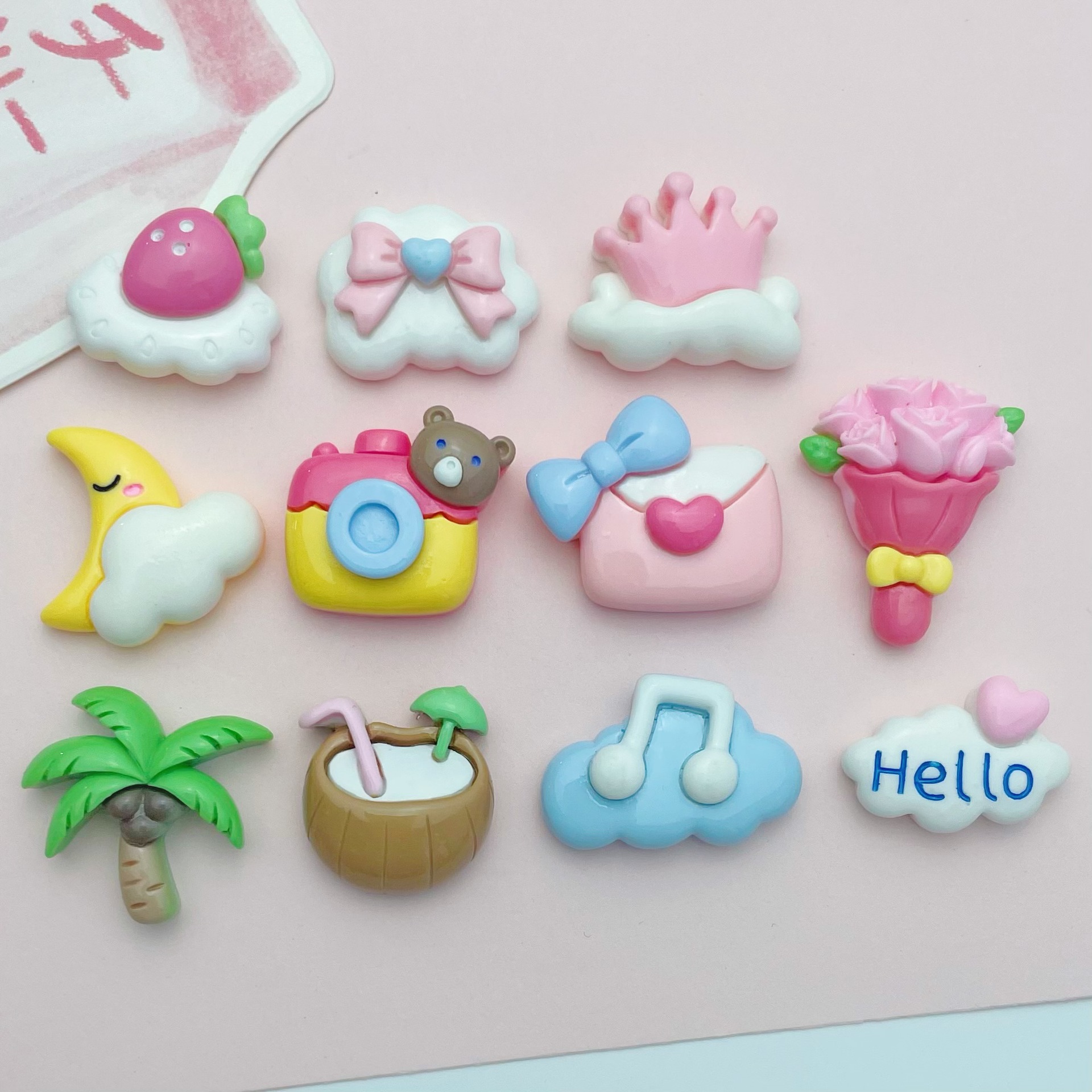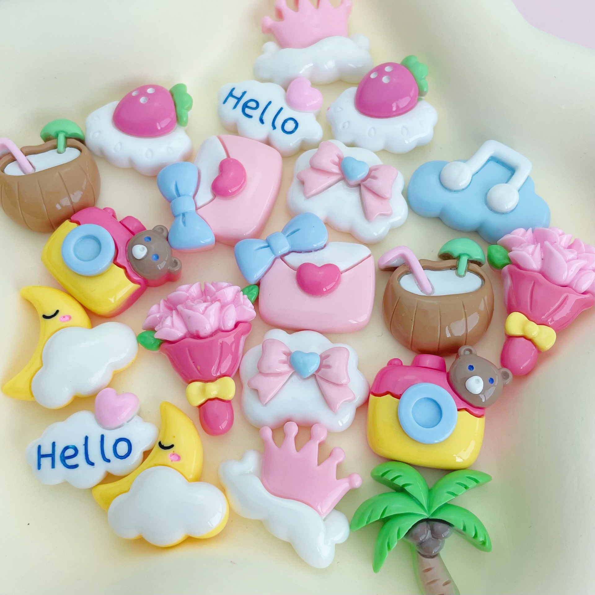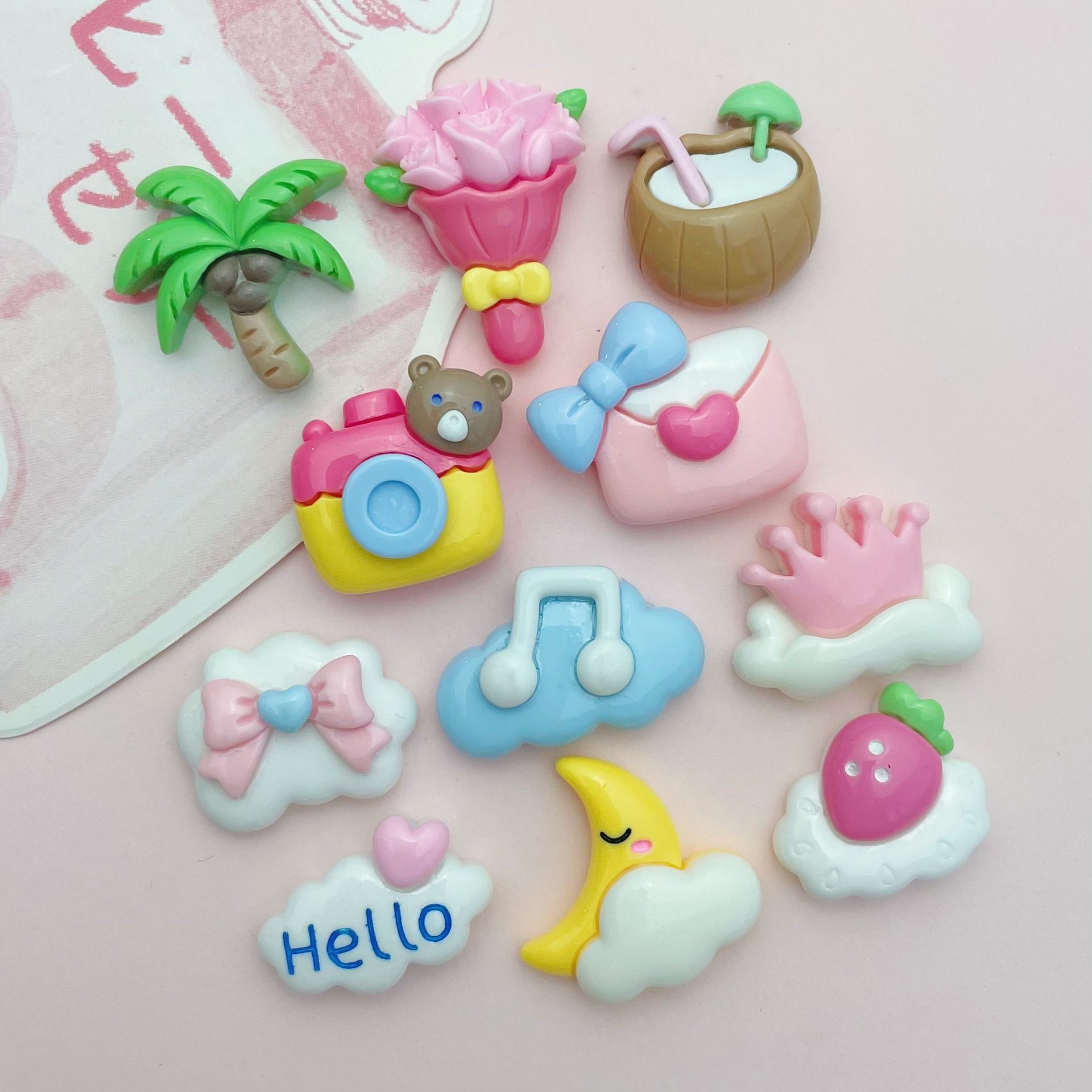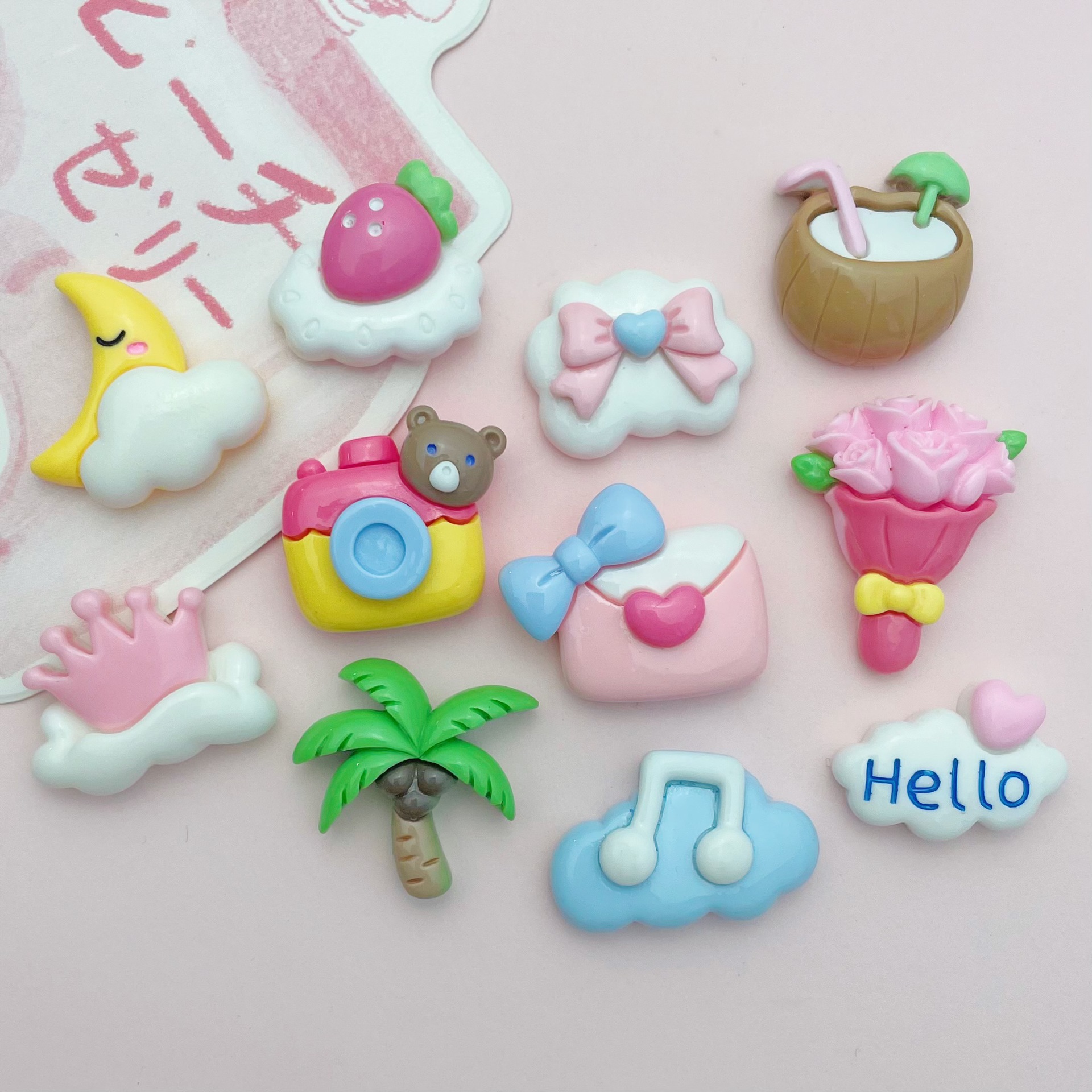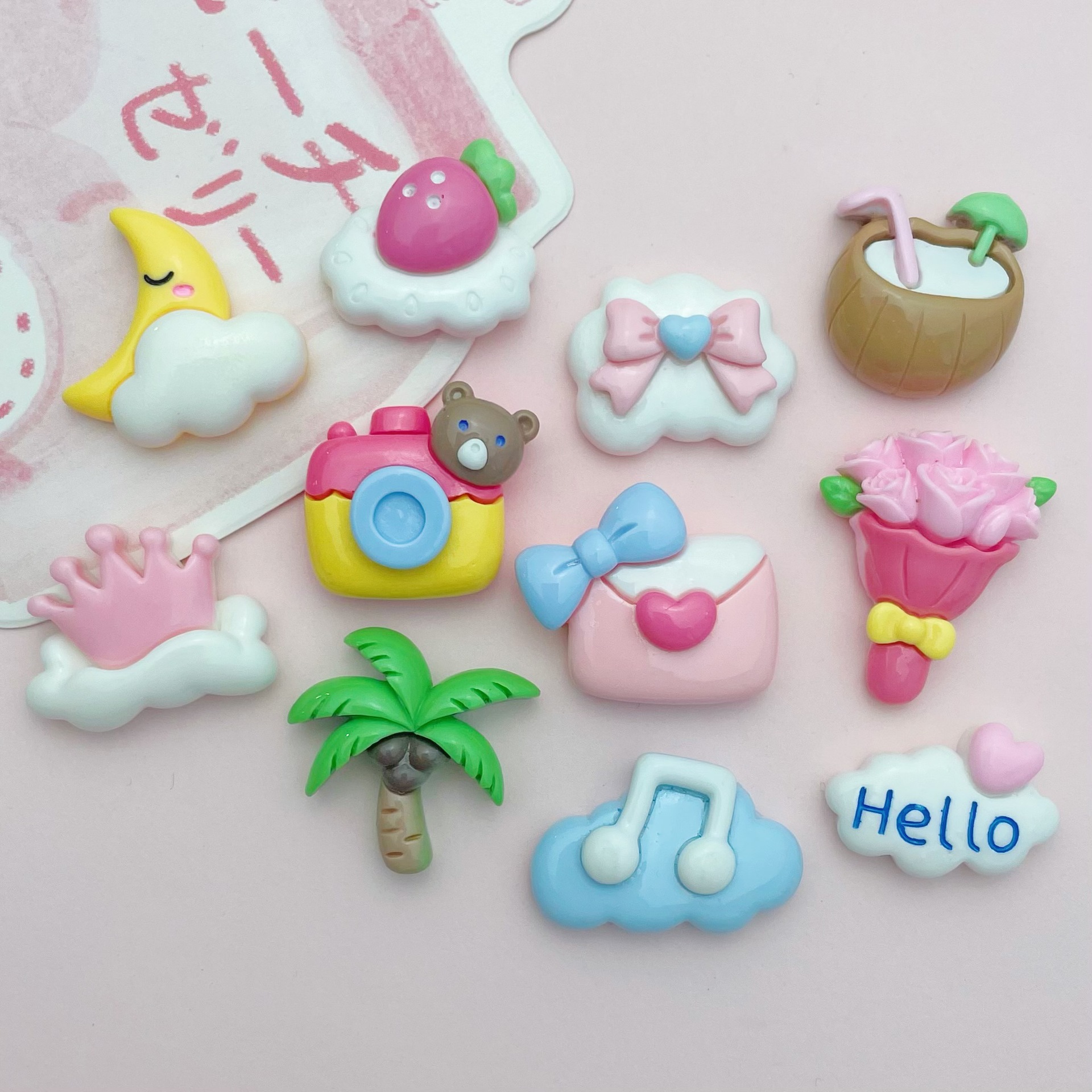 밝은 얼굴 카메라 구름 코코넛 나무 봉투 수지 액세서리 DIY 수제 재료 크림 접착제 컵 스티커 구멍 신발