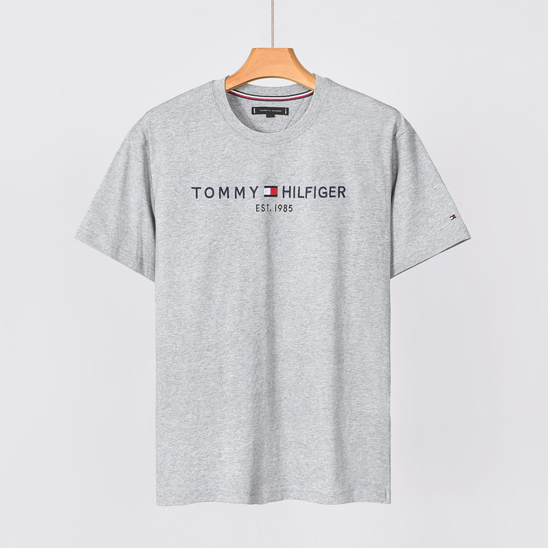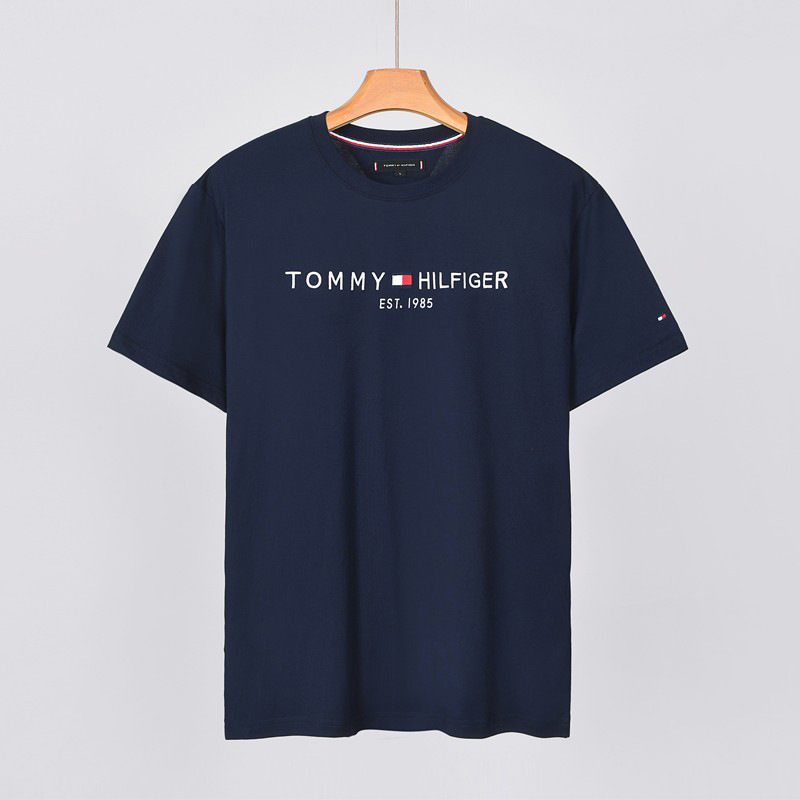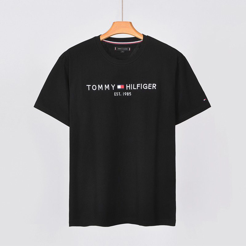 25 토미 남자의 짧은 소매면 둥근 목 슬림 단색 바닥 셔츠 편지 자수 티셔츠 공장 아울렛스토어 가기