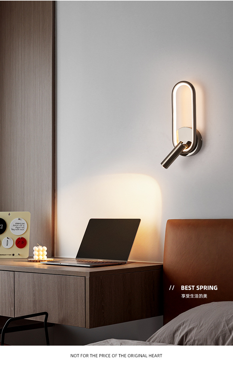 스포트라이트가있는 벽 램프 2023 새로운 미니멀리스트 침실 침대 옆 독서 램프 회전 터치 창조적 인 배경 벽 램프