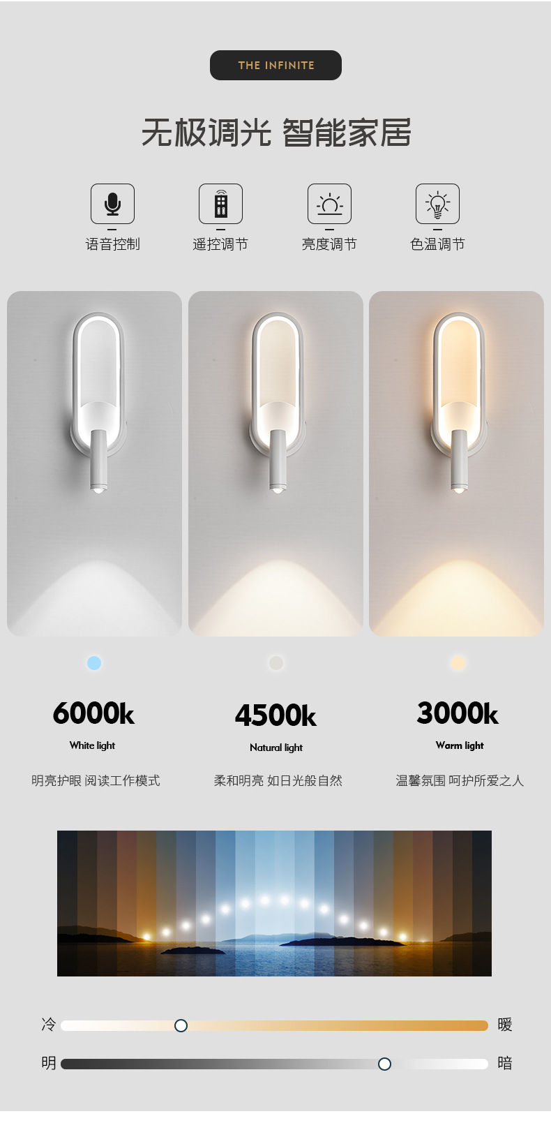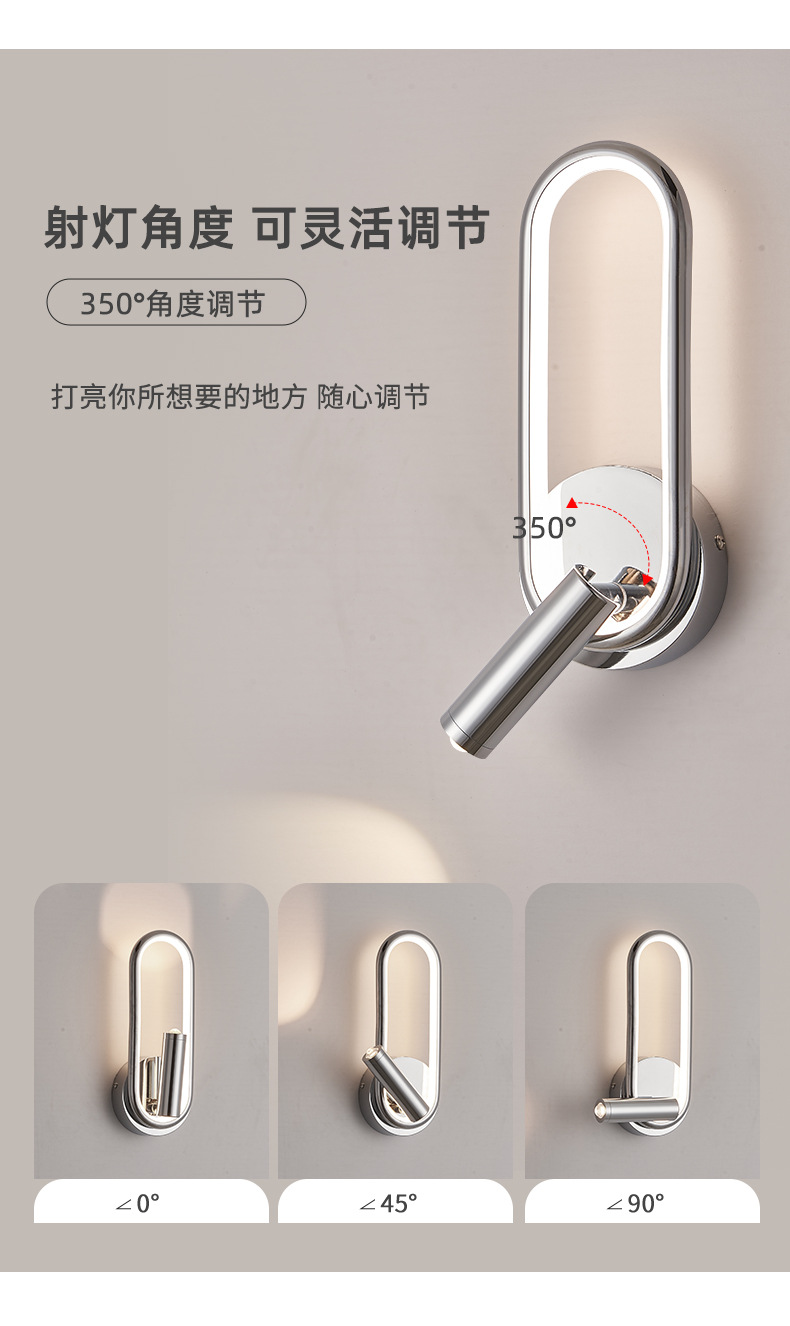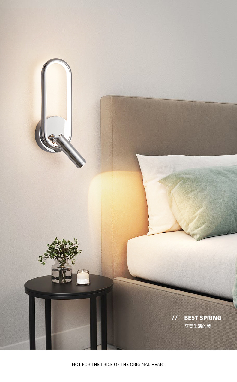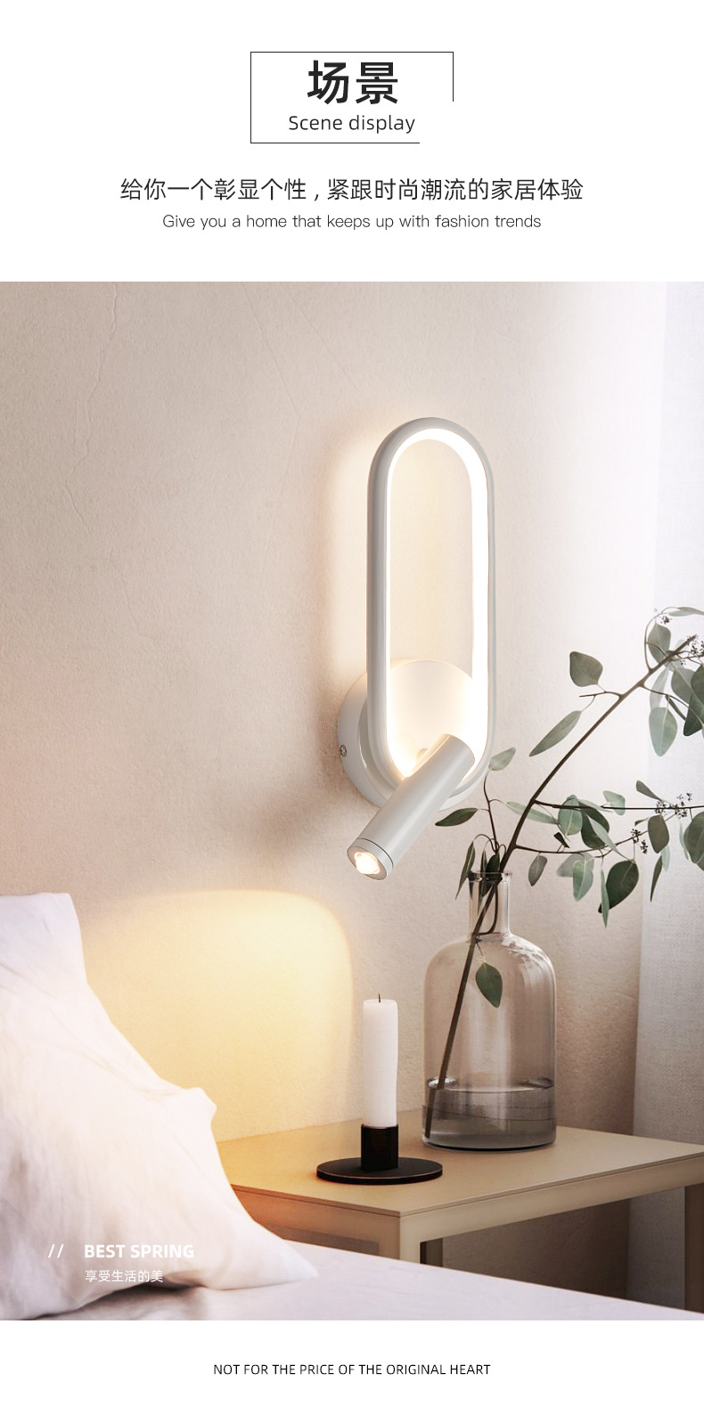 스포트라이트가있는 벽 램프 2023 새로운 미니멀리스트 침실 침대 옆 독서 램프 회전 터치 창조적 인 배경 벽 램프스토어 가기