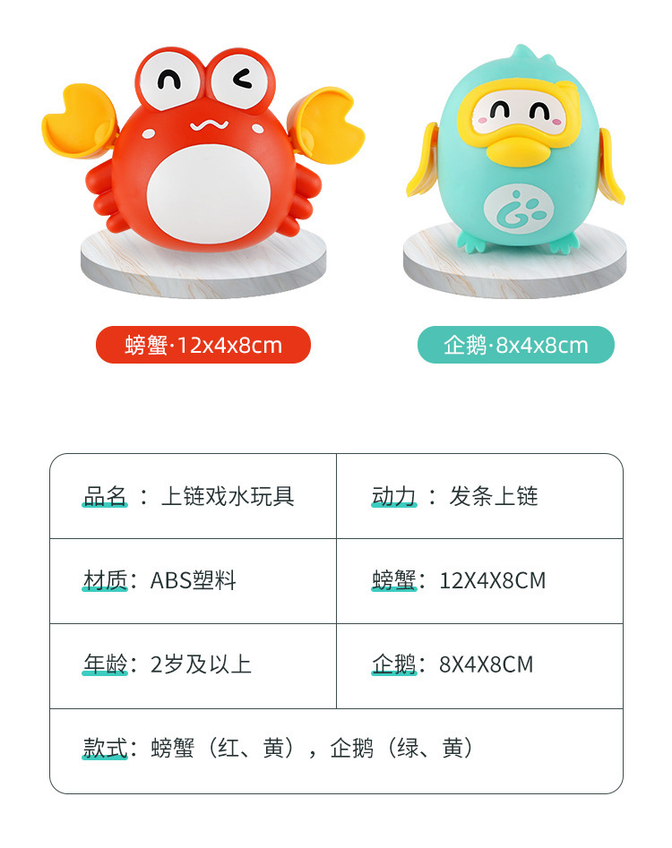 크로스 보더 어린이 아기 귀여운 만화 물 펭귄 게 목욕 여름 욕실 수영 감기 장난감