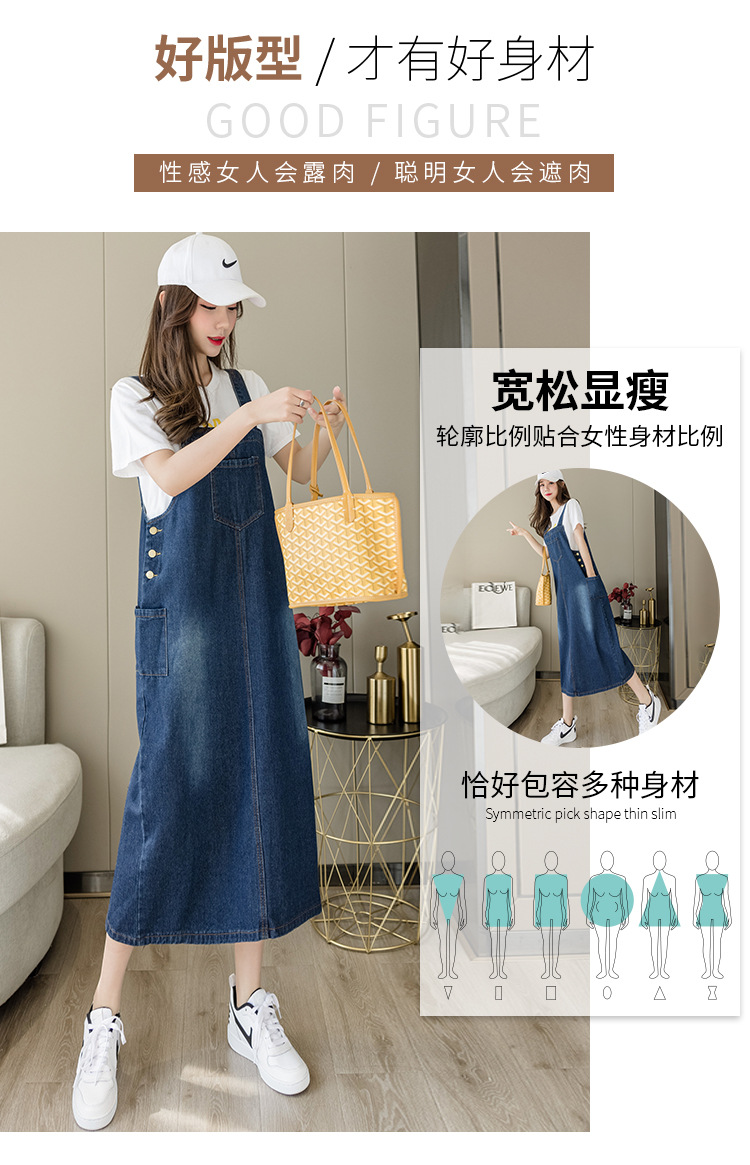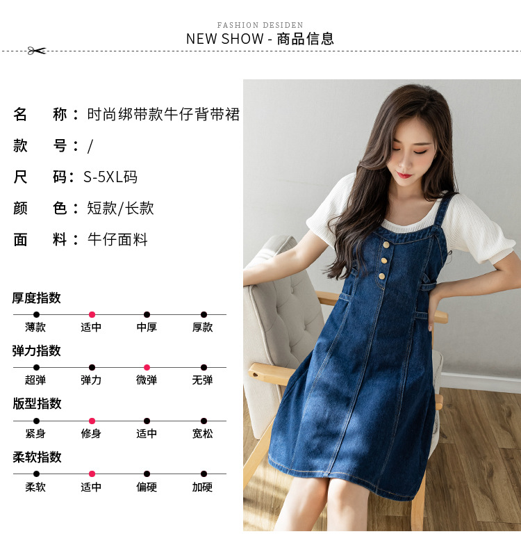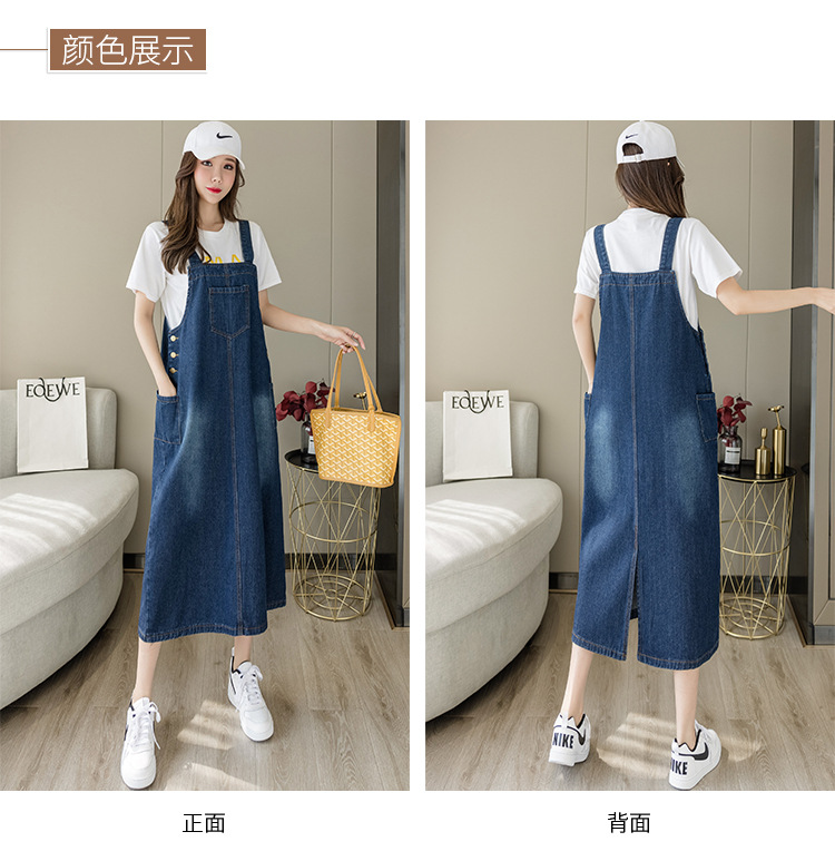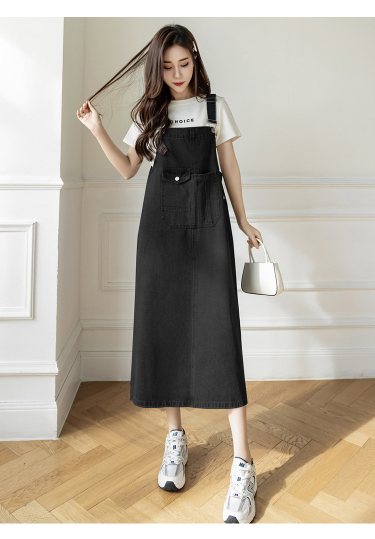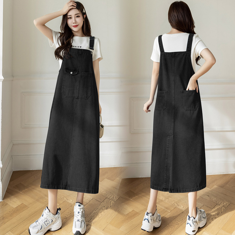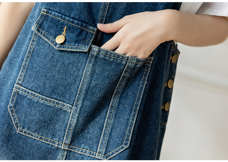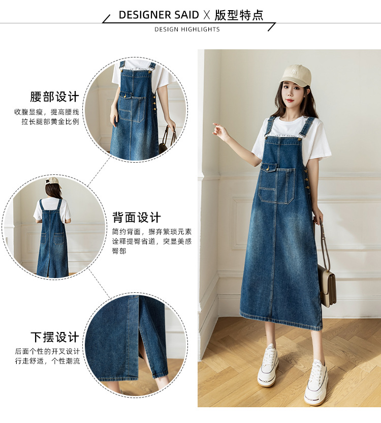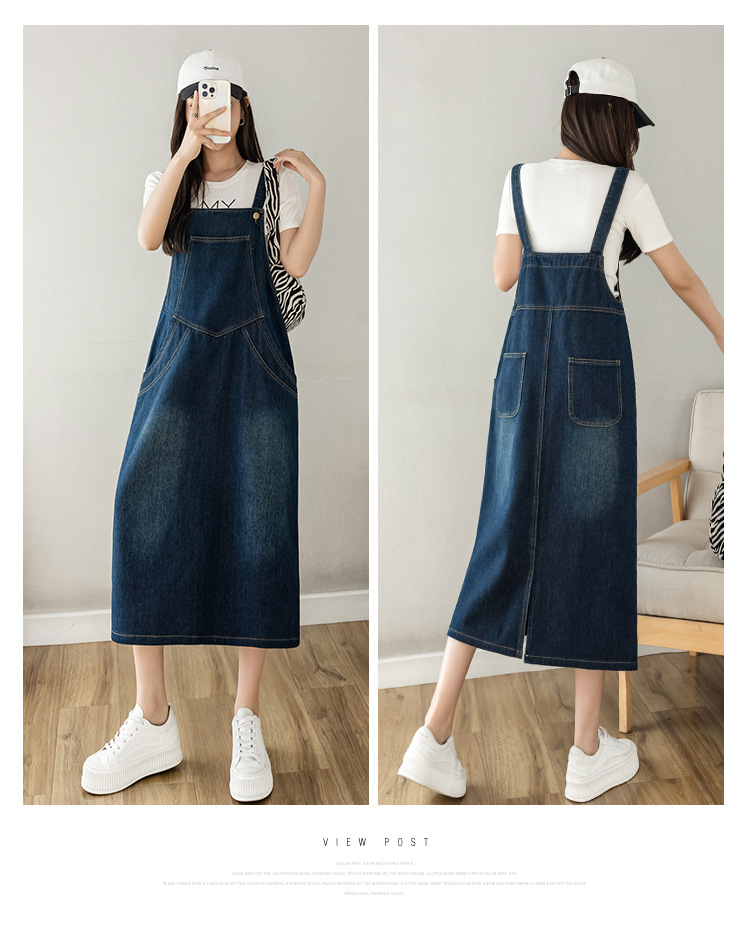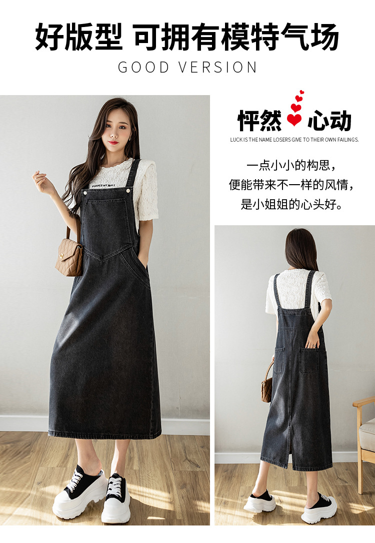 리얼 샷 느슨한 캐주얼 모든 경기 데님 스트랩 원피스 중간 길이 슬림 핏 원피스 여성스토어 가기