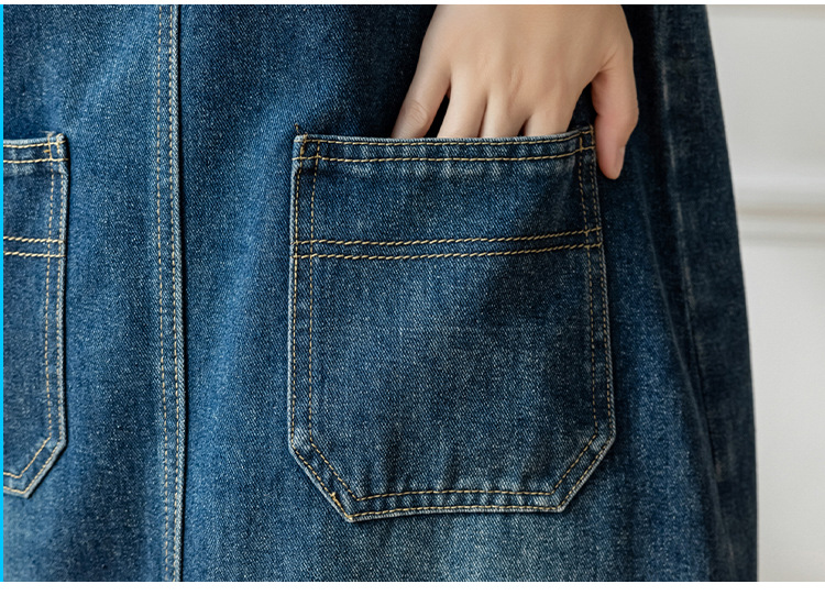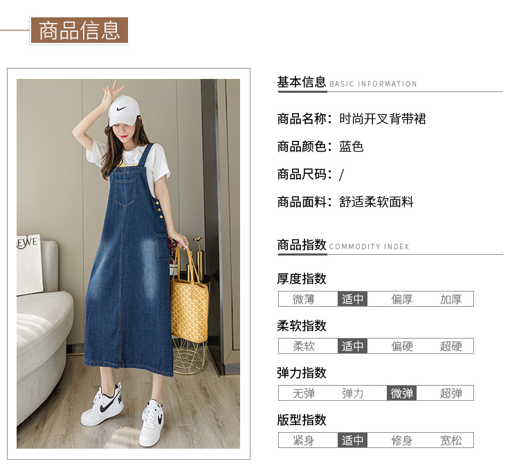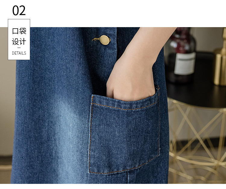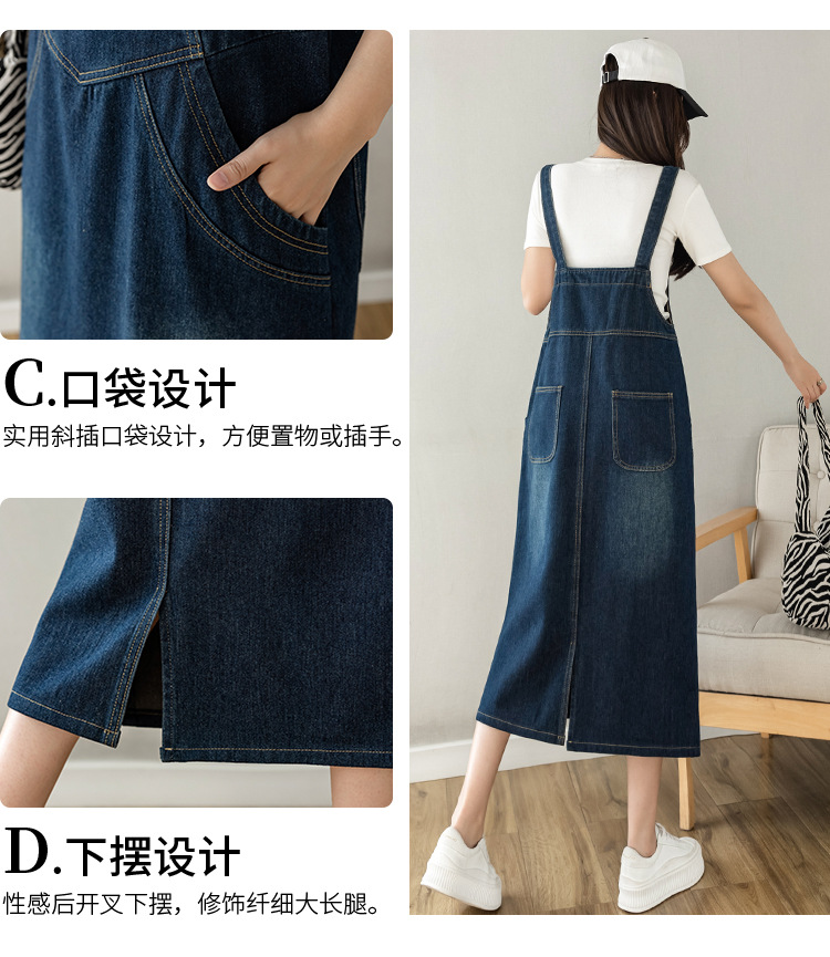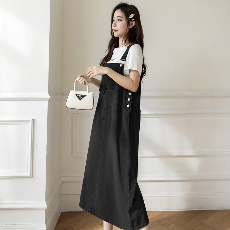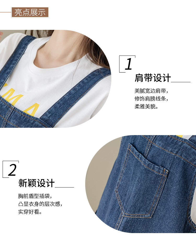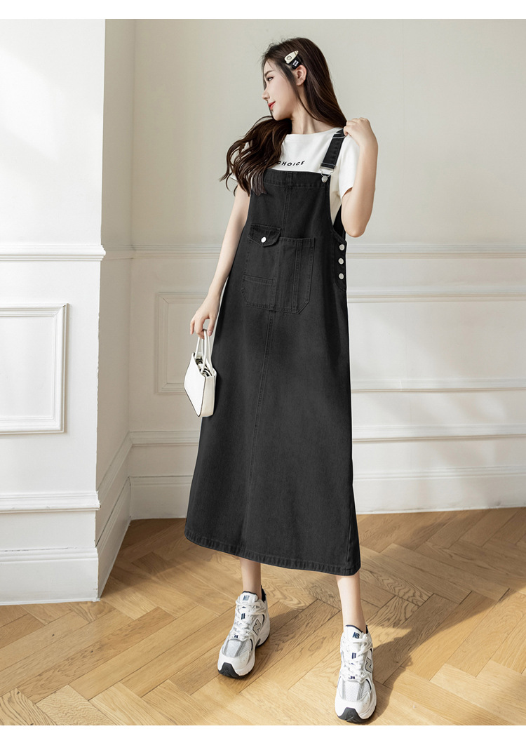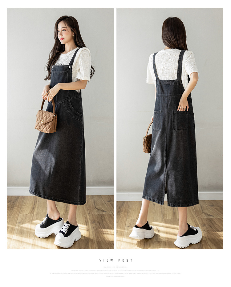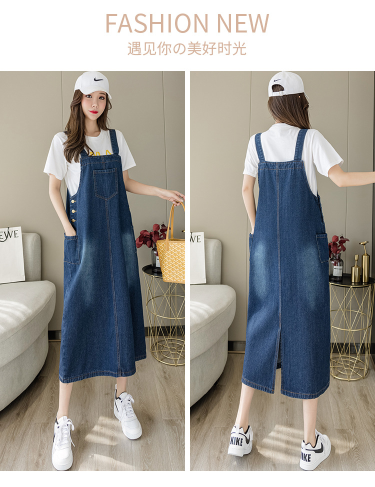 리얼 샷 느슨한 캐주얼 모든 경기 데님 스트랩 원피스 중간 길이 슬림 핏 원피스 여성스토어 가기