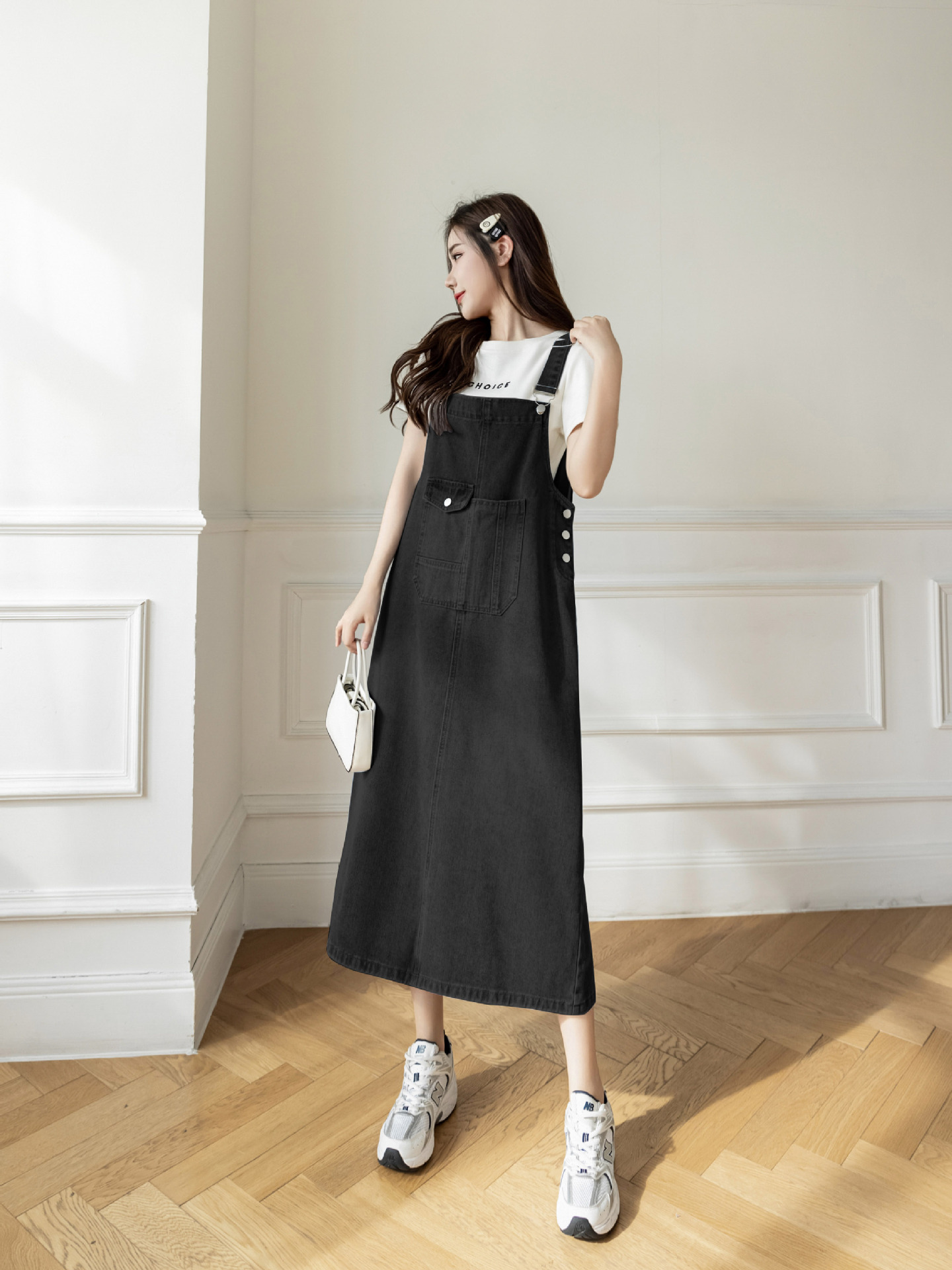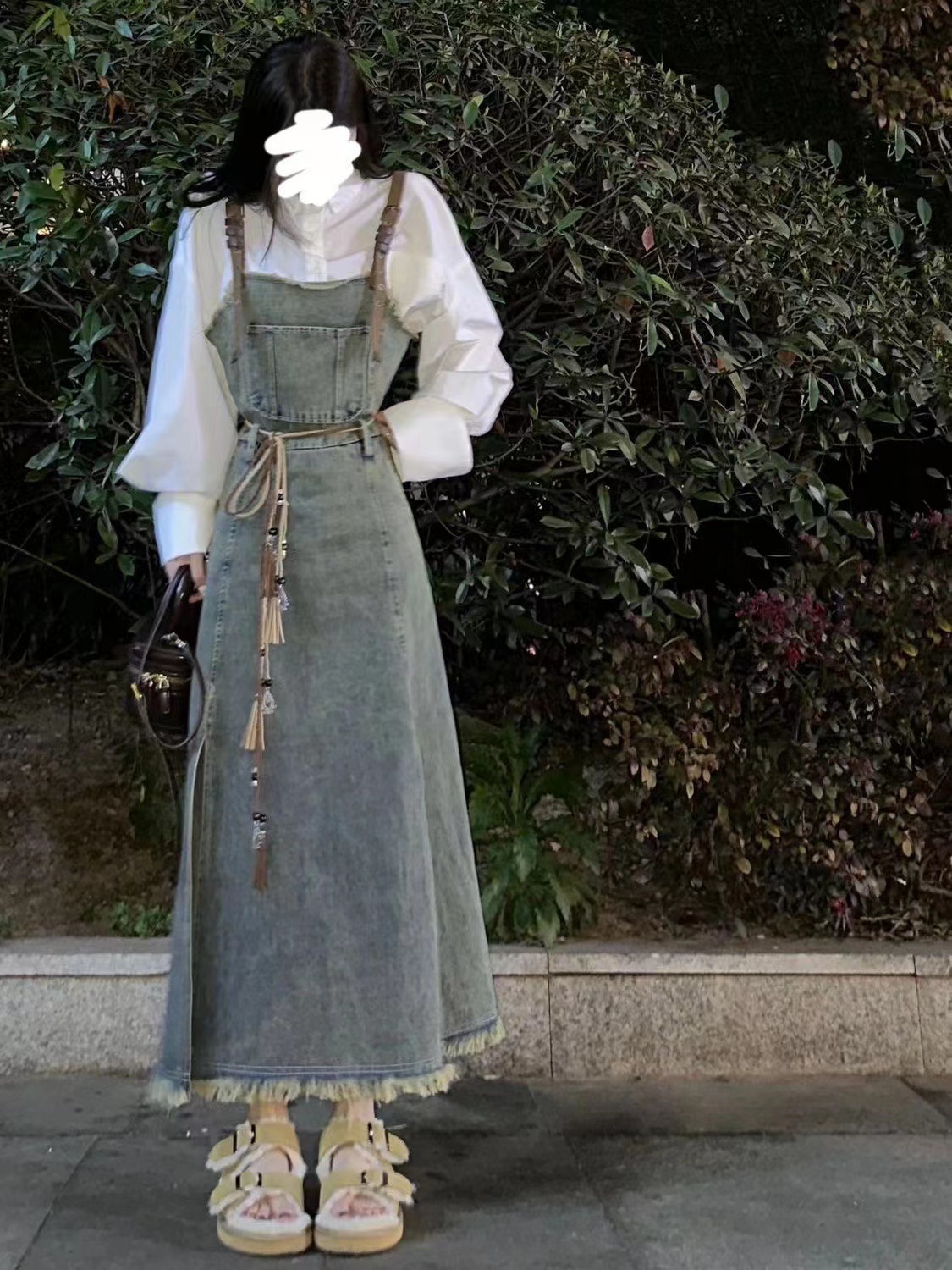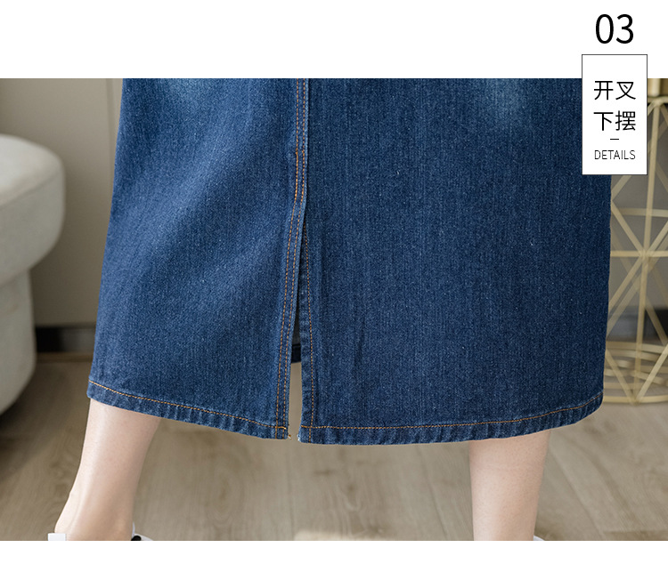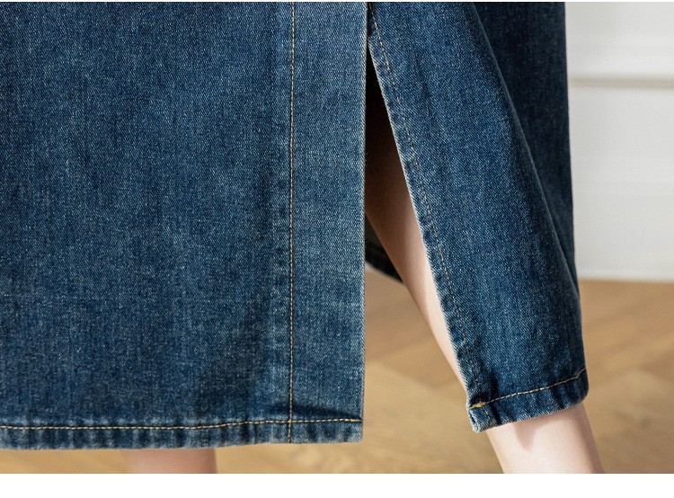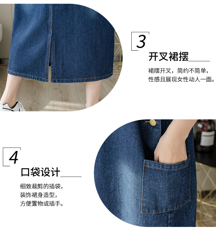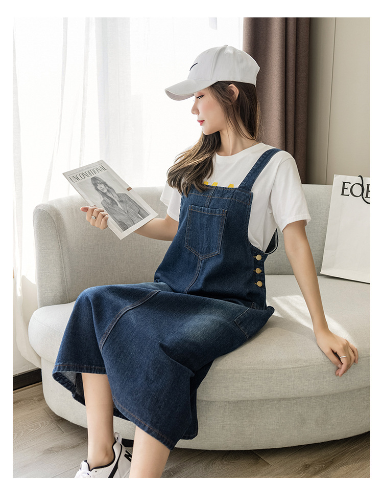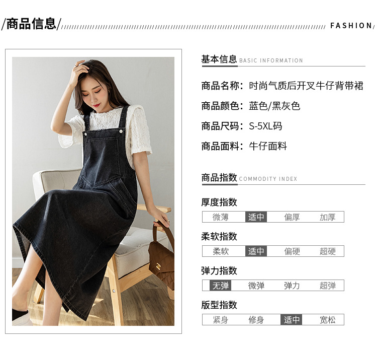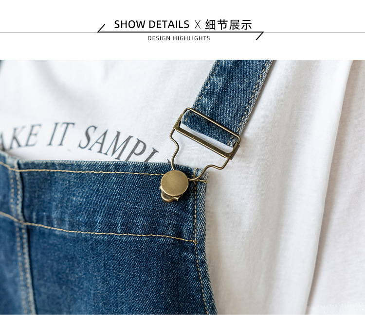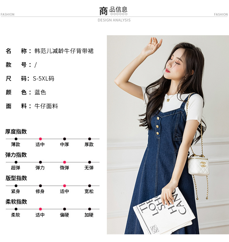 리얼 샷 느슨한 캐주얼 모든 경기 데님 스트랩 원피스 중간 길이 슬림 핏 원피스 여성스토어 가기