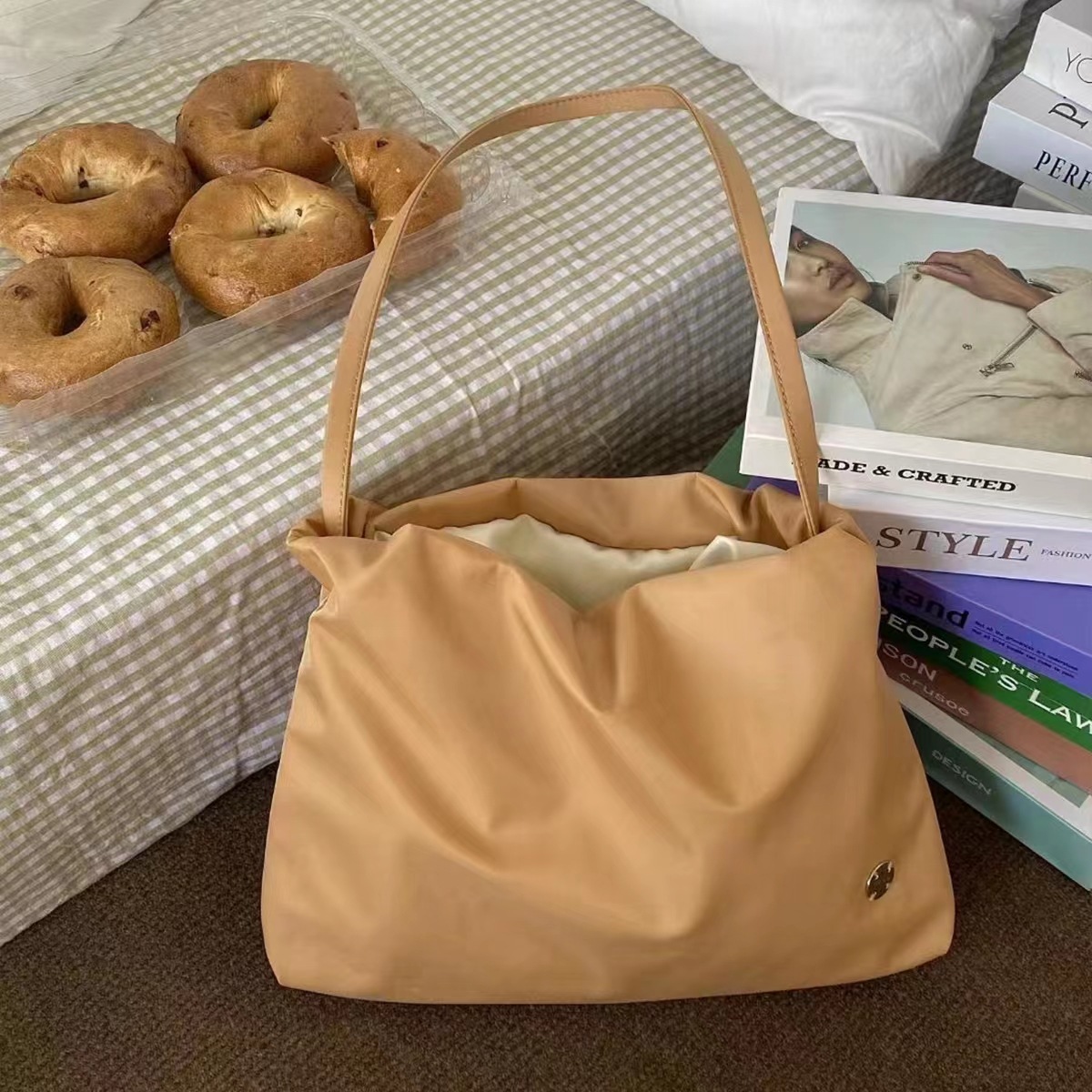 2025 새로운 나일론 숄더 백 틈새 주름 핸드 클라우드 백 통근 대용량 토트 겨드랑이 가방 여성용스토어 가기