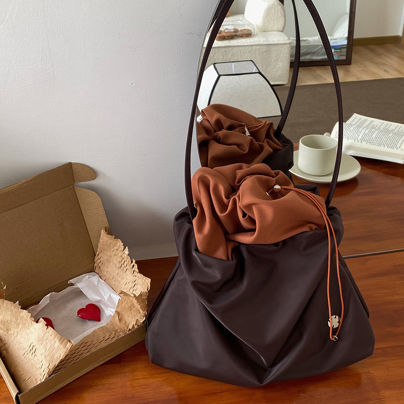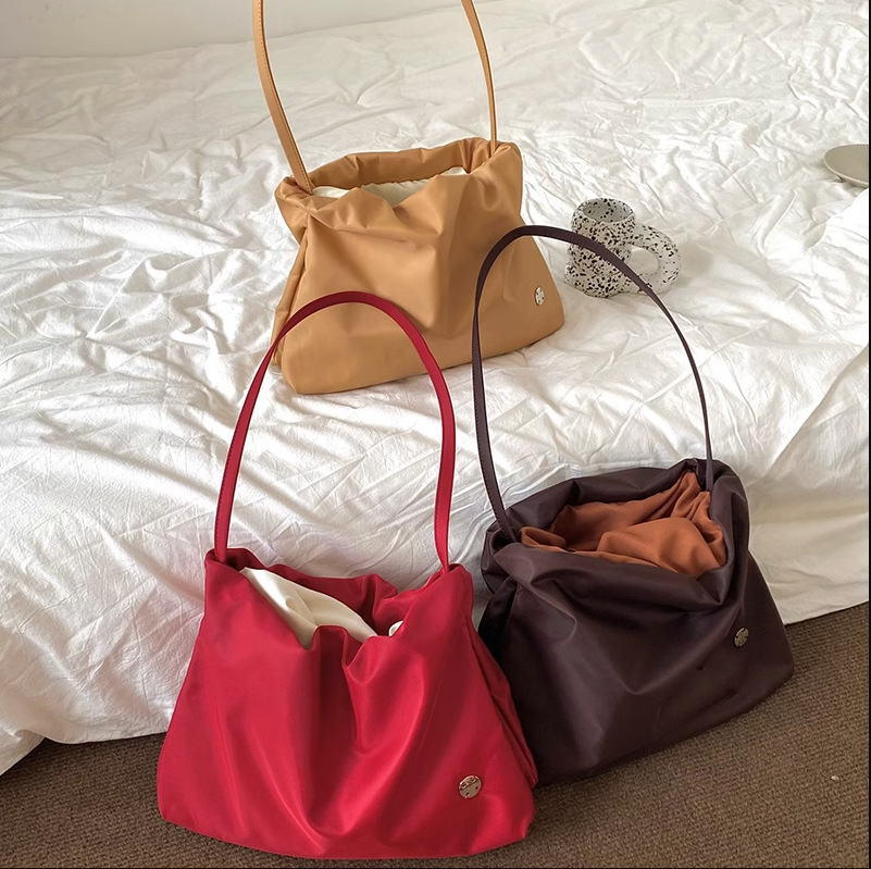2025 새로운 나일론 숄더 백 틈새 주름 핸드 클라우드 백 통근 대용량 토트 겨드랑이 가방 여성용