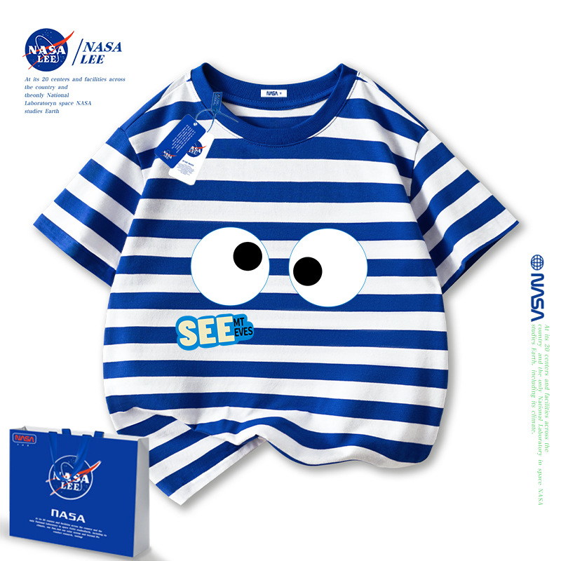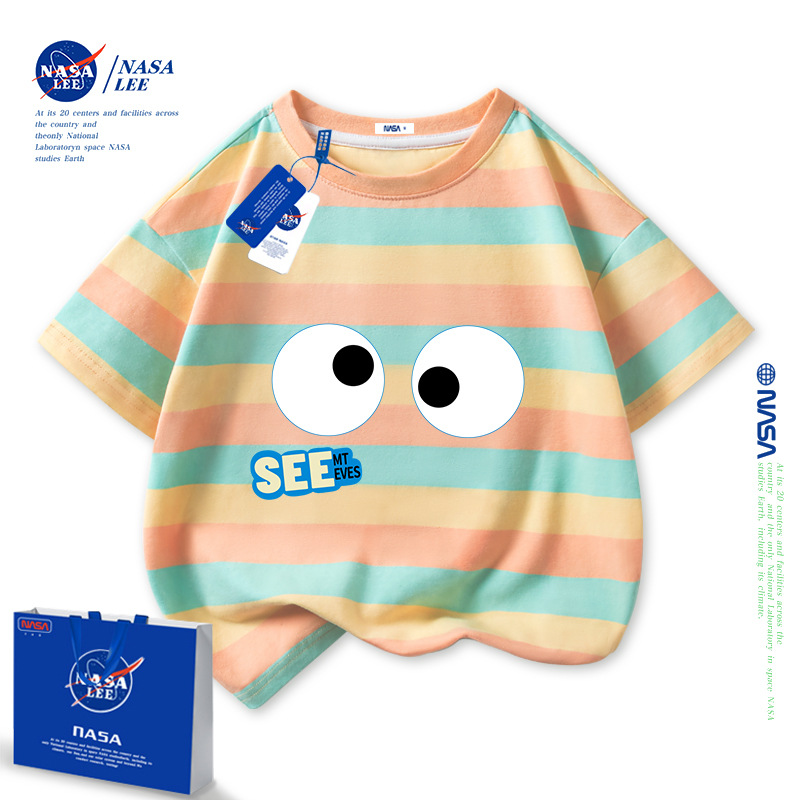 NASA 소년 티셔츠 반팔 여름 면화 2023 새로운 아동복 큰 어린이 소년 여름 코트 도매
