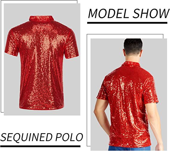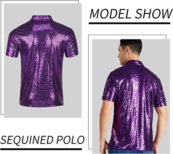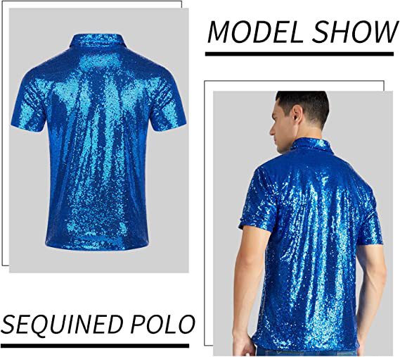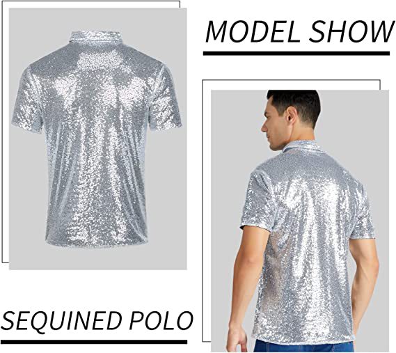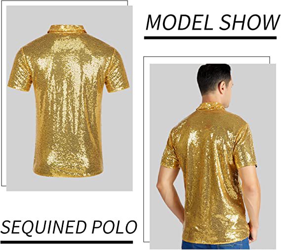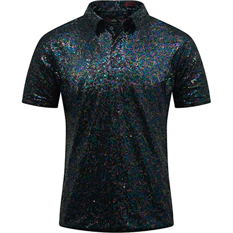 아마존 남성용 티셔츠 레트로 디스코 폴로 셔츠 70년대 카니발 스트리트 댄스 무대 스팽글 반팔