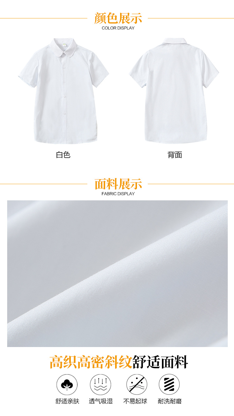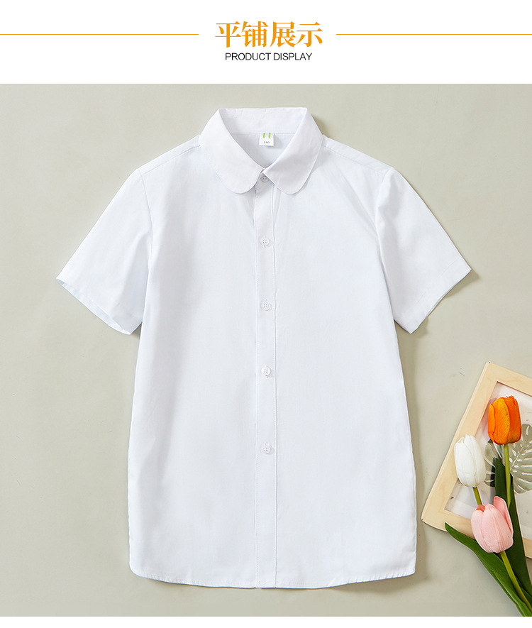 여아 흰 셔츠 여아 여름 순면 반팔 탑 어린이 파랑 교복 초등학생 공연복 셔츠
