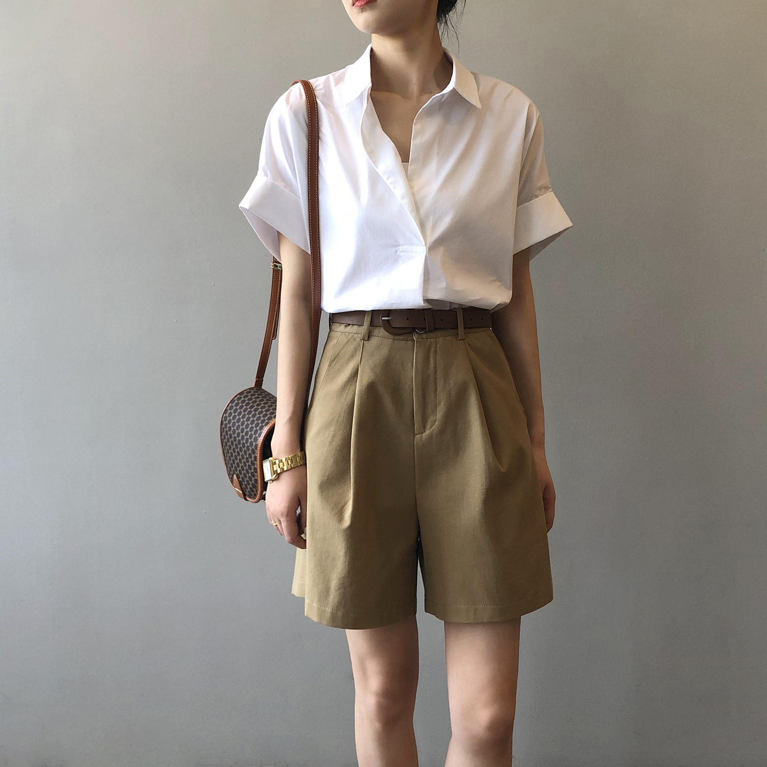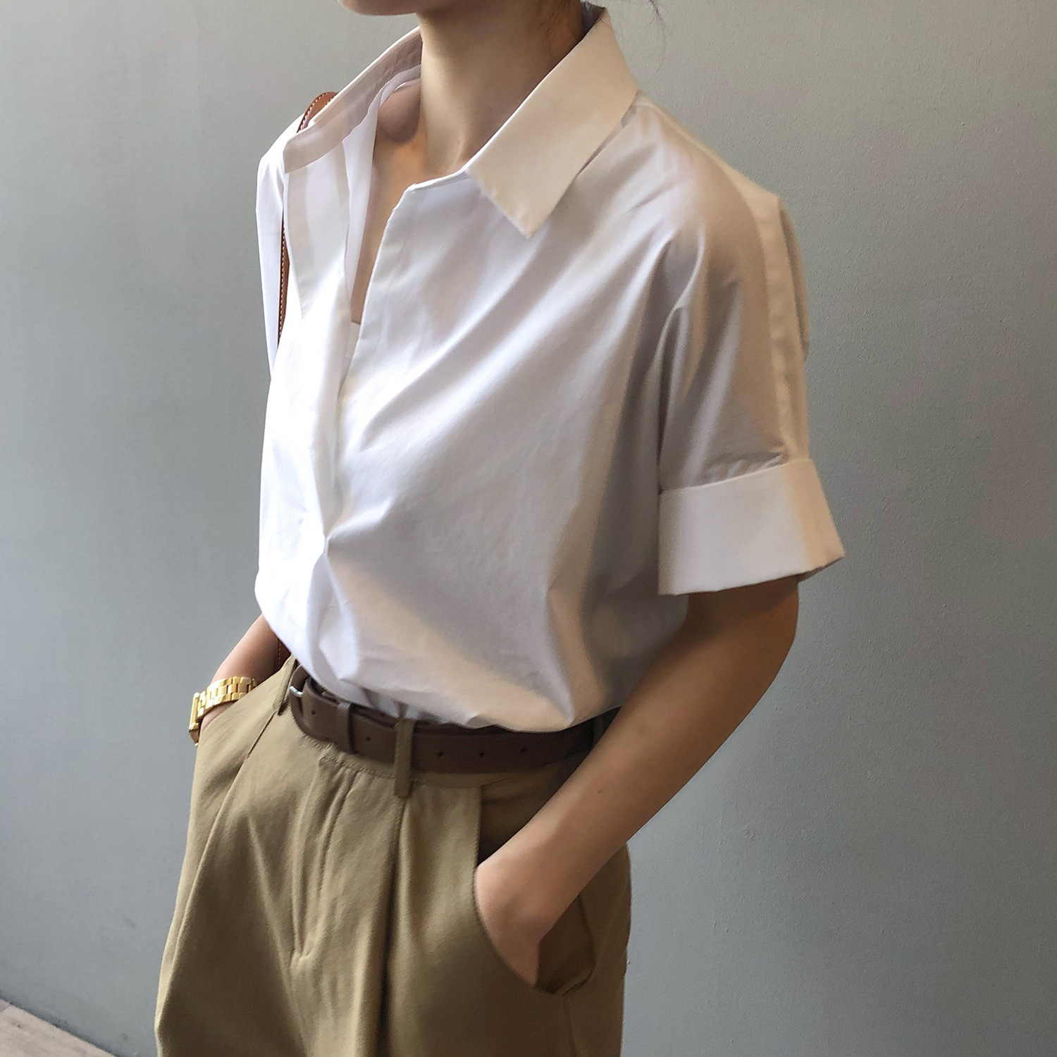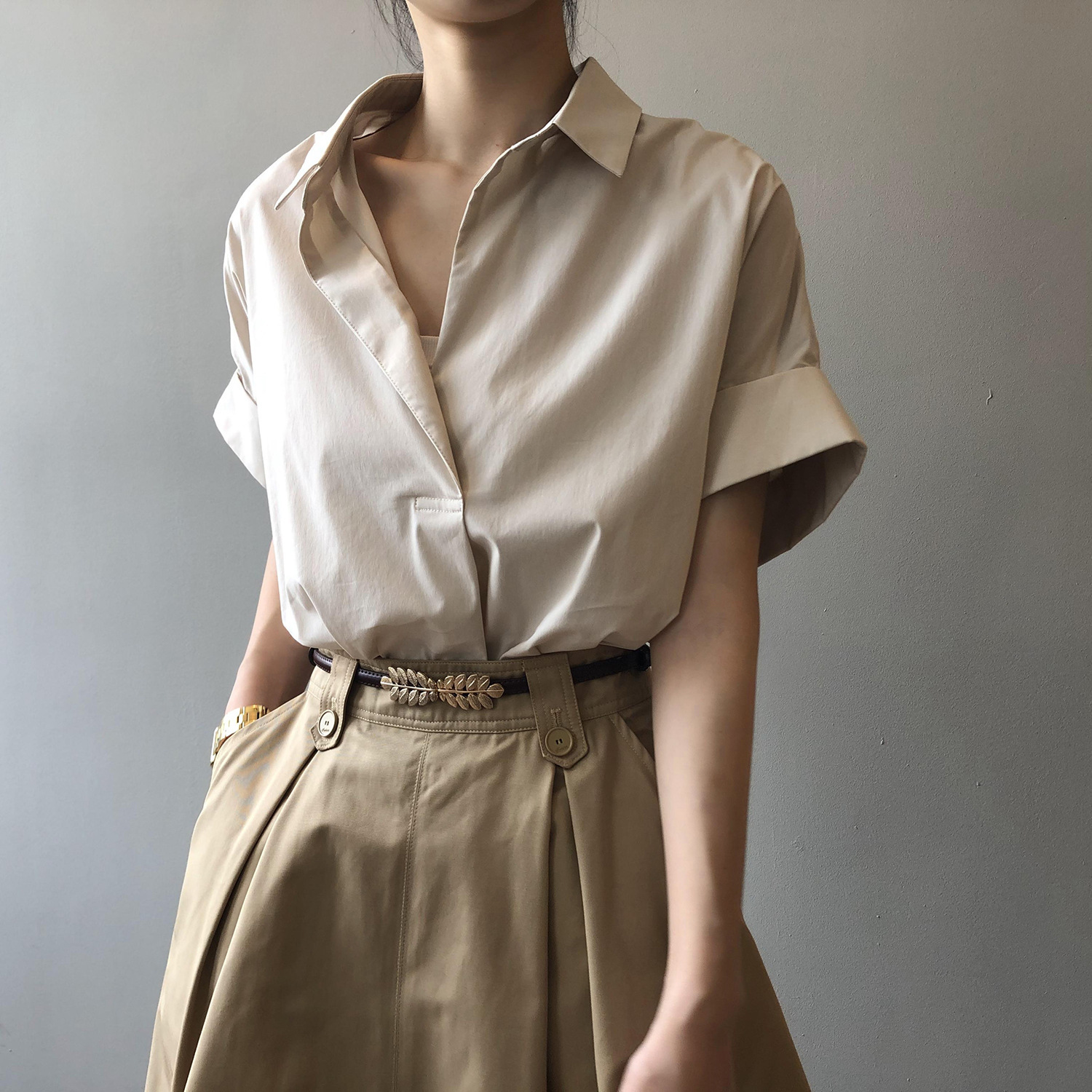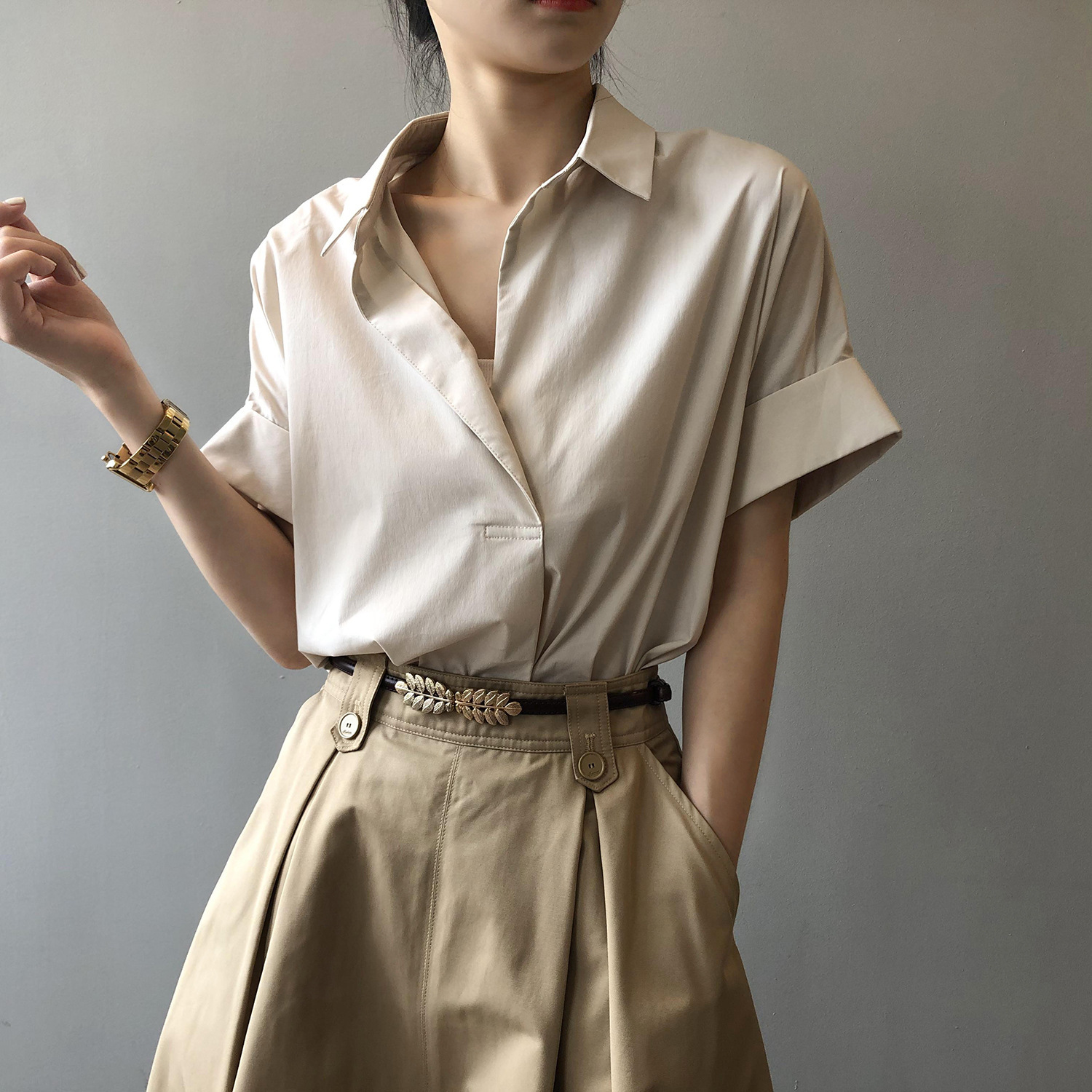 아세트산 새틴 셔츠 여성용 반팔 프랑스 고급 텐셀 풀오버 셔츠 레트로 배트윙 슬리브 루즈한 탑스토어 가기
