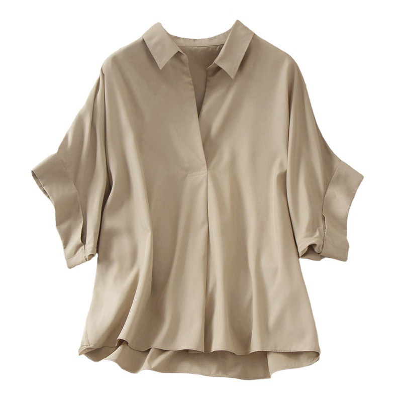 아세트산 새틴 셔츠 여성용 반팔 프랑스 고급 텐셀 풀오버 셔츠 레트로 배트윙 슬리브 루즈한 탑