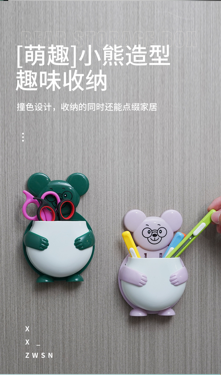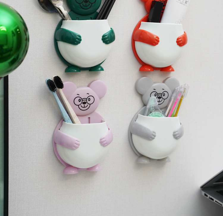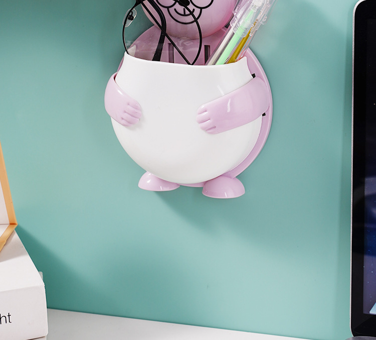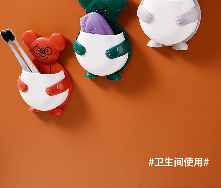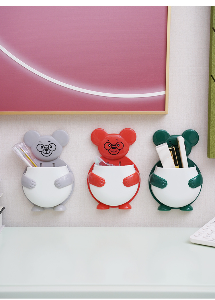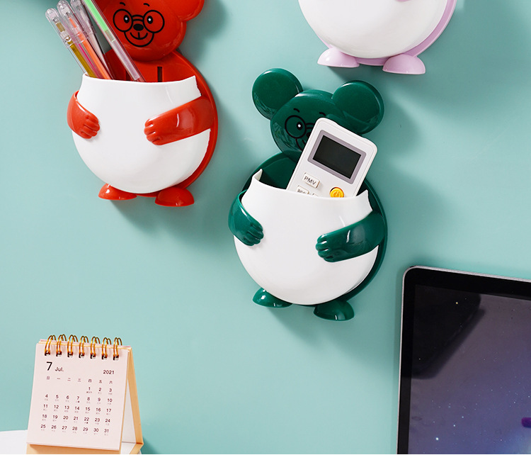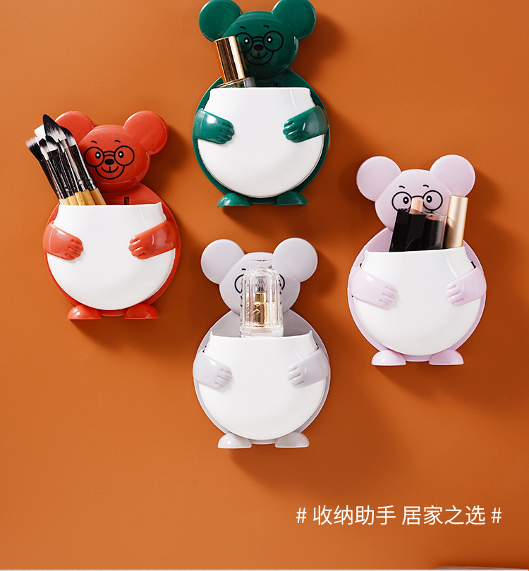 펀치 프리 벽걸이 형 귀여운 만화 더미 곰 잡화 보관함 거실 사무실 욕실 랙