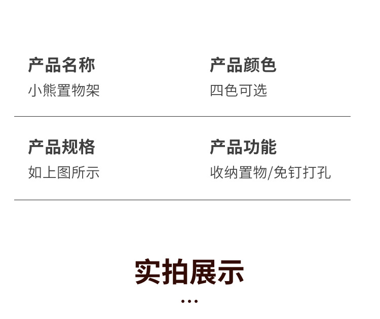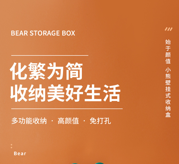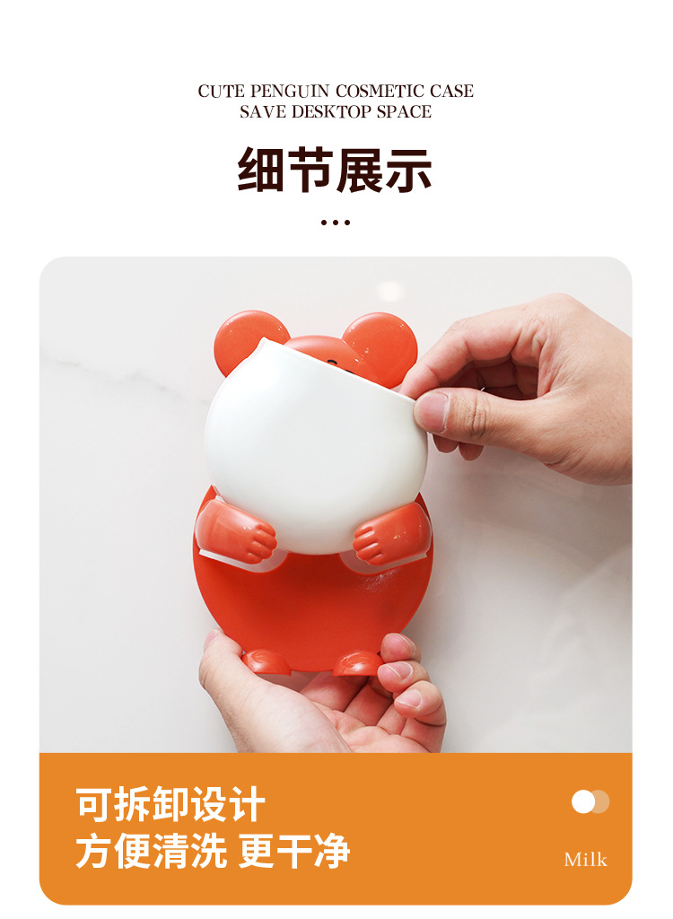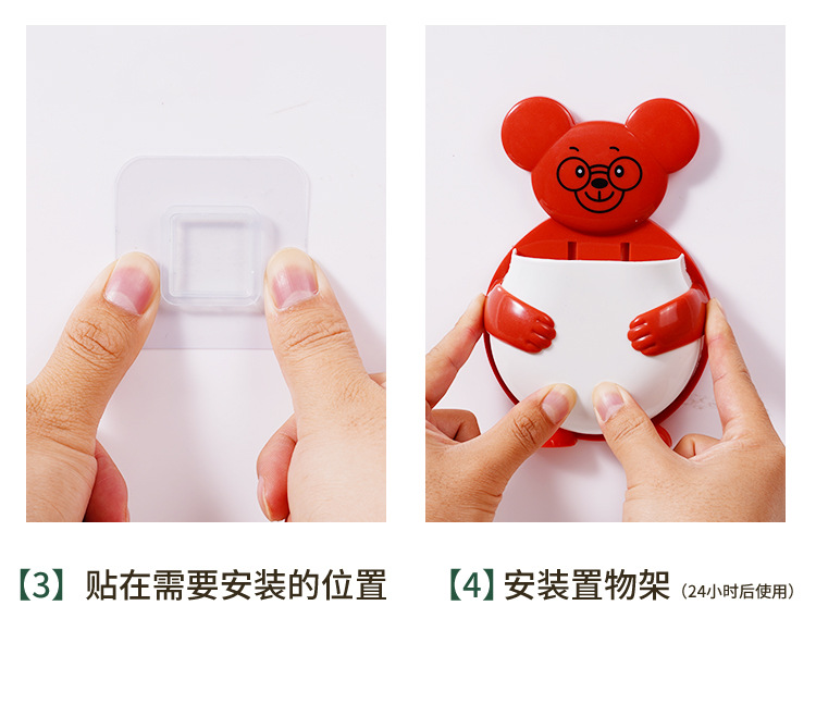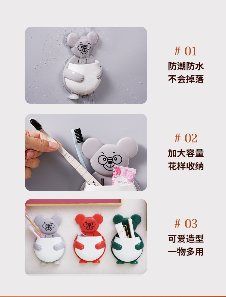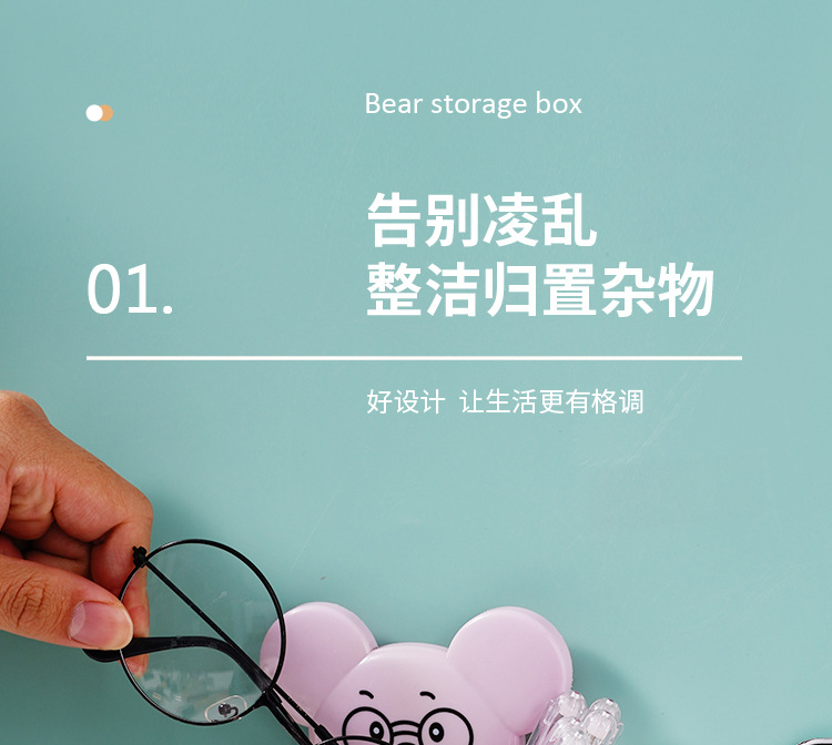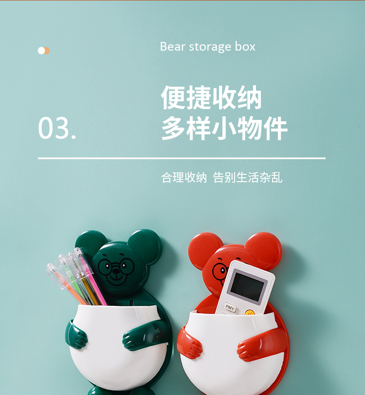 펀치 프리 벽걸이 형 귀여운 만화 더미 곰 잡화 보관함 거실 사무실 욕실 랙