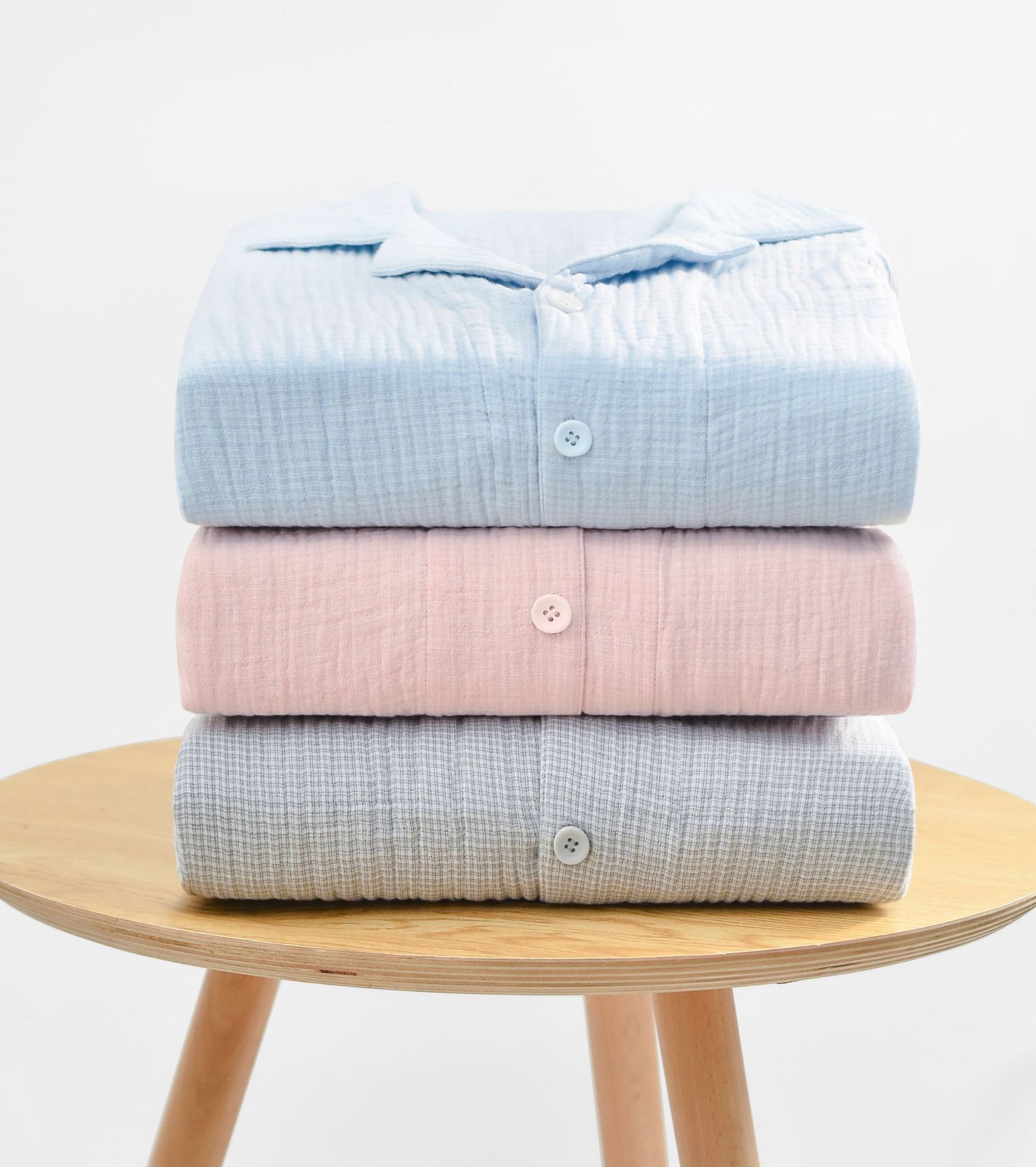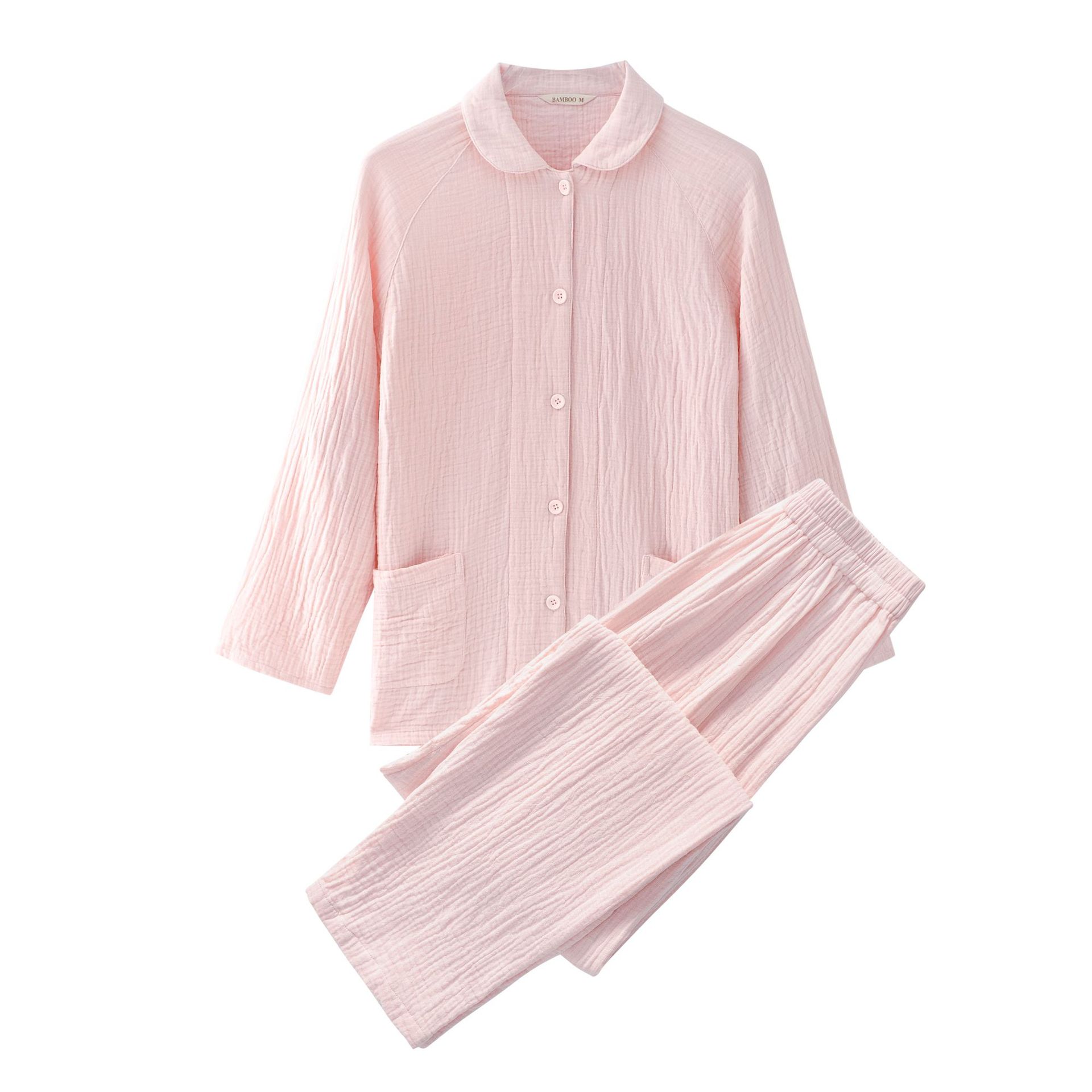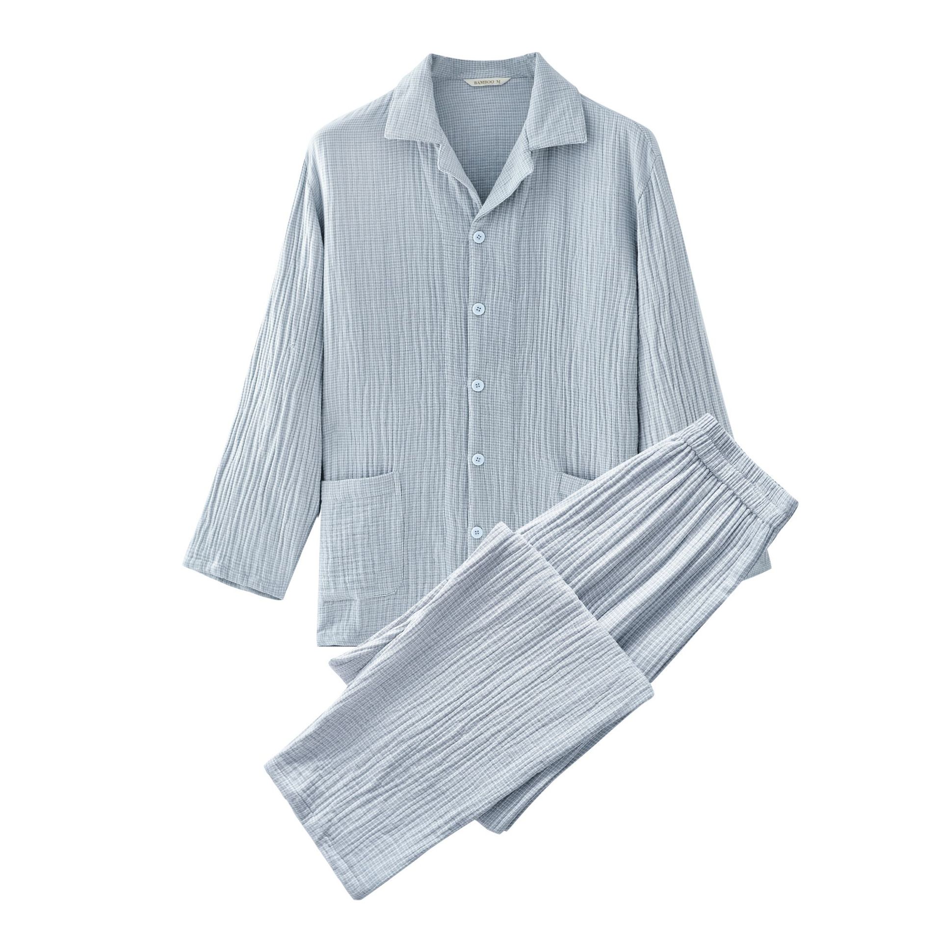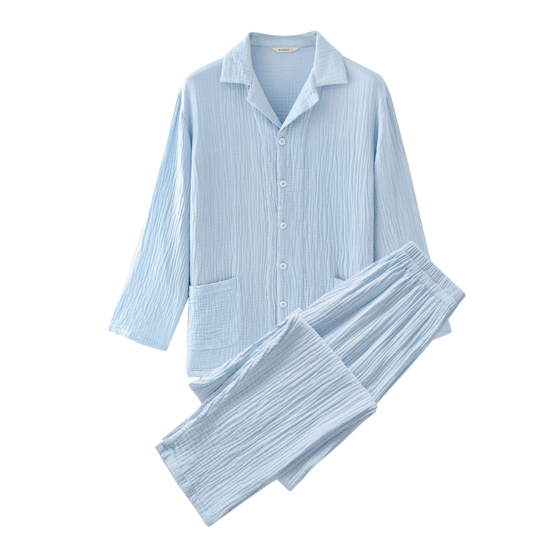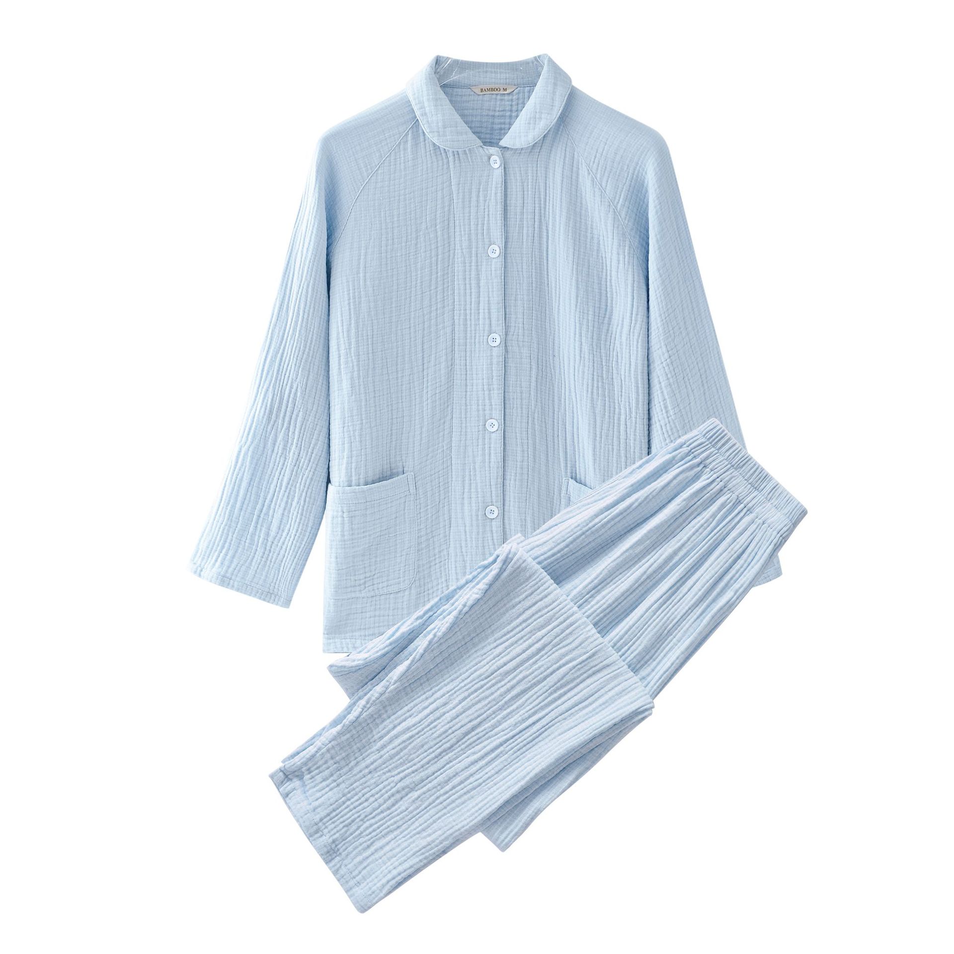 2024 새로운면 3 층 거즈 가정용 여성용 남성 커플 긴팔 잠옷 순면 일본식 비 인쇄스토어 가기