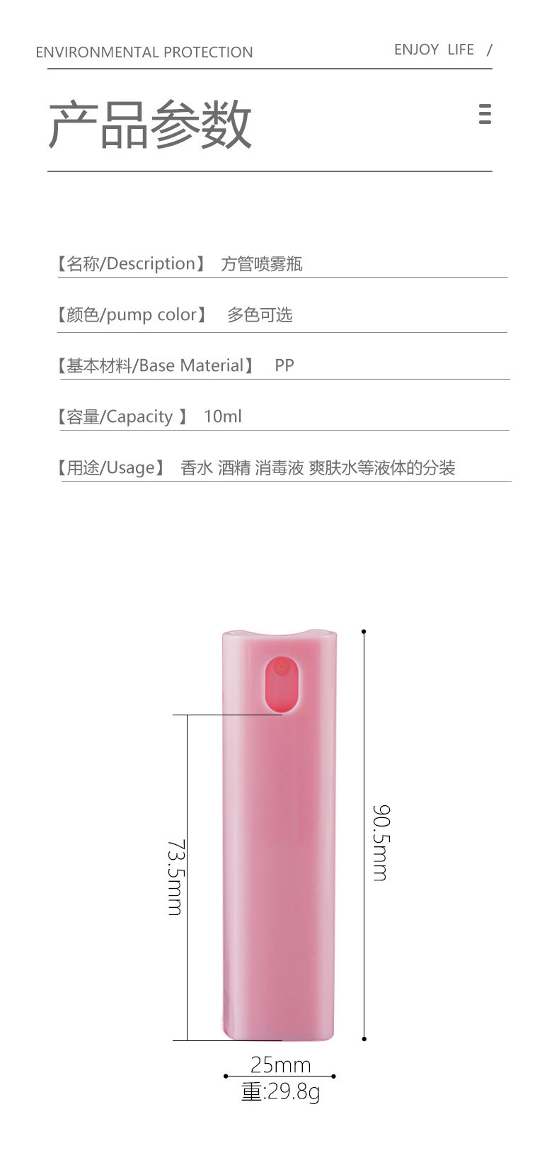 재고 10ml 사각 튜브 스프레이 병 향수 모기 퇴치 액체 병 스크린 청소 휴대용 사각 구강 스프레이 병