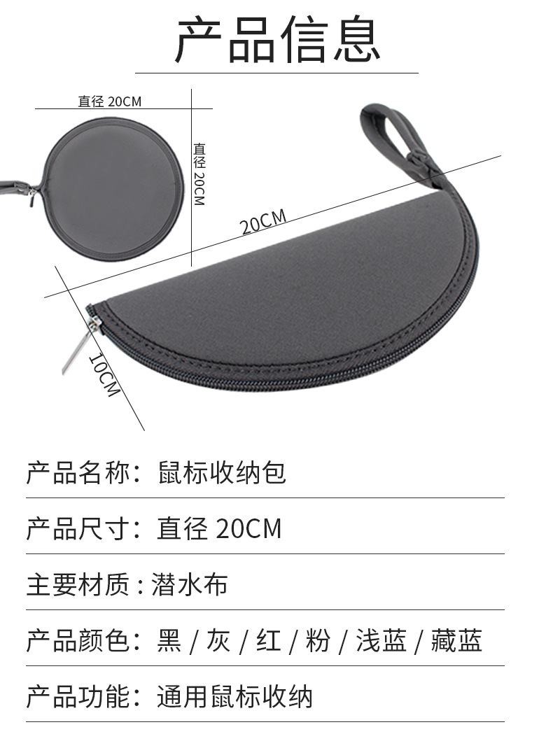 다기능 휴대용 노트북 컴퓨터 마우스 데이터 케이블 보관 가방 다이빙 재료 두꺼운 마우스 패드 지퍼 가방