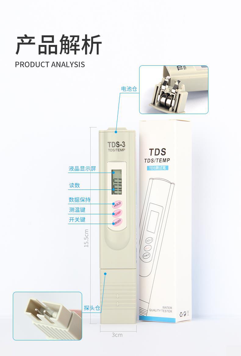 공장 tds 다기능 수질 테스트 펜 가정용 음료수 테스트 펜 로고 실크 스크린 인쇄 고정밀 TDS 펜