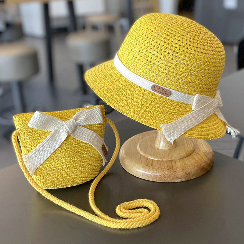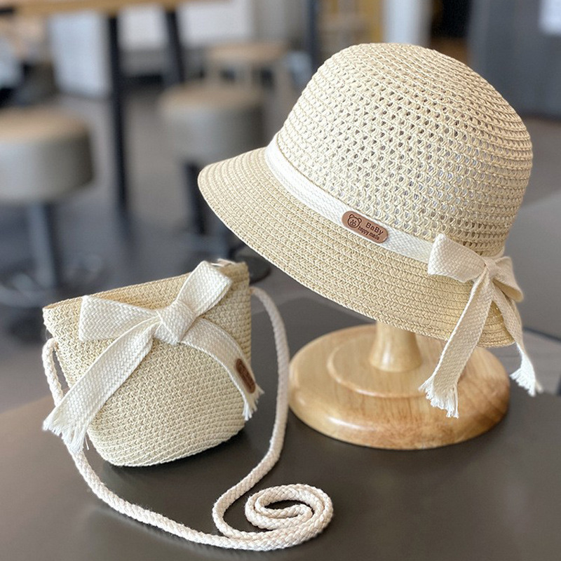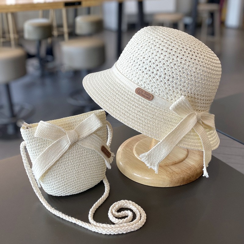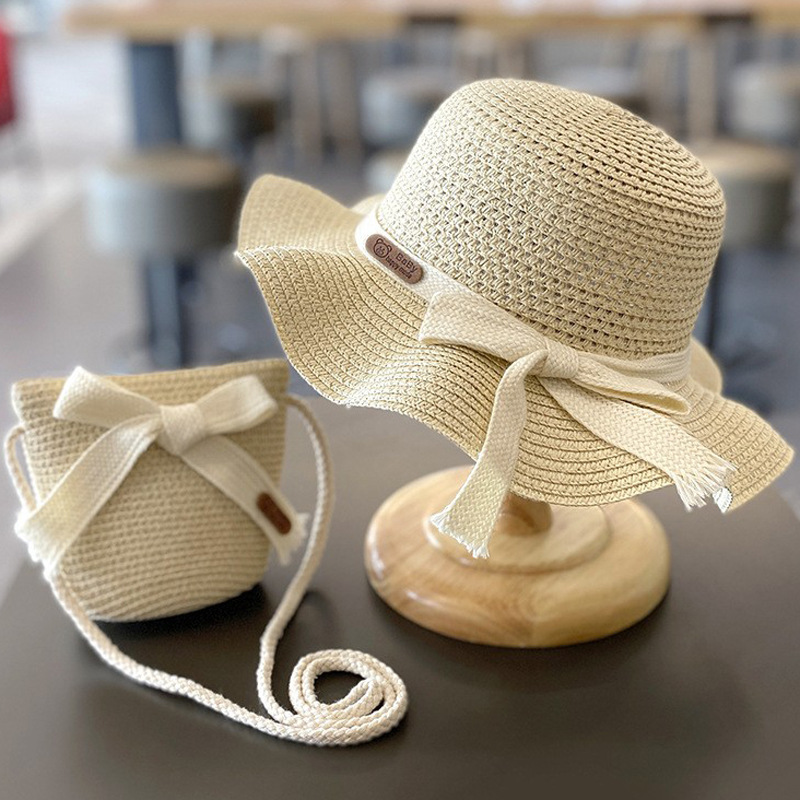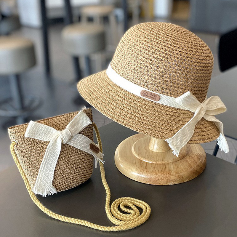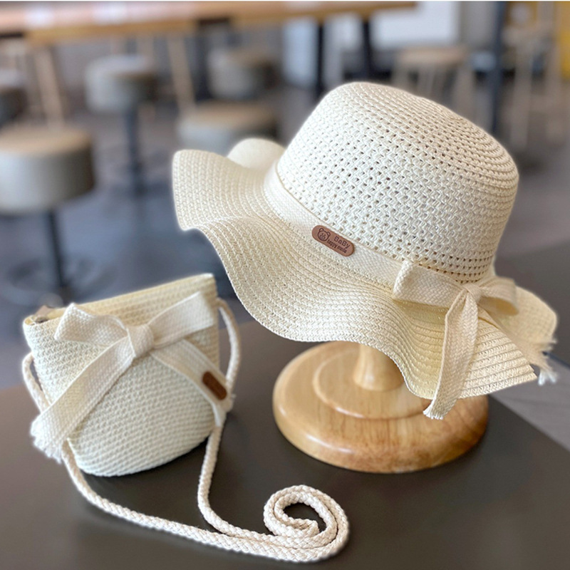 어린이 자외선 차단제 모자 여름 소녀의 차양 밀짚 모자 가방 세트 소녀 아기 소녀 해변 소녀 태양 어부 모자