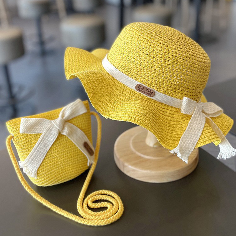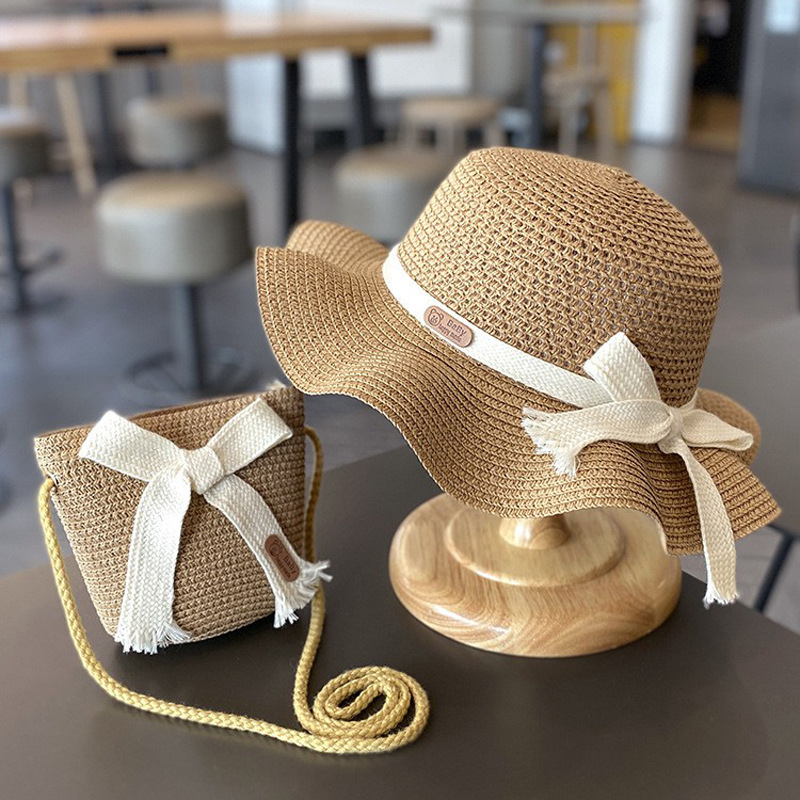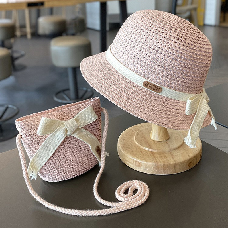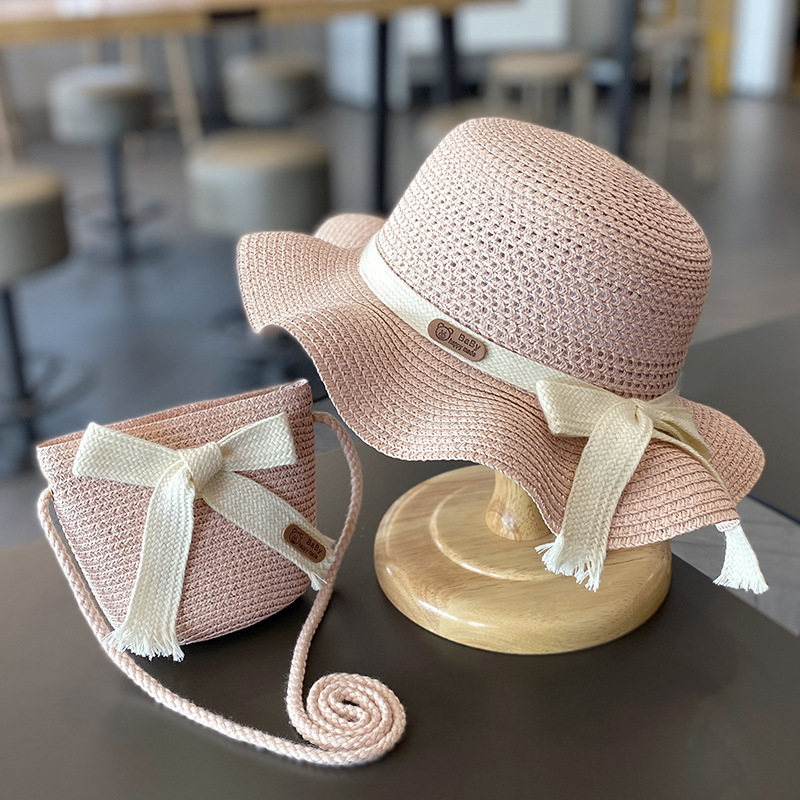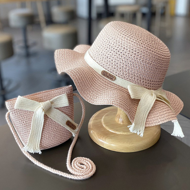 儿童防晒帽子夏季女童遮阳草帽包包套装女宝宝沙滩女孩太阳渔夫帽