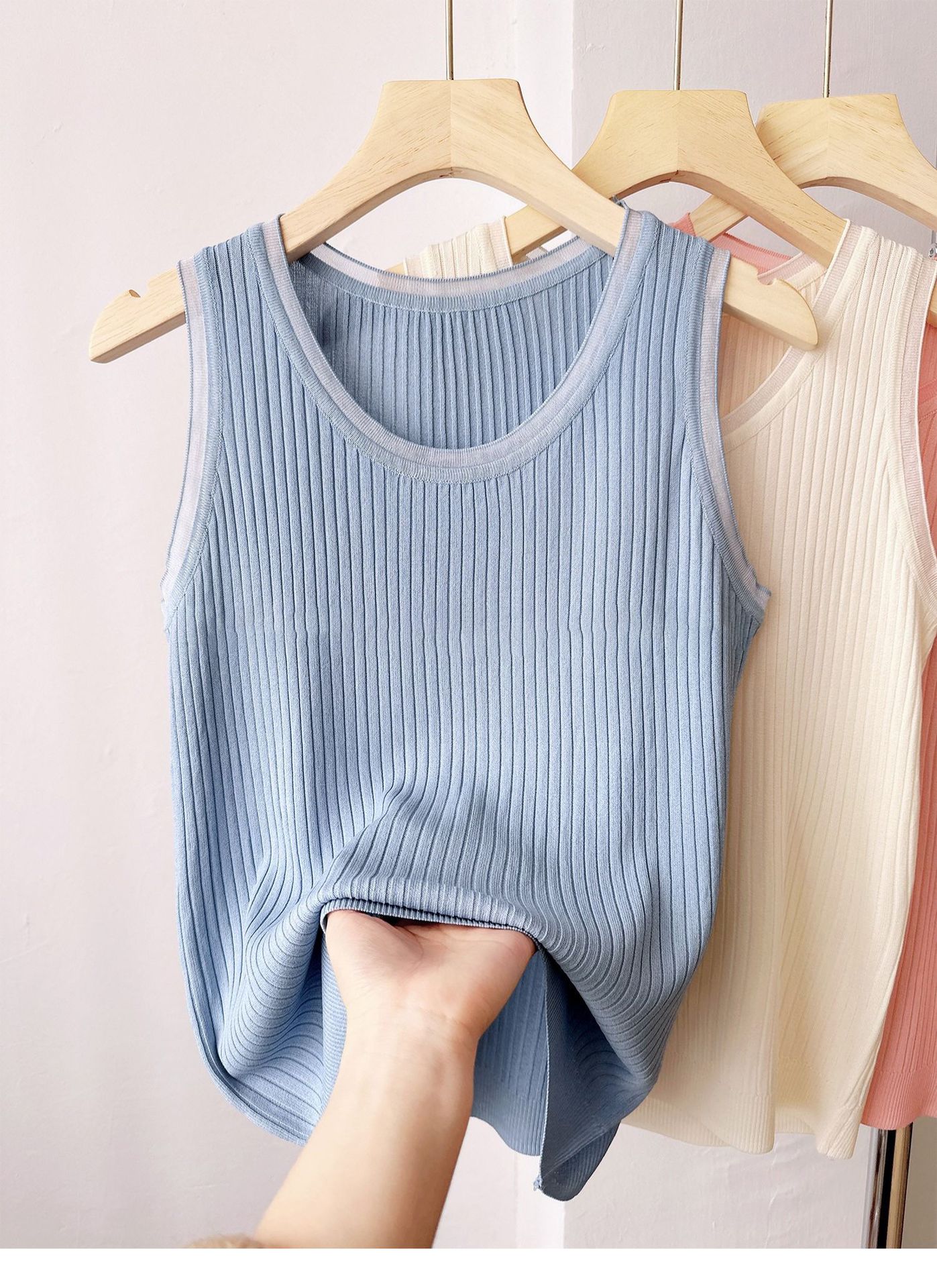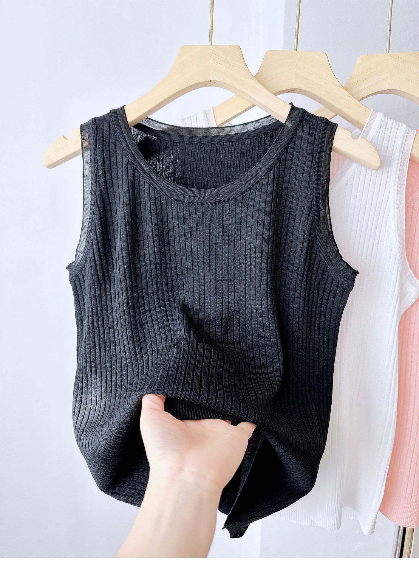 여성용 민소매 티셔츠 여름 신상 다용도 아이스 실크 니트 캐미솔 이너웨어 정장 베이스 셔츠 상의
