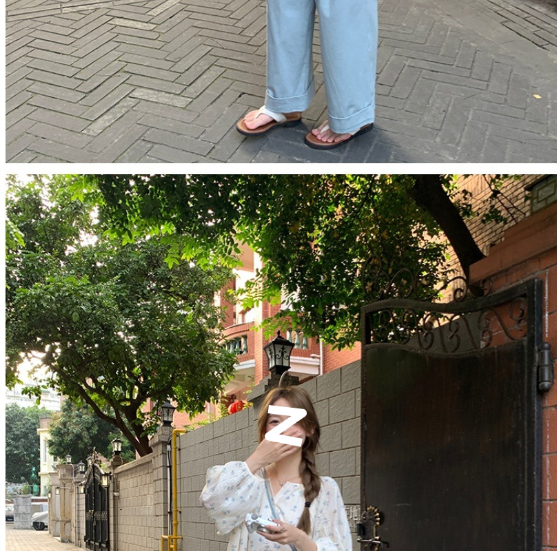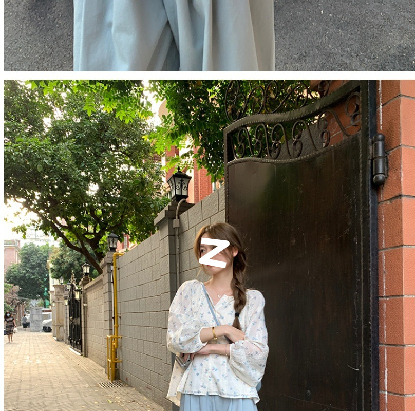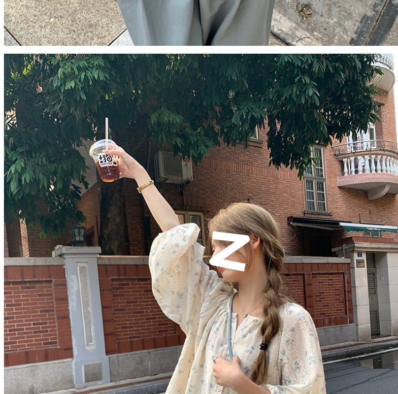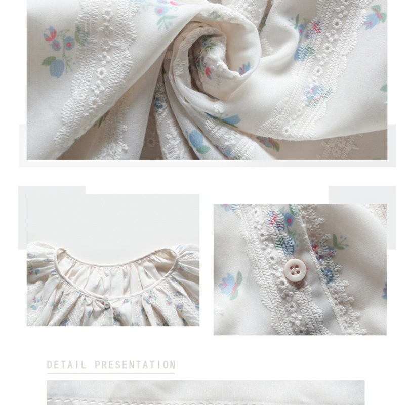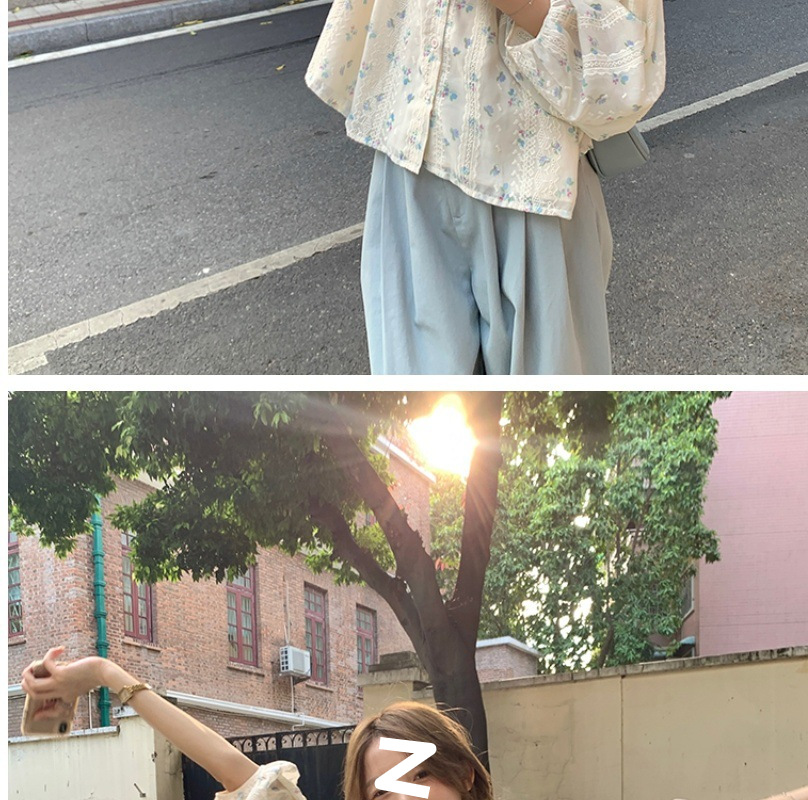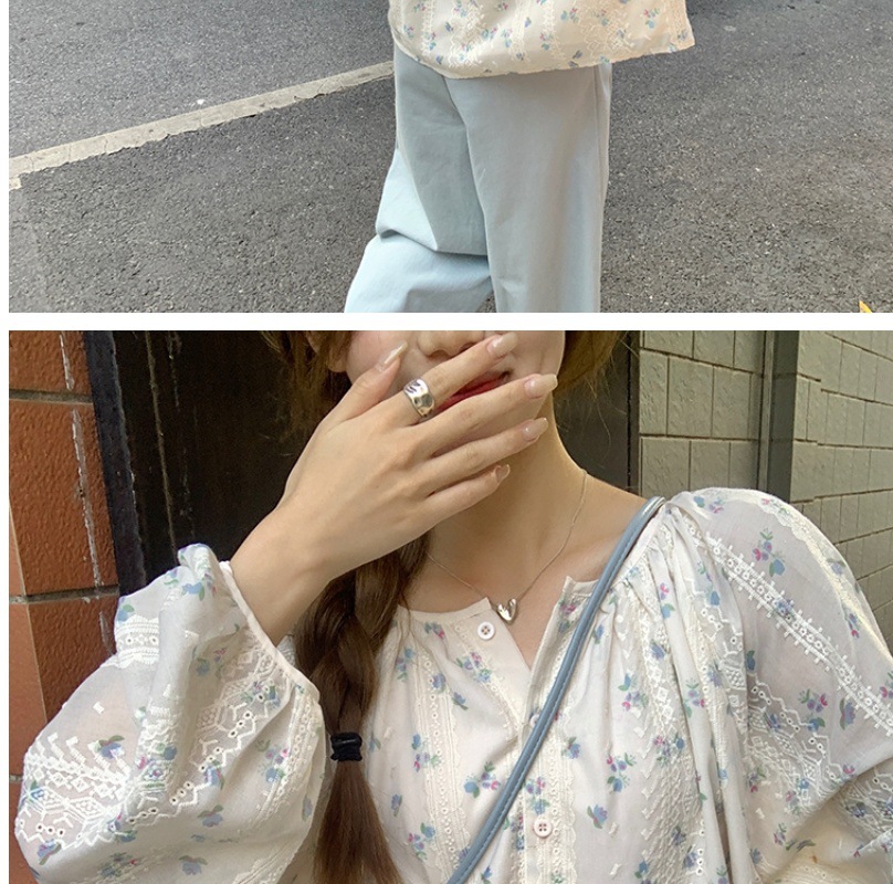신선한 스타일 꽃무늬 긴팔 셔츠 스몰 사이즈 느슨한 슬리밍 라운드 넥 달콤한 걸리 스타일 모든 매치 쉬폰 셔츠