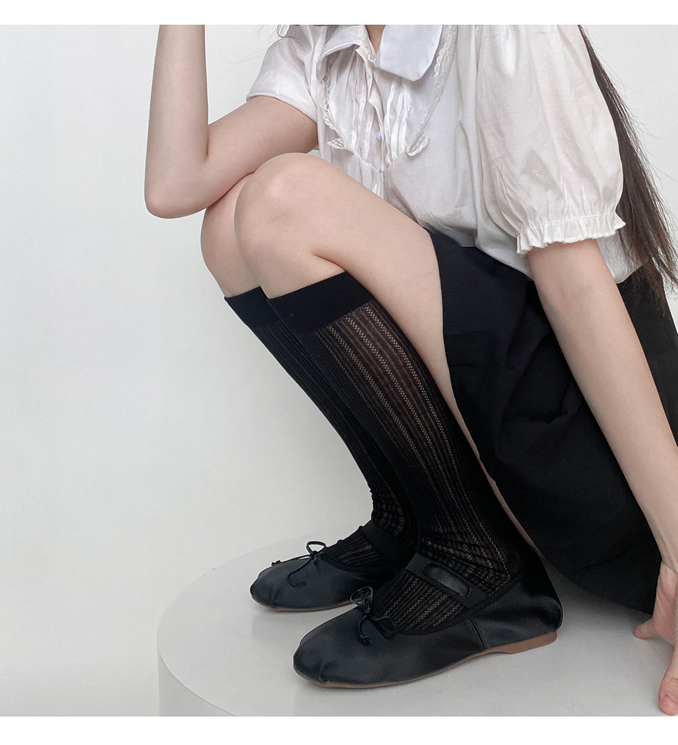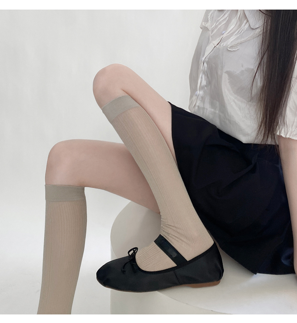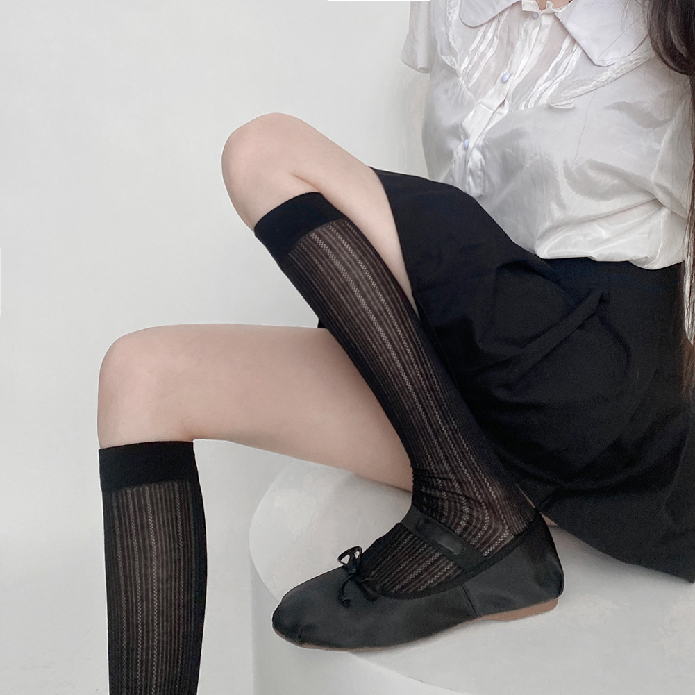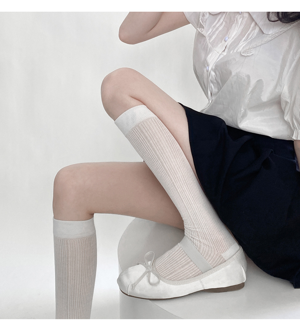 봄과 여름 단색 선 스크린 얇은 무릎 높이 종아리 양말 jk 바람 메쉬 마이크로 투명 슬림 모기 방지 파일 양말 어린이 다용도