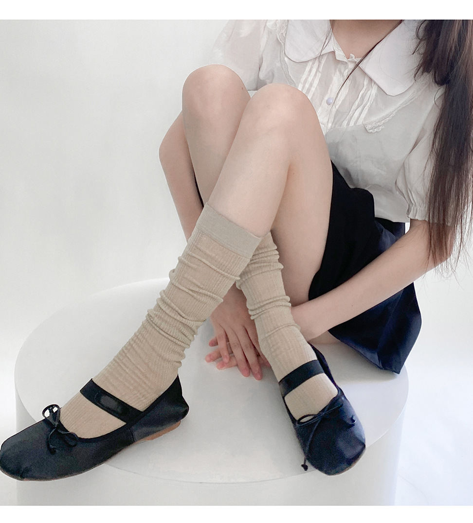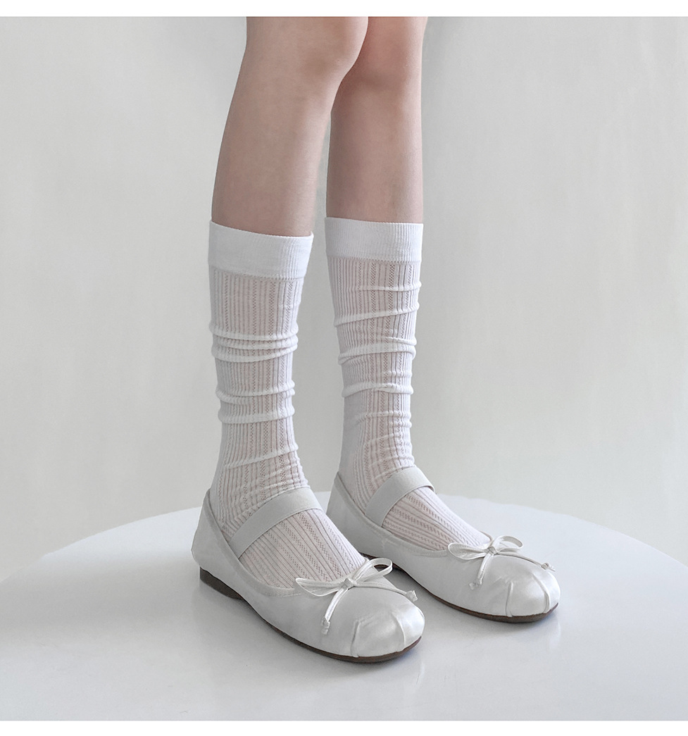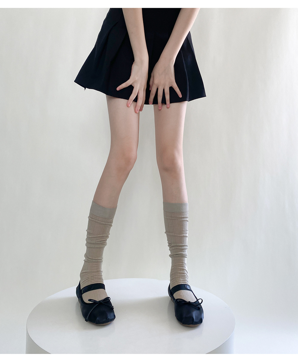 봄과 여름 단색 선 스크린 얇은 무릎 높이 종아리 양말 jk 바람 메쉬 마이크로 투명 슬림 모기 방지 파일 양말 어린이 다용도