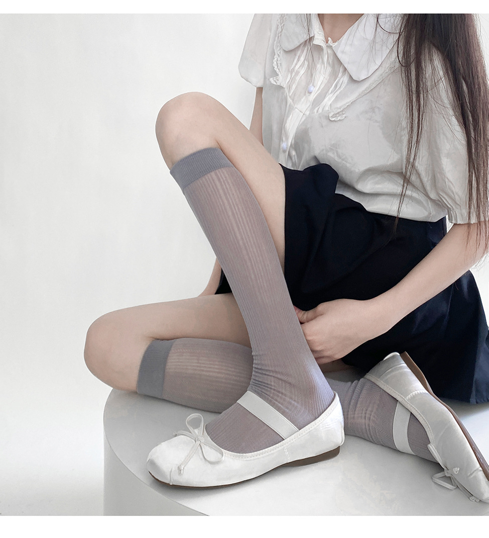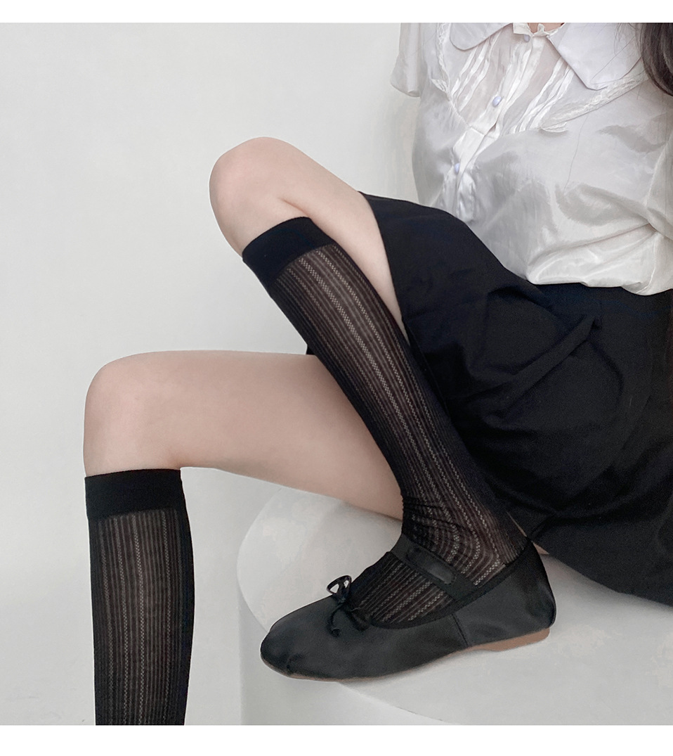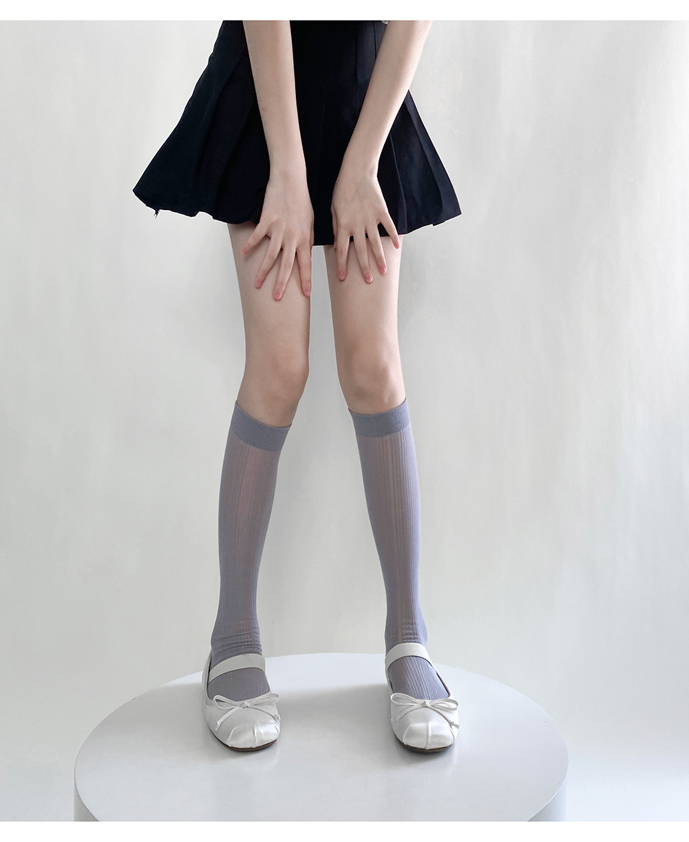 봄과 여름 단색 선 스크린 얇은 무릎 높이 종아리 양말 jk 바람 메쉬 마이크로 투명 슬림 모기 방지 파일 양말 어린이 다용도스토어 가기