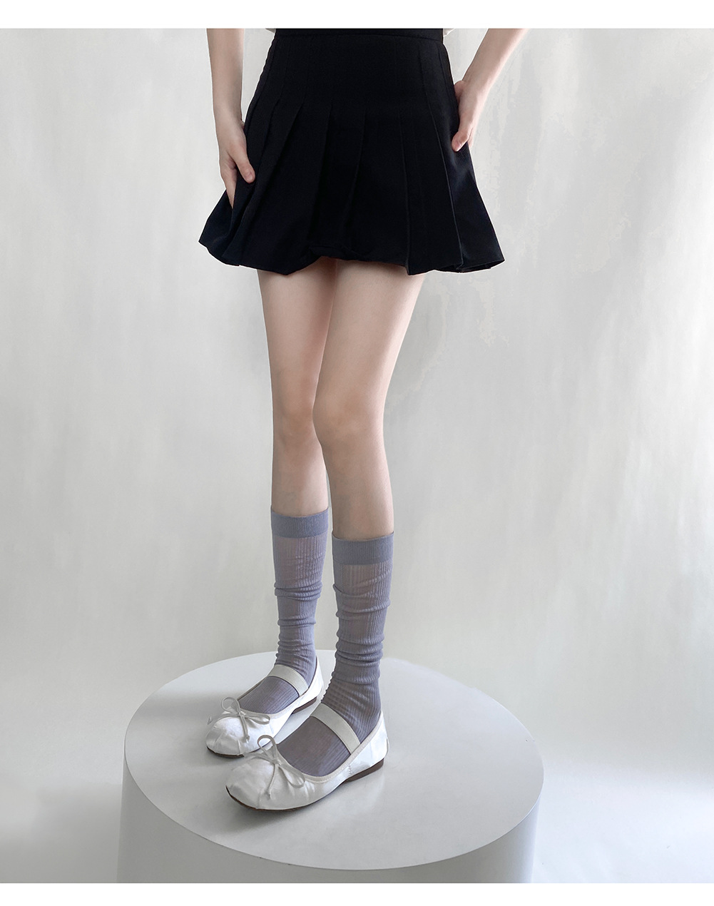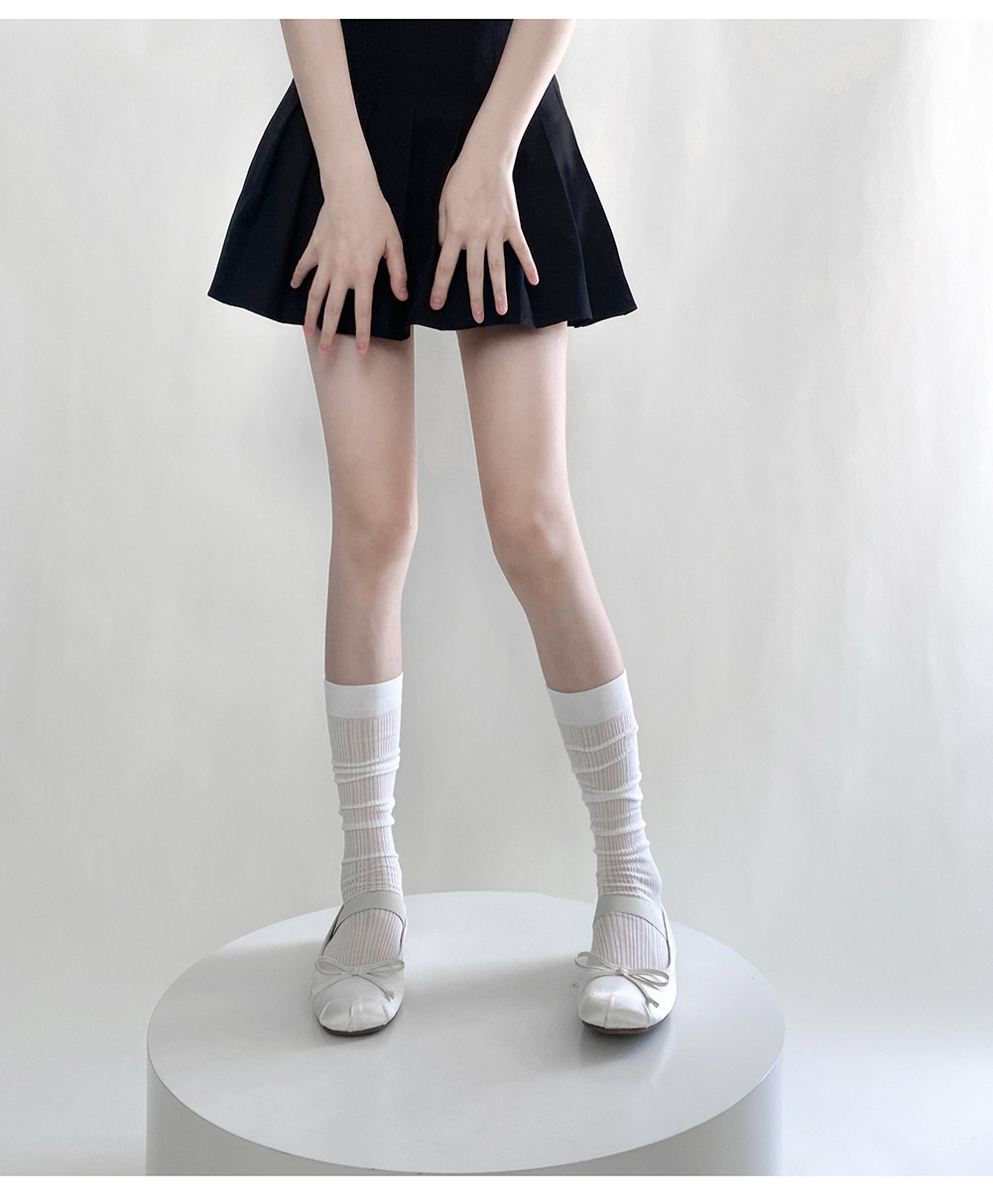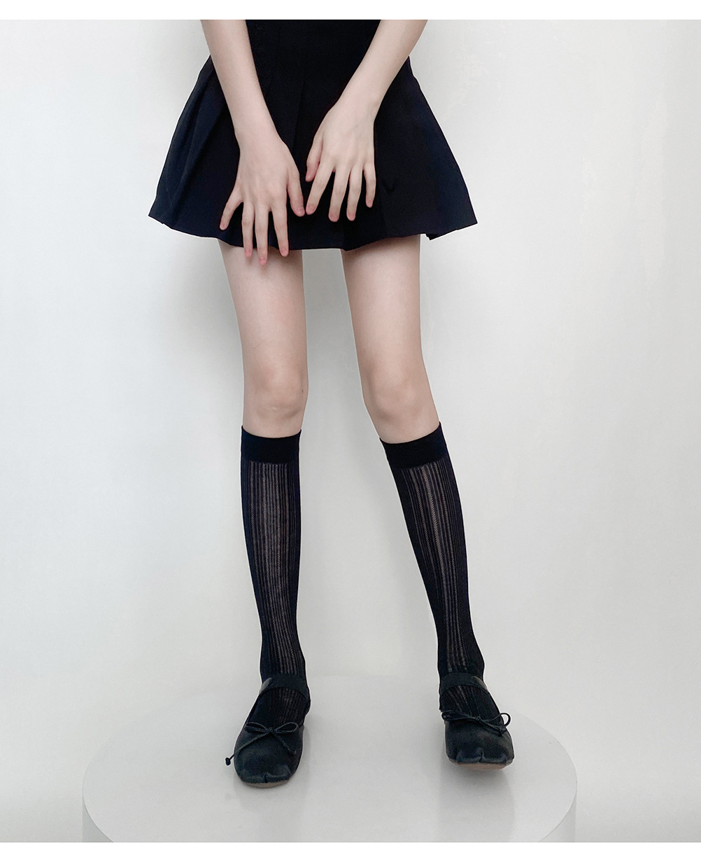 봄과 여름 단색 선 스크린 얇은 무릎 높이 종아리 양말 jk 바람 메쉬 마이크로 투명 슬림 모기 방지 파일 양말 어린이 다용도스토어 가기