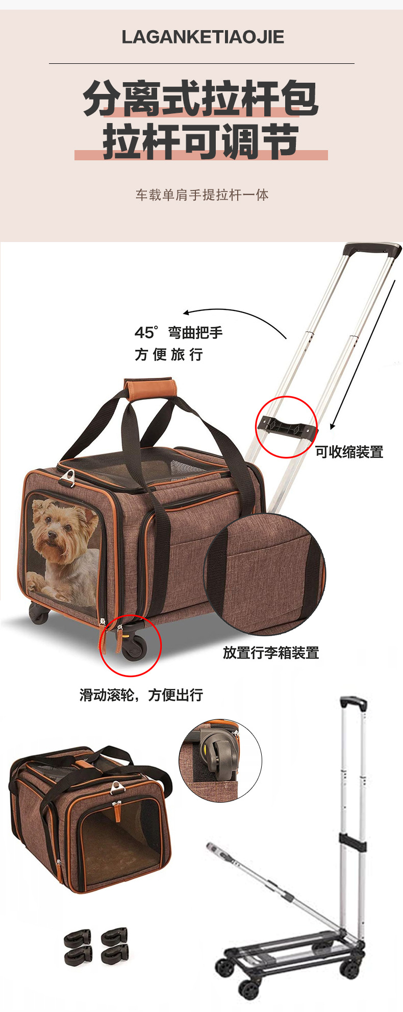 애완 동물 트롤리 가방 개 산책 수하물 개 카트 고양이 접이식 케이지 다기능 휴대용 차량 가방