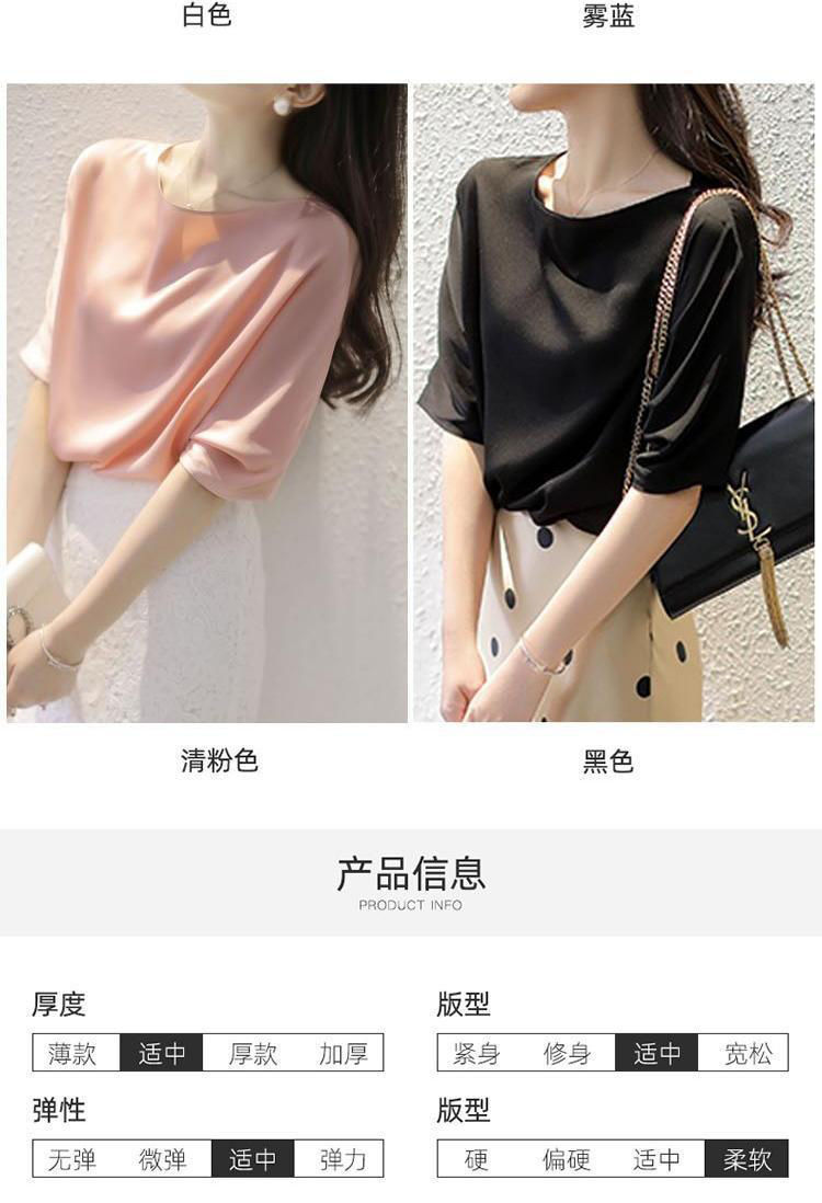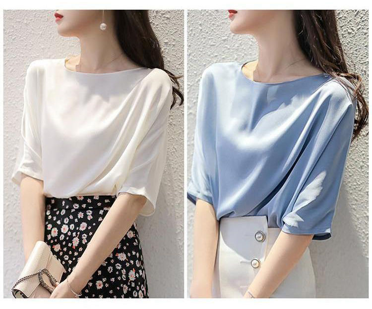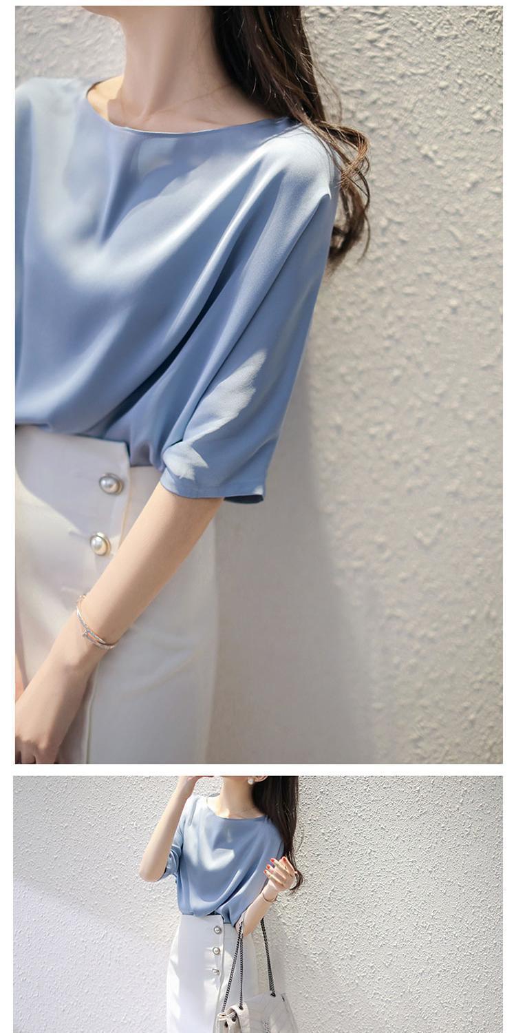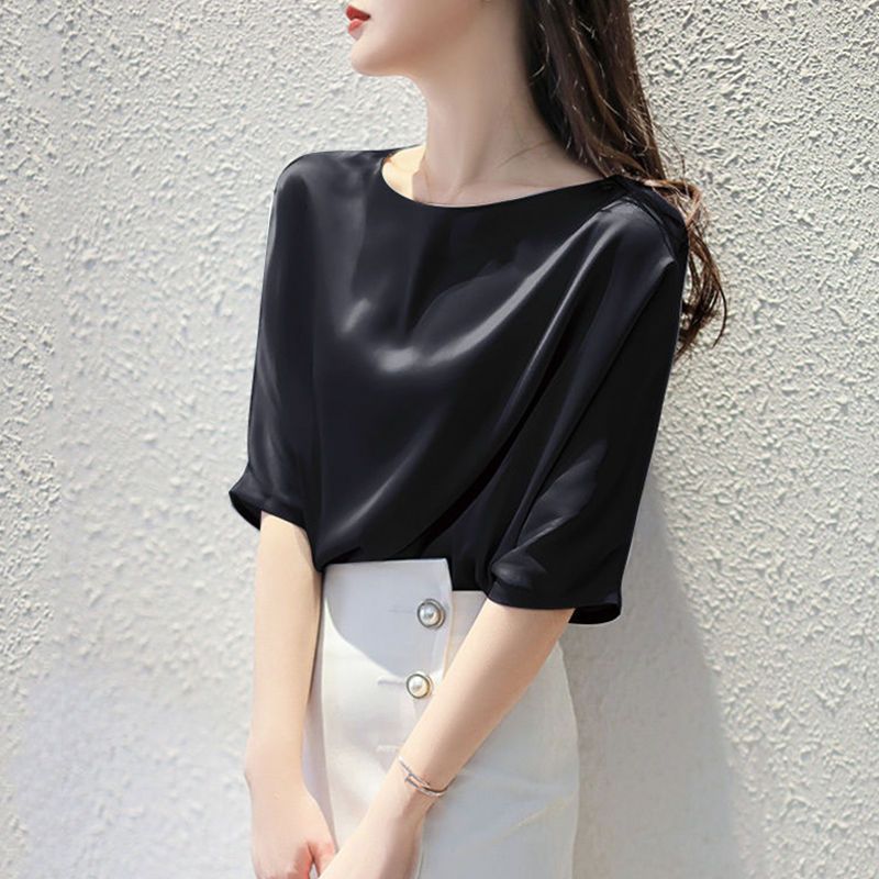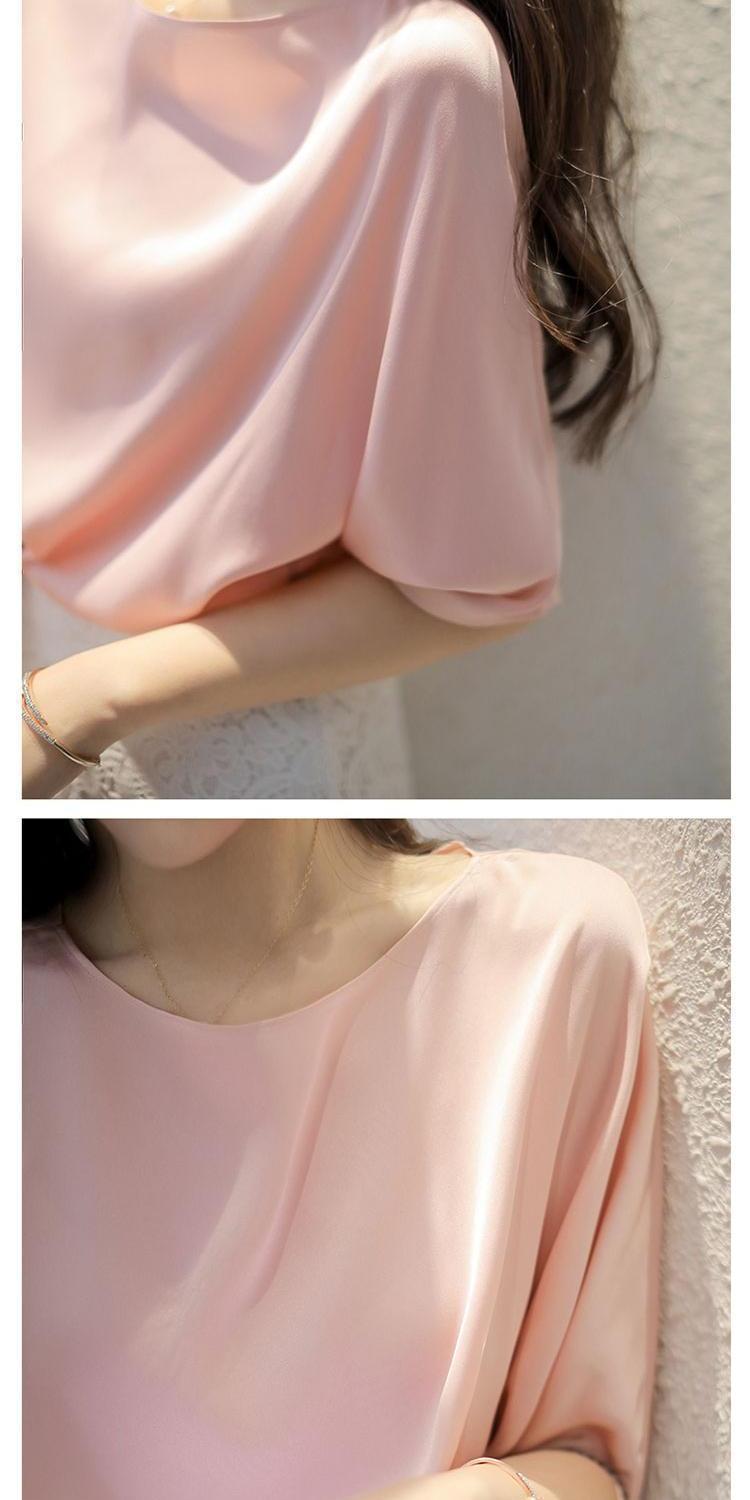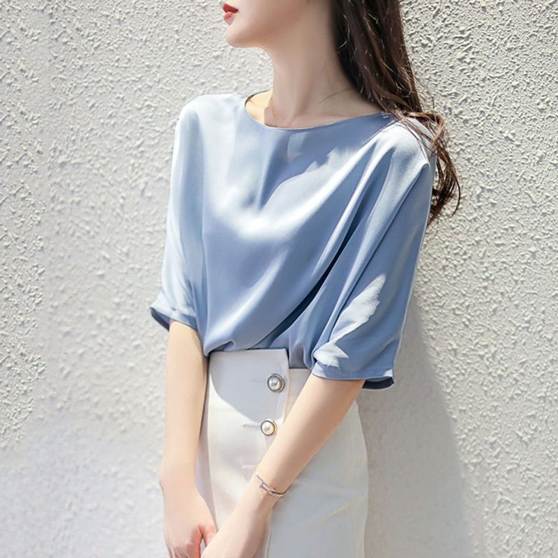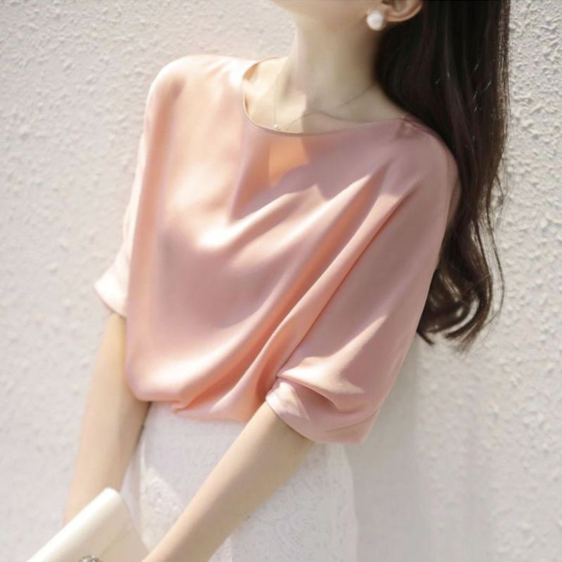 반팔 쉬폰 셔츠 여성용 여름 얇은 연령 감소 아름다운 작은 셔츠 고급 우아한 모든 매치 라운드 넥 솔리드 컬러 탑 트렌디스토어 가기