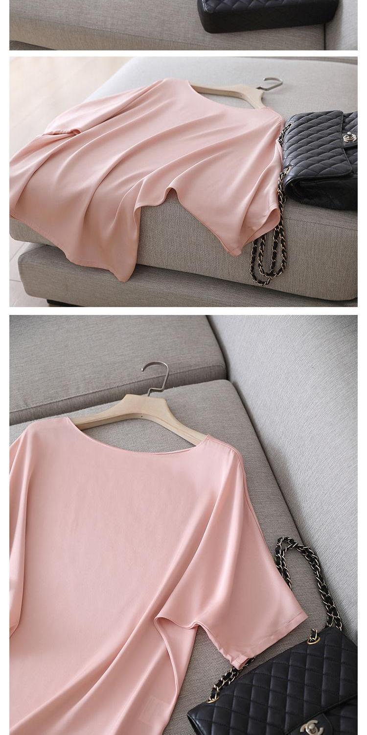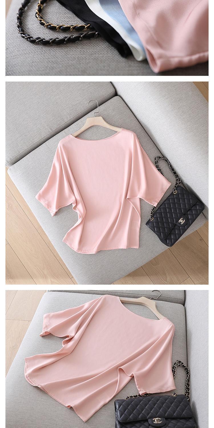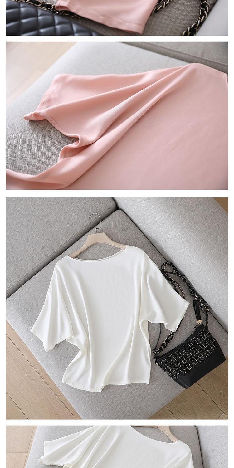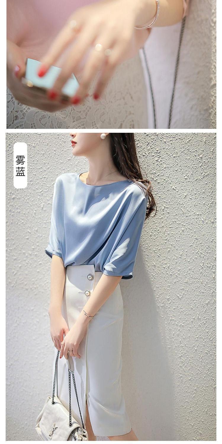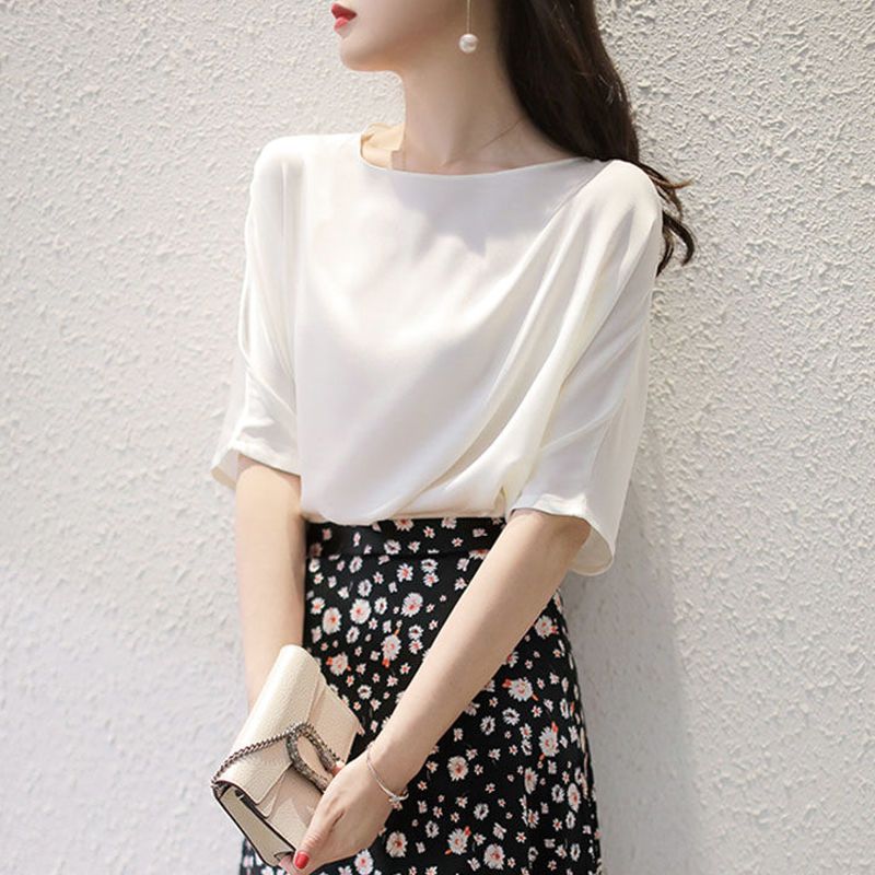 반팔 쉬폰 셔츠 여성용 여름 얇은 연령 감소 아름다운 작은 셔츠 고급 우아한 모든 매치 라운드 넥 솔리드 컬러 탑 트렌디스토어 가기