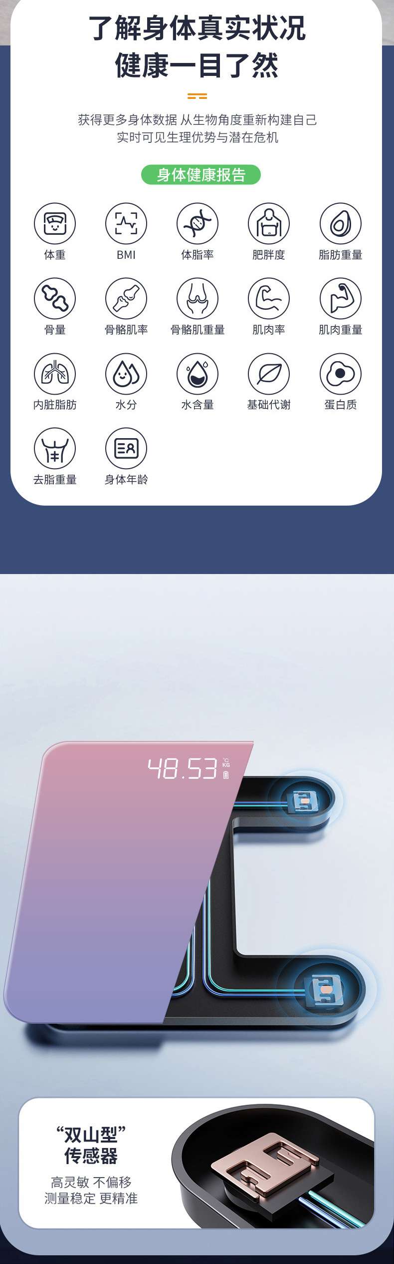 • [체지방 척도 업그레이드] LED 그라디언트 파란색과 노란색