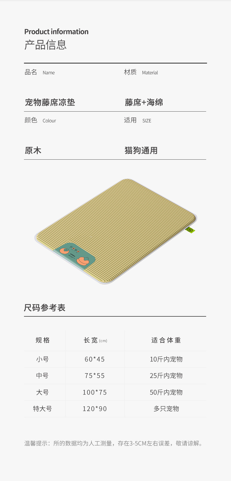 애완 동물 매트 긁힘 방지 및 물린 방지 고양이 수면 매트 시원한 통기성 냉각 개 매트 방수 등나무 매트 국경 도매스토어 가기