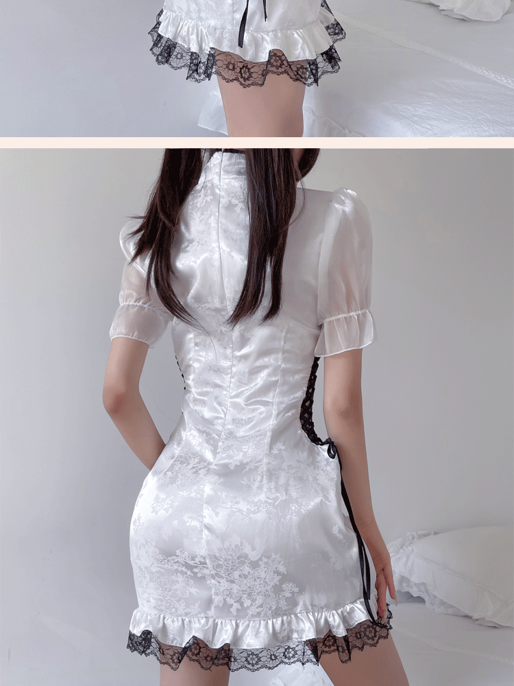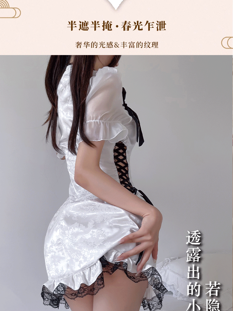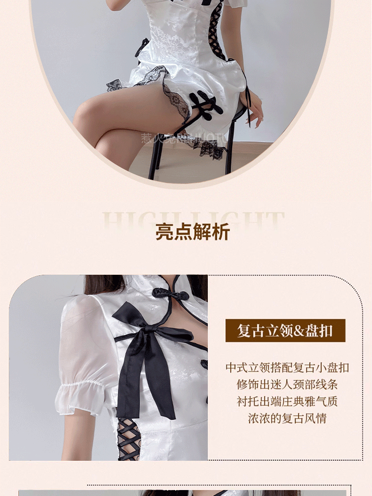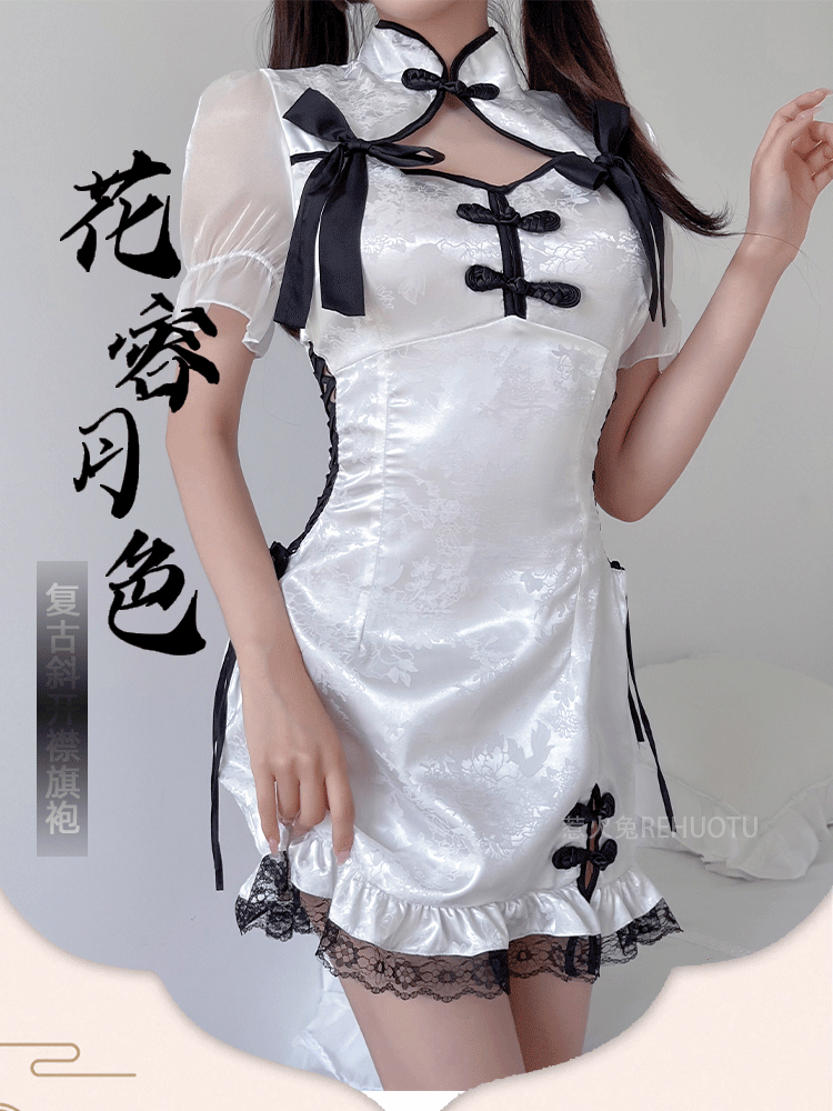 뜨거운 토끼 라이브 폭발 새로운 중국 스타일 메이드 원피스 세로 칼라 분할 원피스 국가 스타일 치파오 잠옷 엉덩이 치마