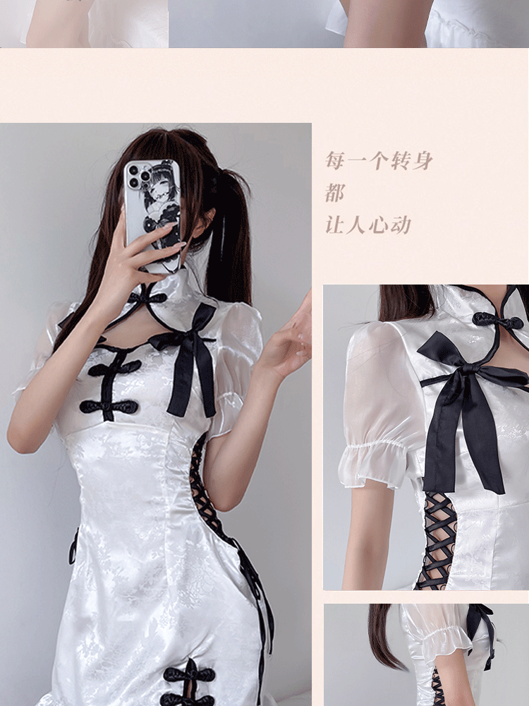 뜨거운 토끼 라이브 폭발 새로운 중국 스타일 메이드 원피스 세로 칼라 분할 원피스 국가 스타일 치파오 잠옷 엉덩이 치마스토어 가기