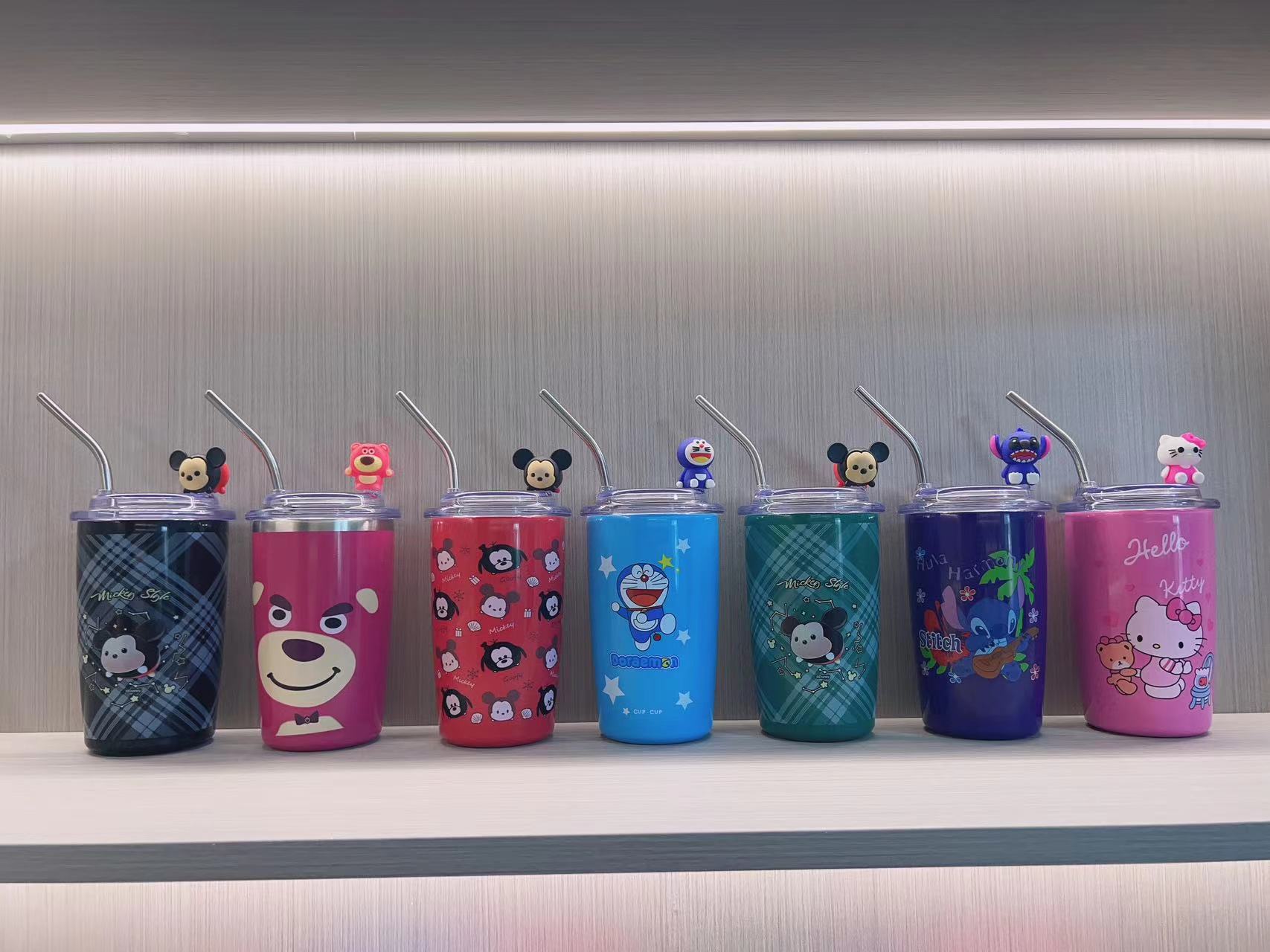 딸기 곰 새로운 귀여운 미키 보온병 여성용 고가 흡입 컵 여성용 인터넷 레드 컵 사무실 물 컵스토어 가기