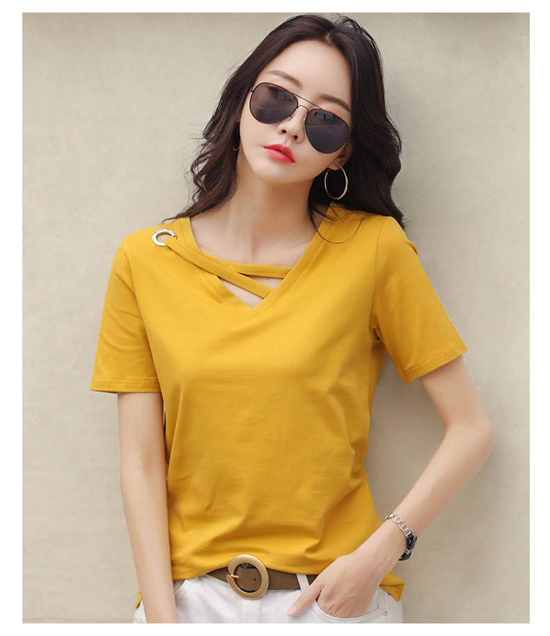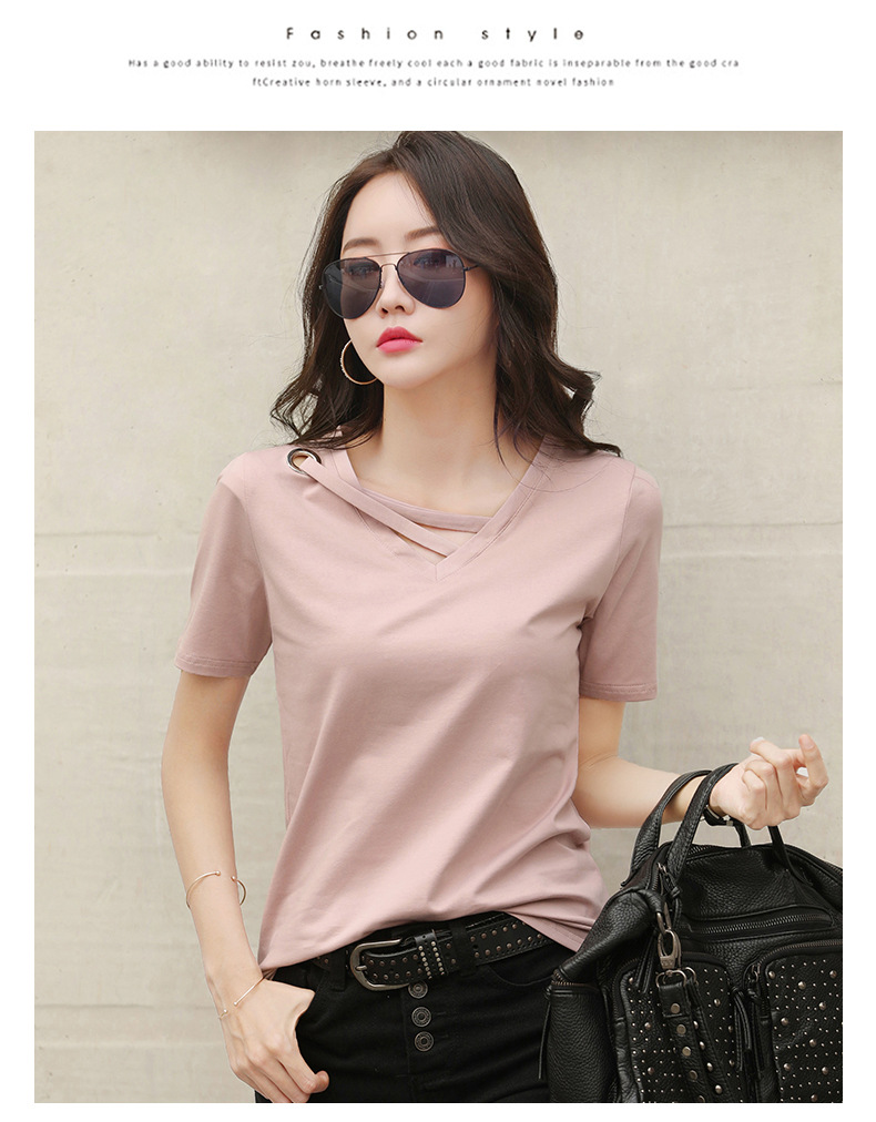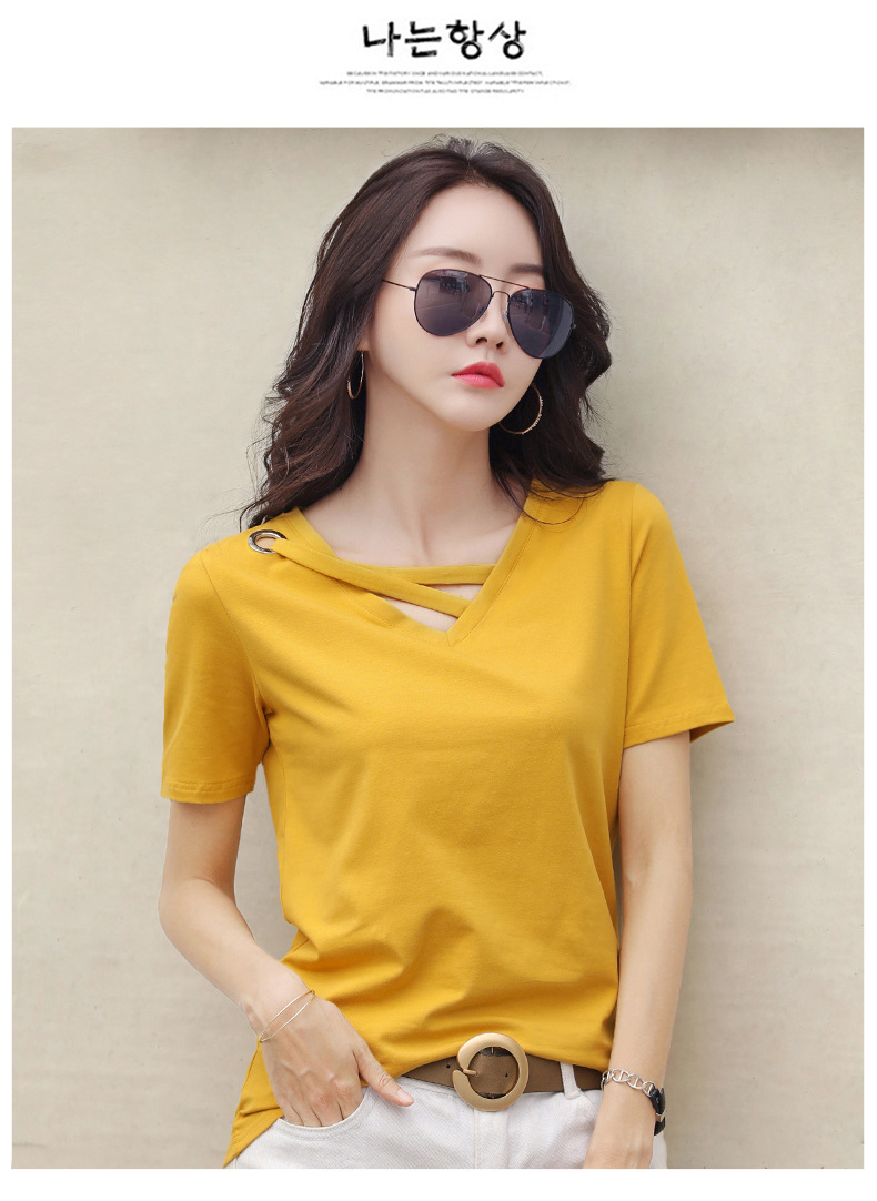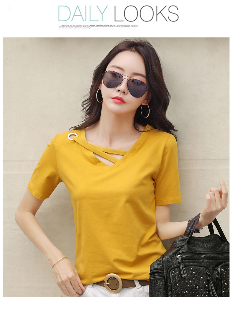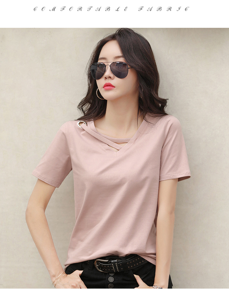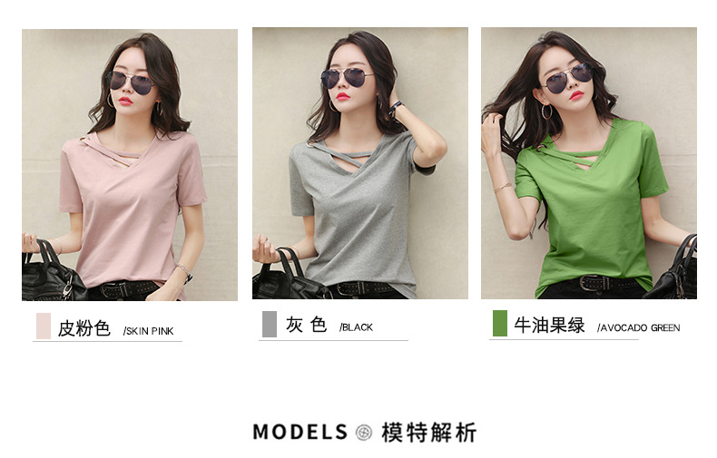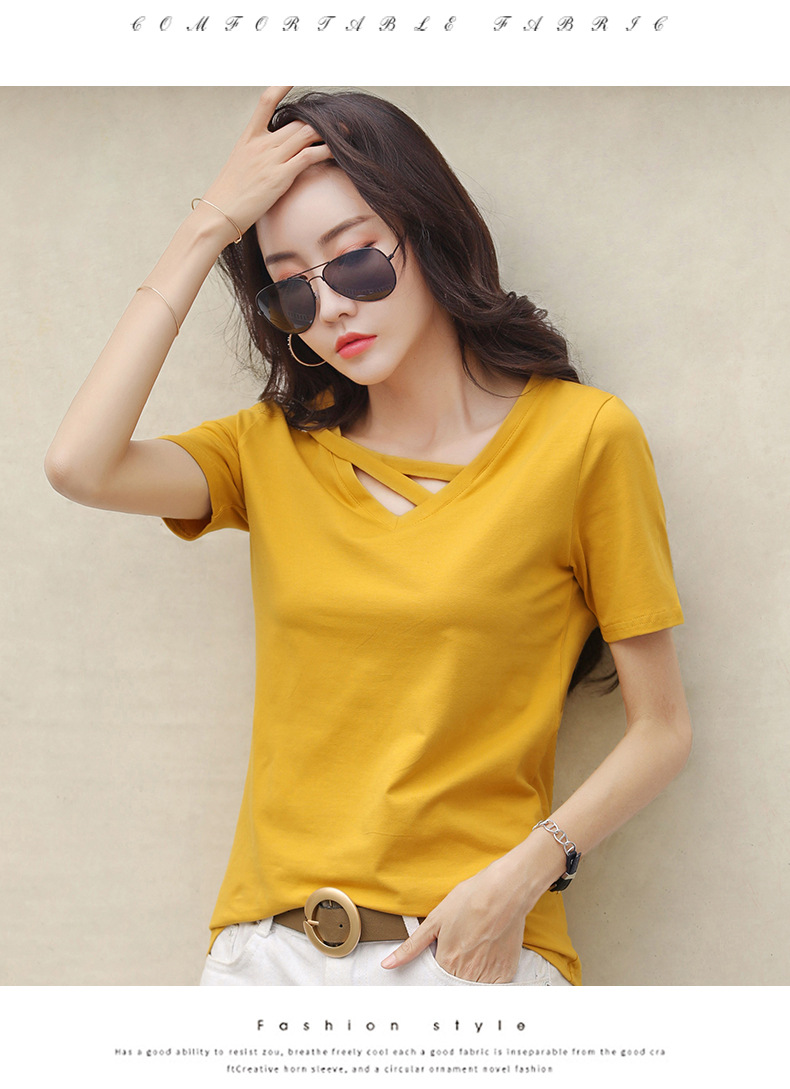 브이넥 티셔츠 여성용 반팔 2024 여름 신식 치킨 하트 칼라 솔리드 컬러 반소매 반소매 반팔 티셔츠 루즈 캐주얼 솔리드 컬러베이스 셔츠스토어 가기