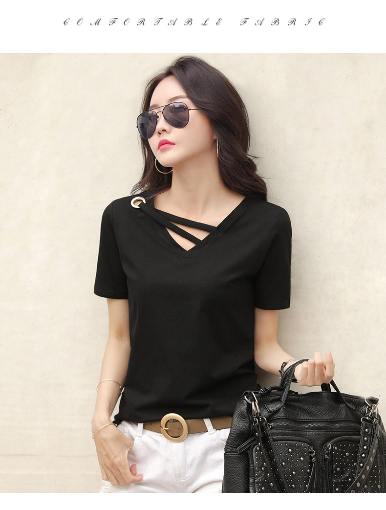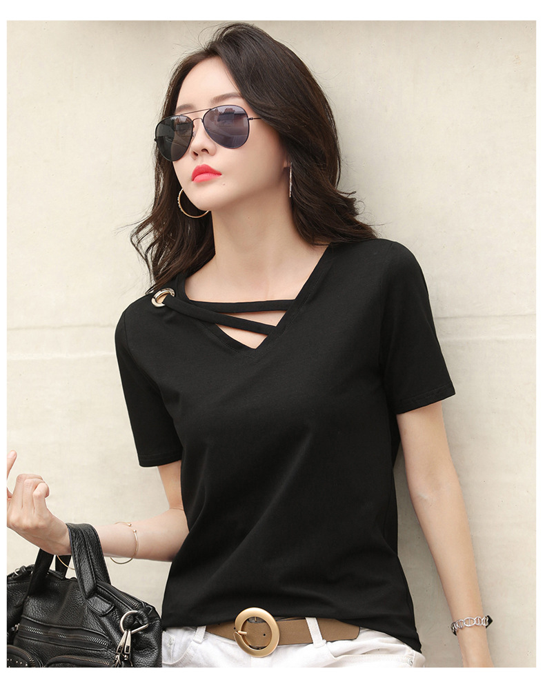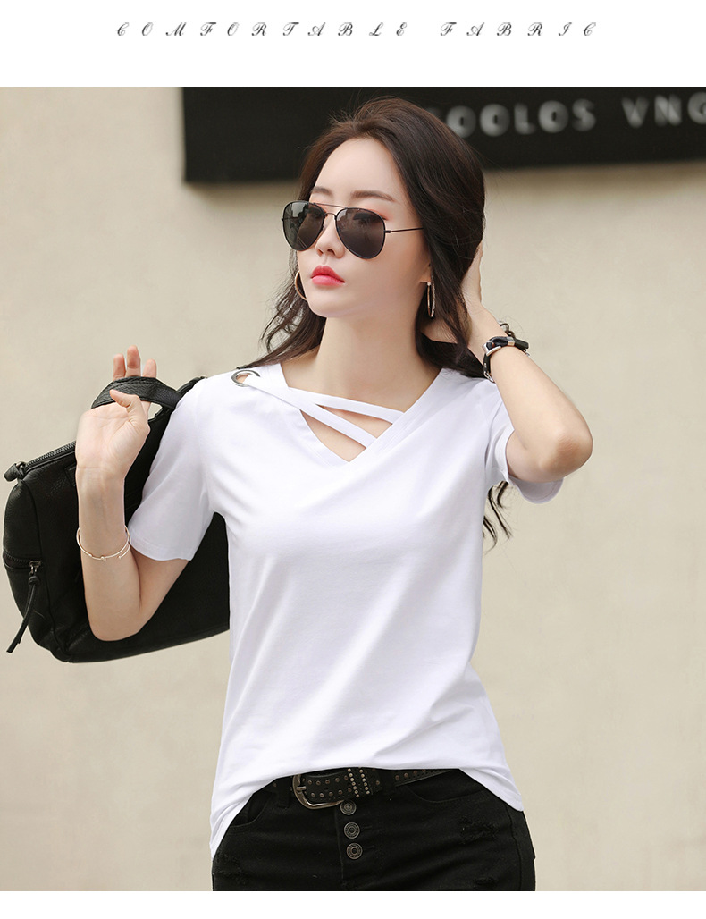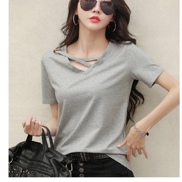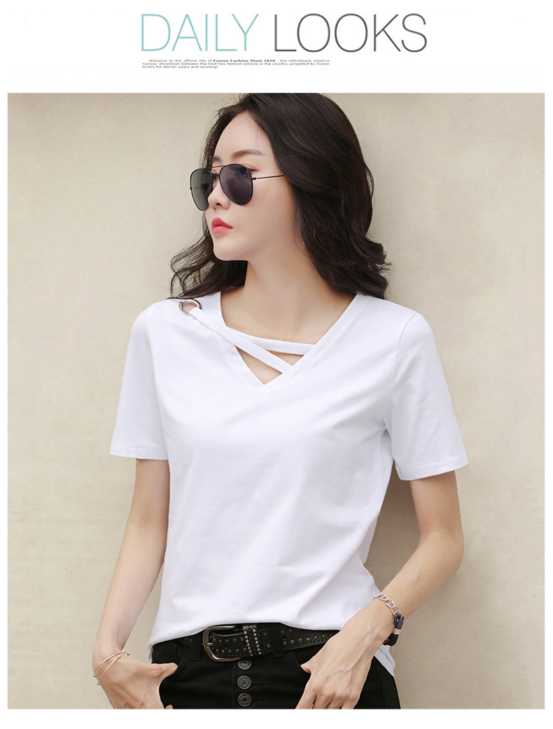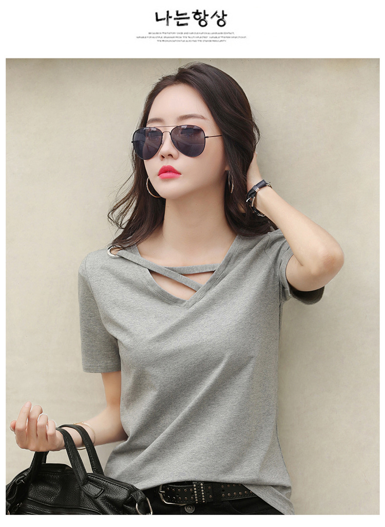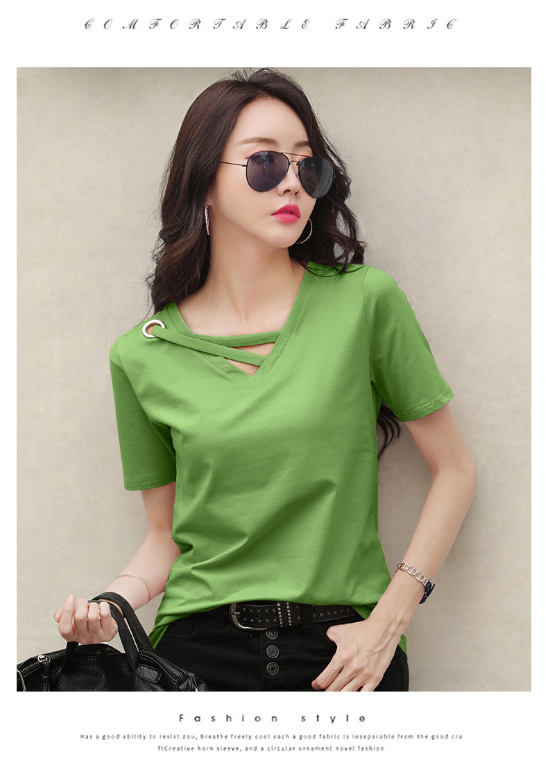 브이넥 티셔츠 여성용 반팔 2024 여름 신식 치킨 하트 칼라 솔리드 컬러 반소매 반소매 반팔 티셔츠 루즈 캐주얼 솔리드 컬러베이스 셔츠스토어 가기