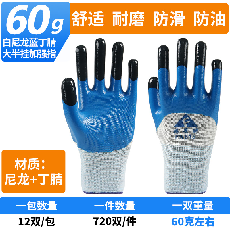 노동 보호 장갑, 니트릴 반장갑, 손가락 강화, 내마모성, 미끄럼 방지, 고무 함침, 작업장 보호용, 작업용 니트릴 장갑스토어 가기