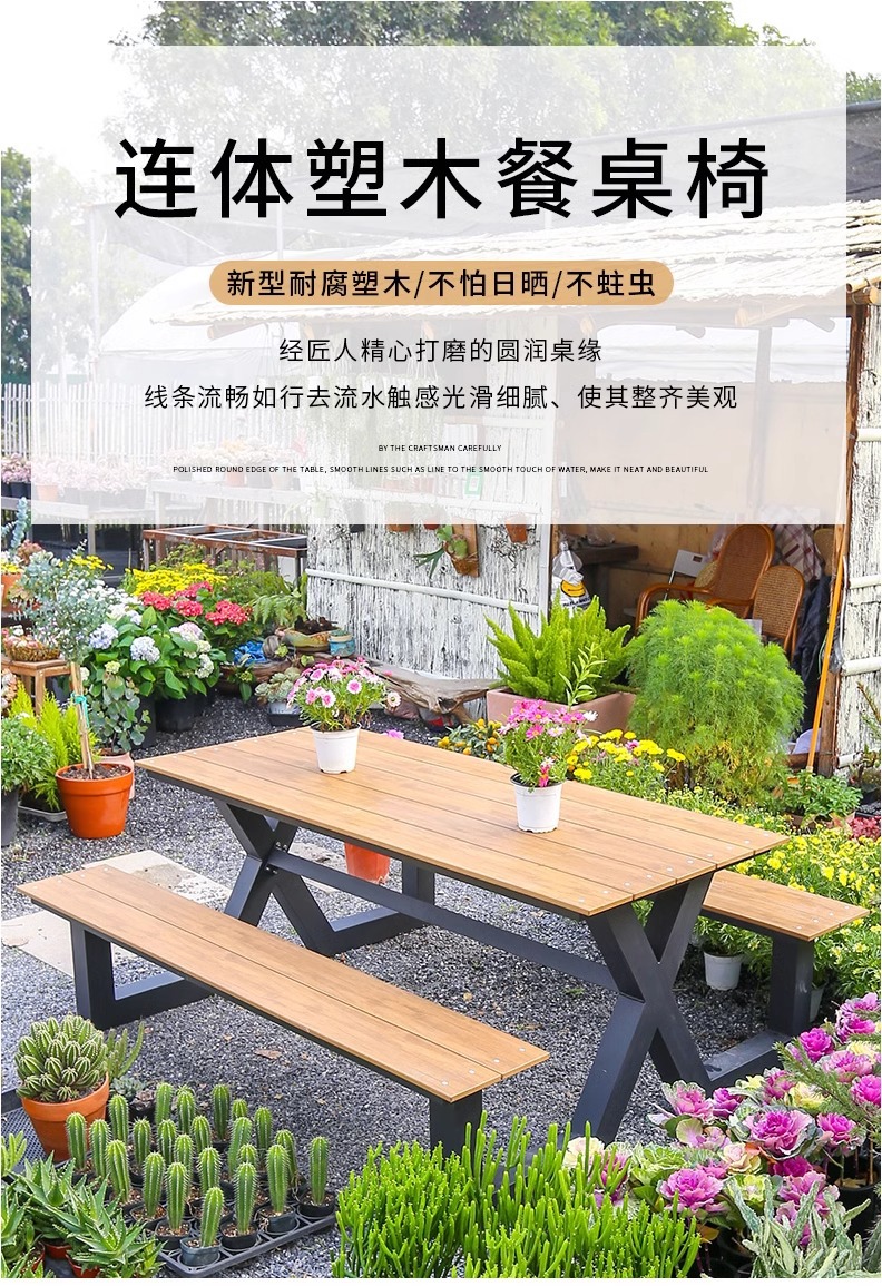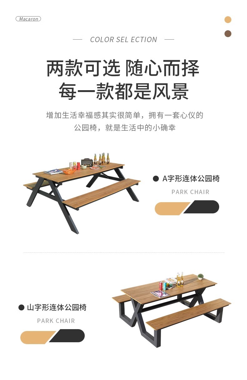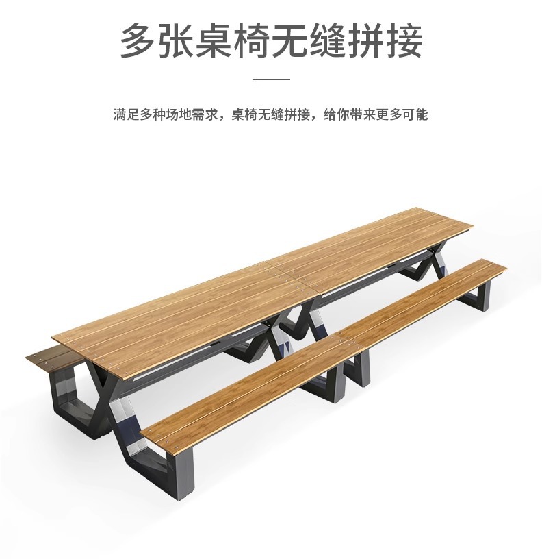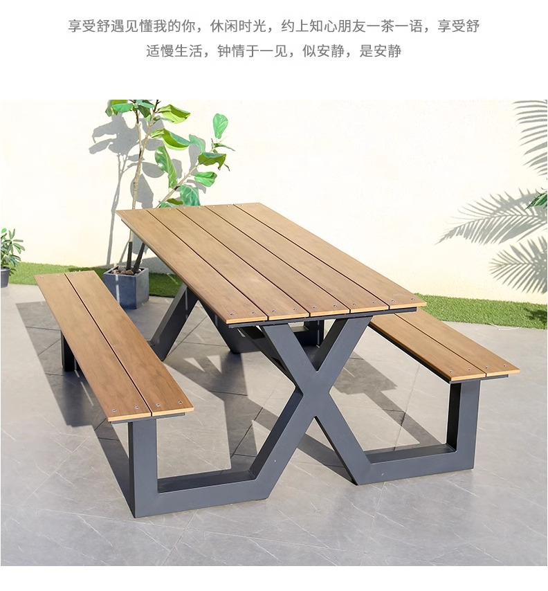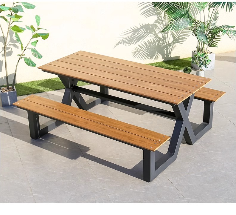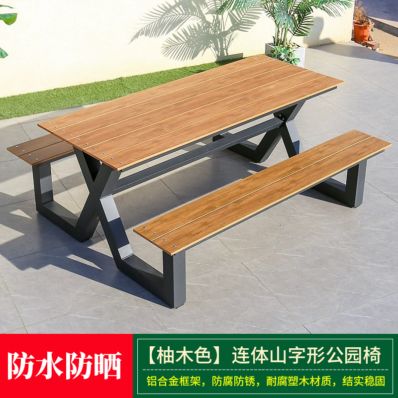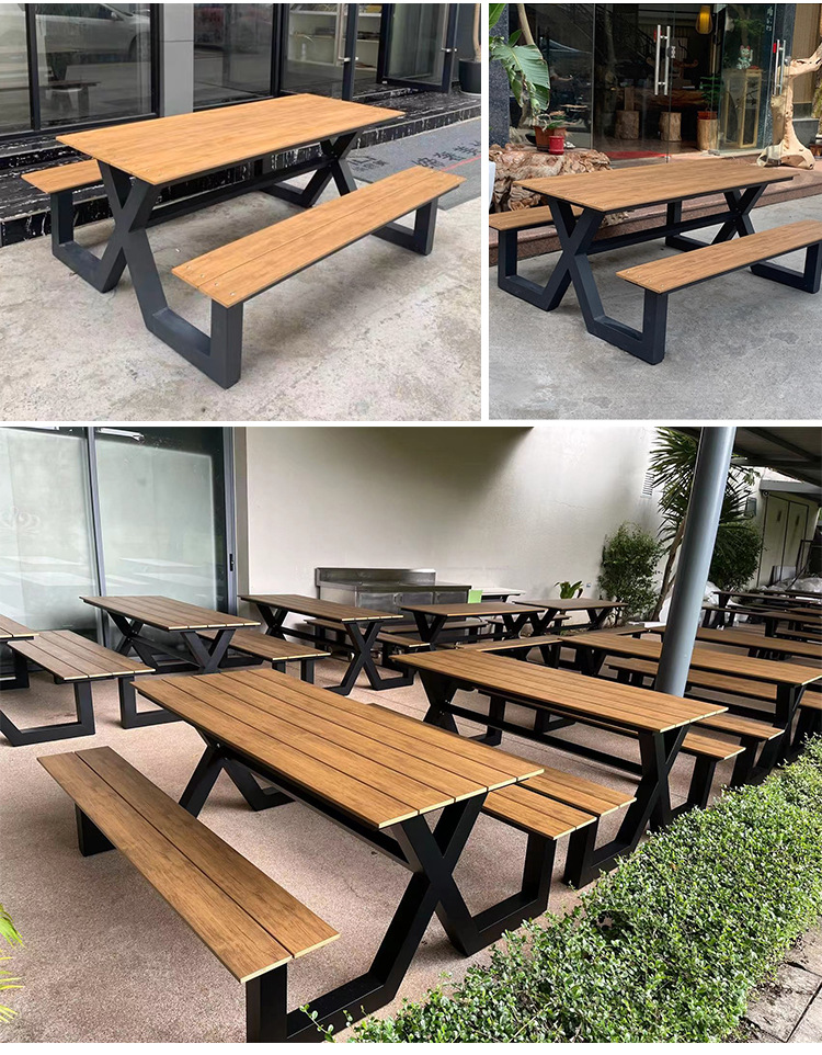 야외 플라스틱 목재 공원 의자, 안뜰 정원, 관광지, 병원, B&B, 호텔, 커뮤니티용 알루미늄 일체형 긴 식탁 및 의자스토어 가기