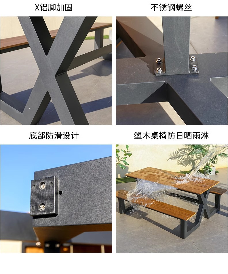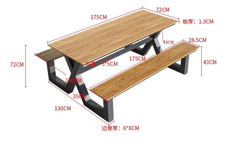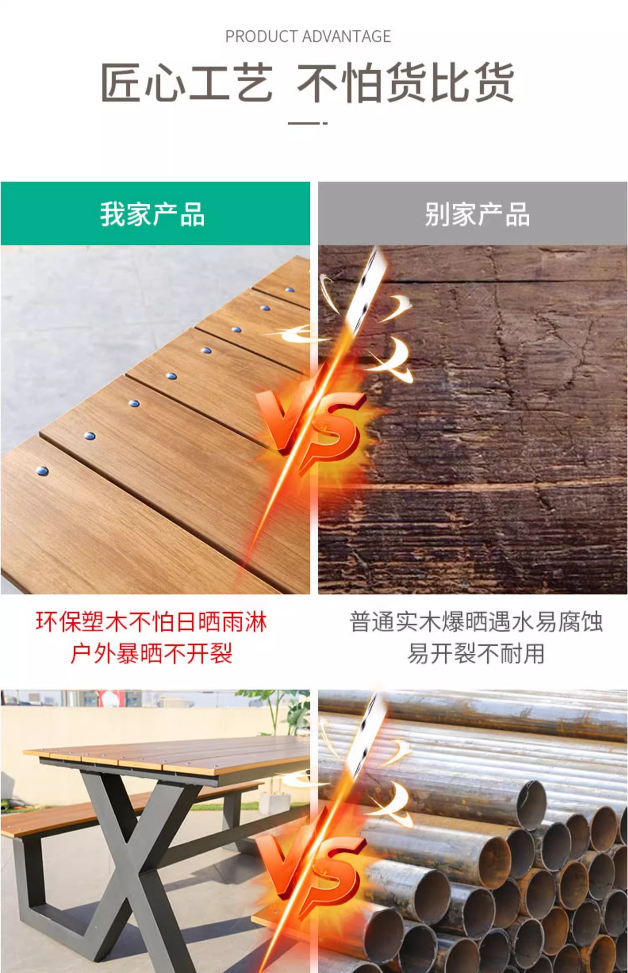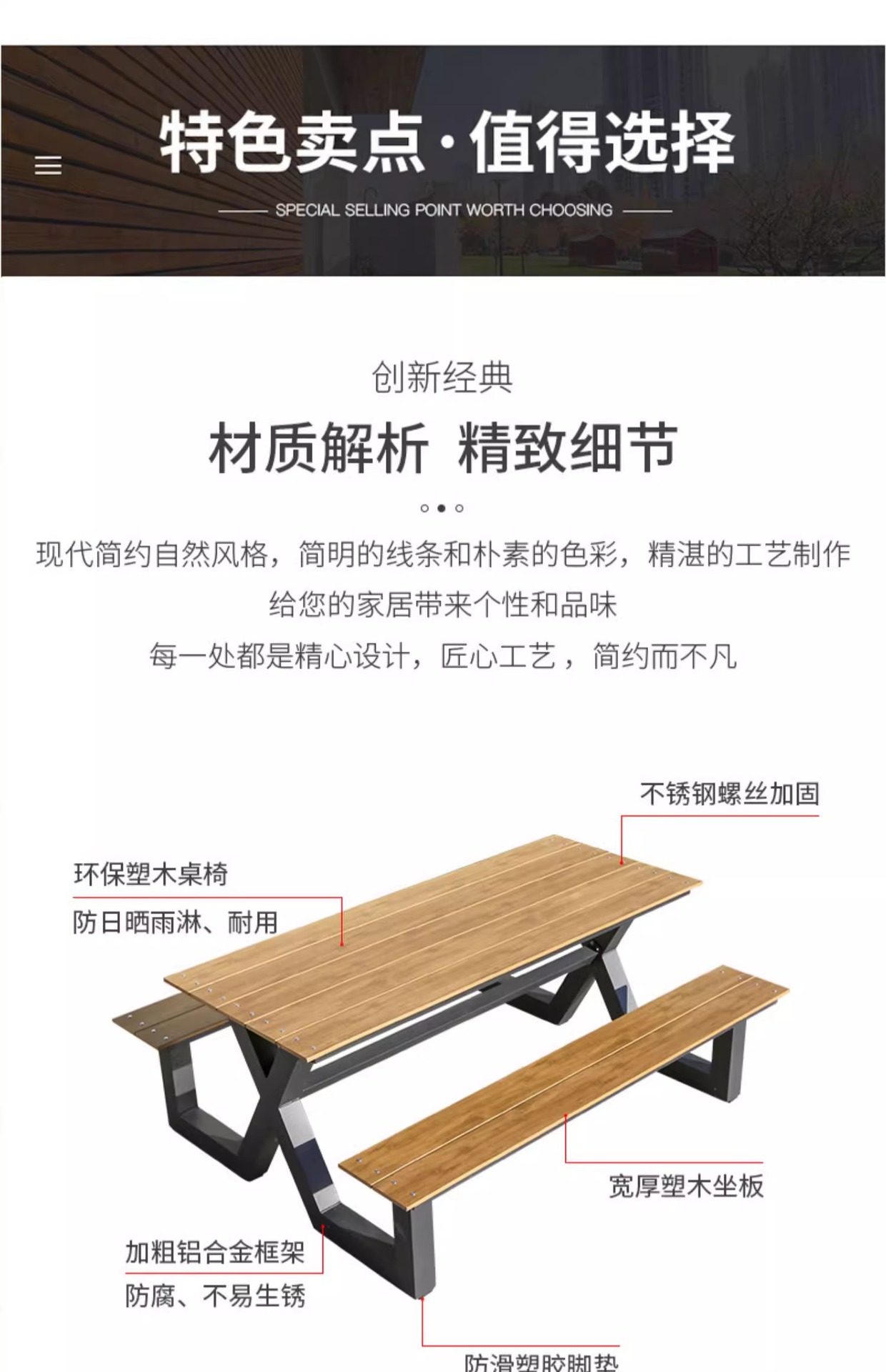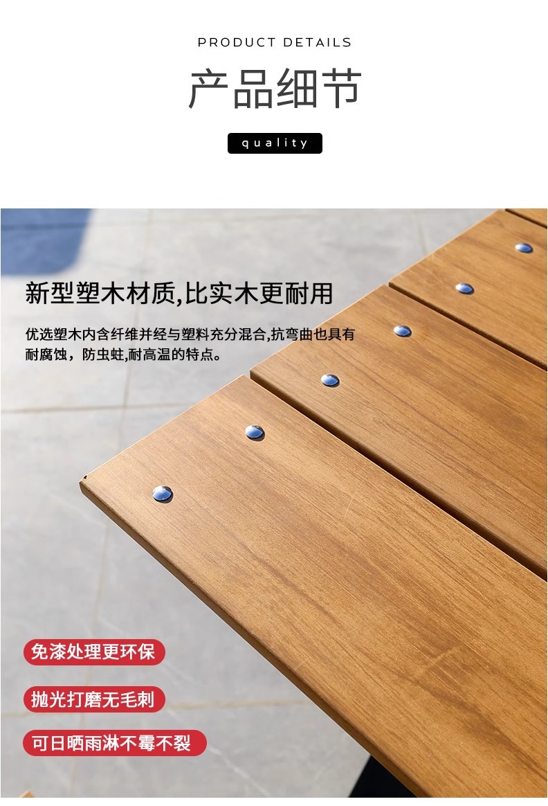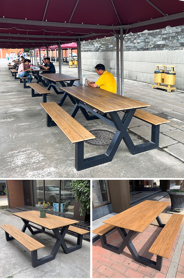 야외 플라스틱 목재 공원 의자, 안뜰 정원, 관광지, 병원, B&B, 호텔, 커뮤니티용 알루미늄 일체형 긴 식탁 및 의자스토어 가기